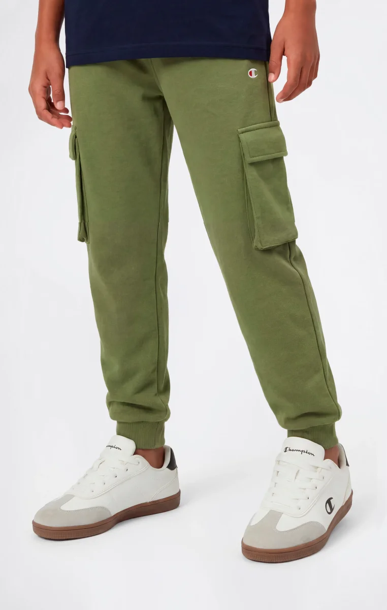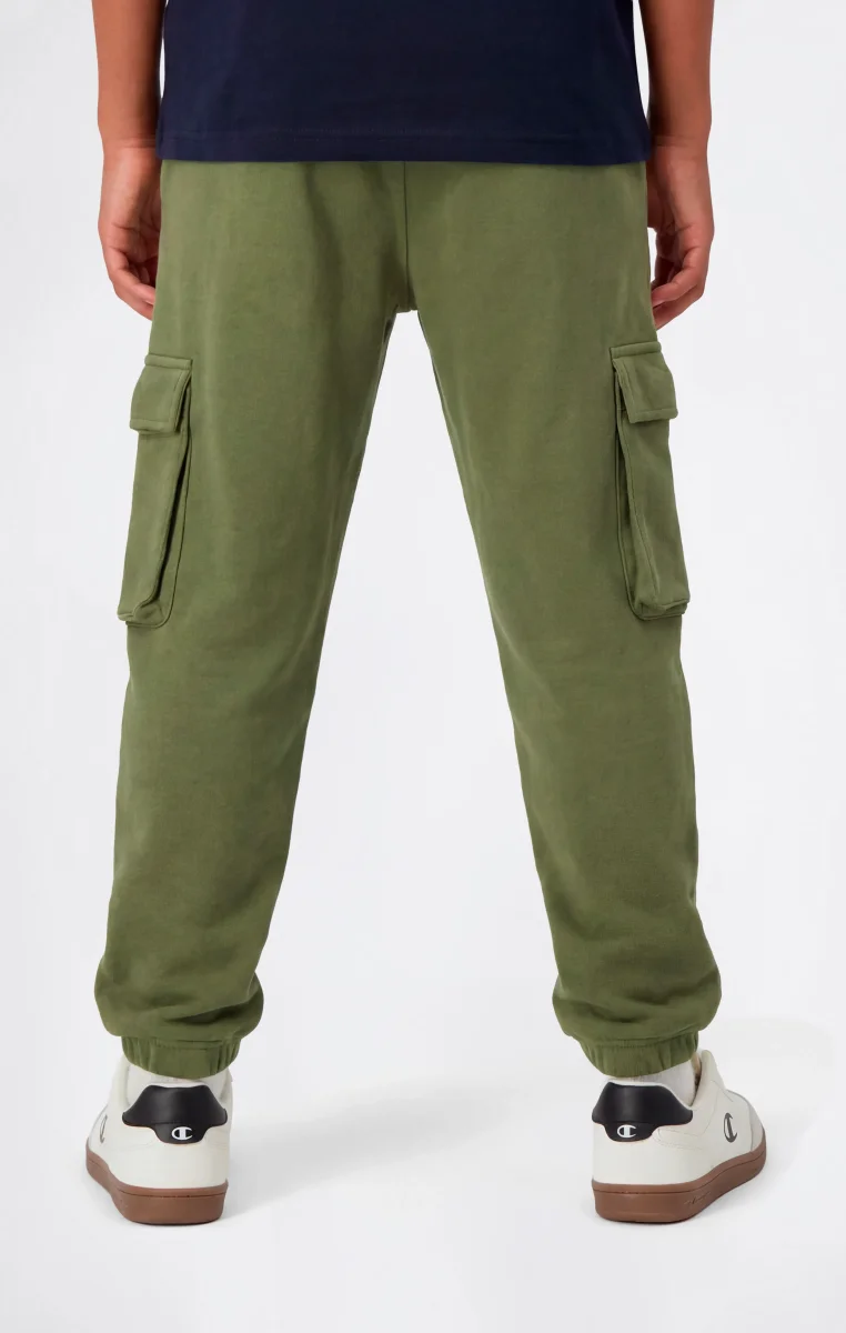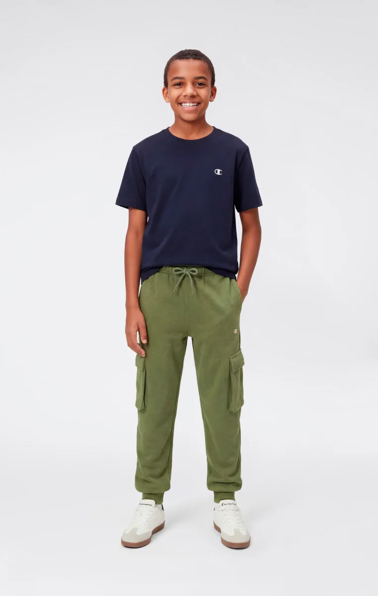 Boys’ cargo pants made from soft lightweight terry fabric, compact in structure and pleasant to the touch. Ideal for everyday wear, they offer comfort and practicality thanks to a regular fit that follows movement naturally. The cargo design with side pockets defines a clean utility aesthetic, consistent with Champion’s sportswear DNA.@@@Fit: Standard Fit – comfortable, regular line |Fabric: Ultra Light Soft Compact Spring Poly Terry, lightweight and compact terry fabric |Composition: 73% Cotton, 27% Polyester |Weight: 240 g/m² |Design: long leg with elasticated hem |Pockets: applied side pockets |Unbrushed interior