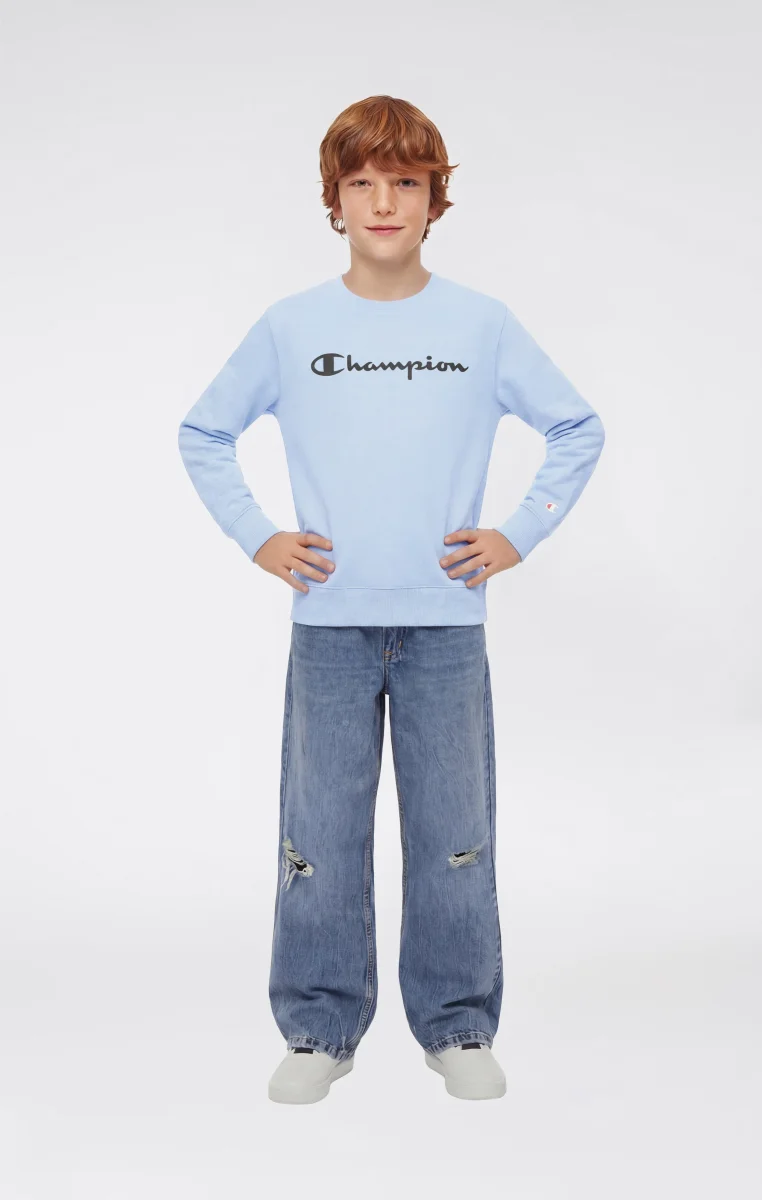 This boys’ lightweight crewneck sweatshirt is part of Champion’s classics and is made from cotton-blend fleece designed for everyday comfort. The regular fit ensures an easy and comfortable feel, ideal for school, leisure time and daily activities. The clean design is defined by a large printed Champion logo on the chest, an iconic and instantly recognizable detail.@@@Fit: Standard Fit – comfortable, regular line |Fabric: Ultra Light Basic Terry, lightweight and compact fleece fabric |Composition: 55% Cotton, 45% Polyester |Weight: 240 g/m² |Details: crewneck |Logo: maxi printed Champion logo on the chest |Unbrushed interior