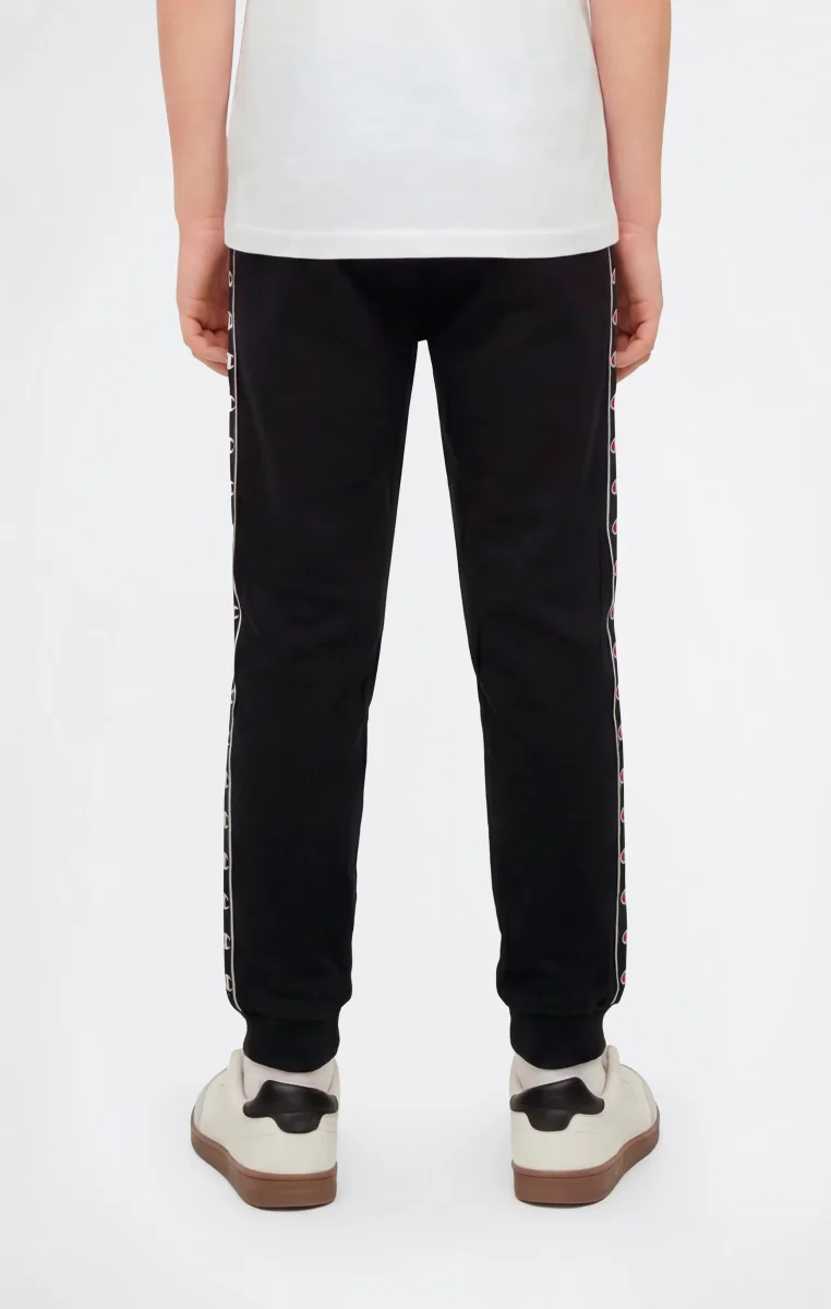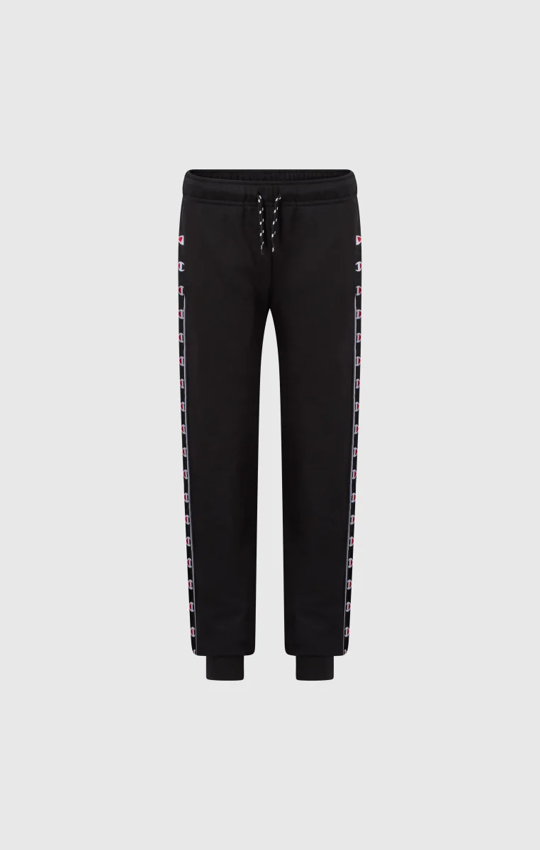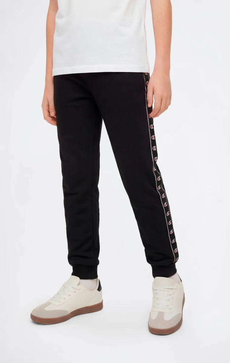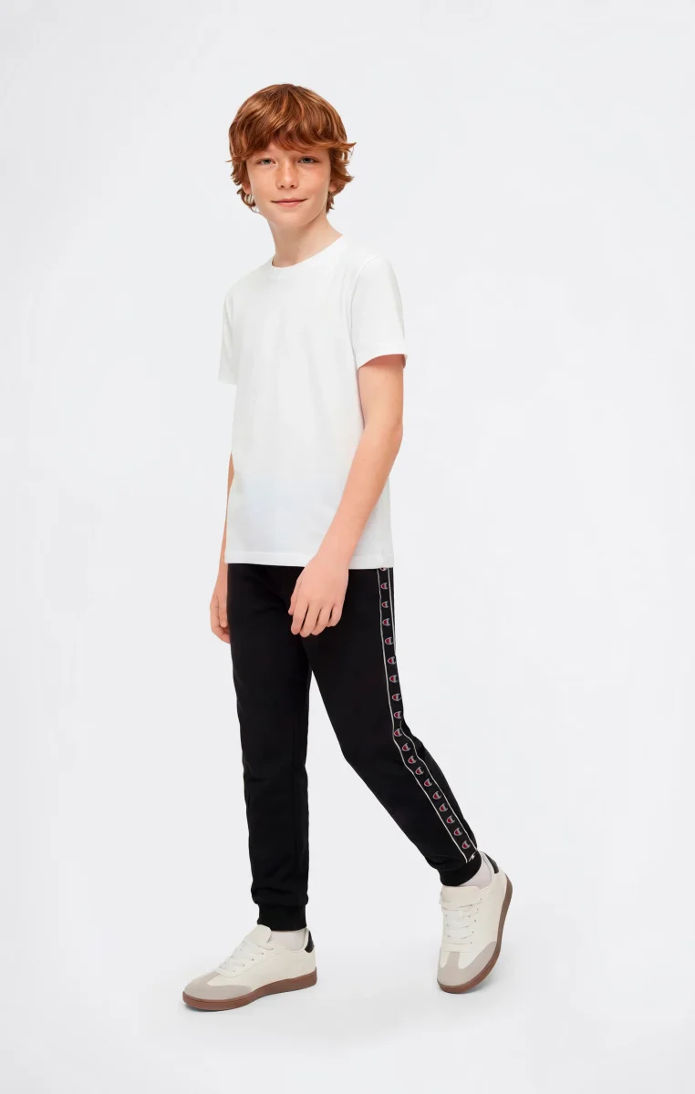 These boys’ pants are inspired by 1990s sportswear aesthetics, reinterpreted through the Champion heritage DNA. Made from lightweight cotton-blend terry fabric, they offer comfort and practicality for everyday wear. The Standard Fit provides a regular and comfortable silhouette, while the ribbed cuffs ensure a secure fit during movement. The tape with C-Logo along the sides recalls the iconic element of the line, making the design instantly recognizable.@@@Standard Fit, comfortable with a regular silhouette |Lightweight terry fabric |Composition: 73% Cotton, 27% Polyester |Fabric weight: 240 g/m² |Unbrushed interior |Elasticated waistband with drawstring |Ribbed cuffs |C-Logo tape along the sides |Front pockets