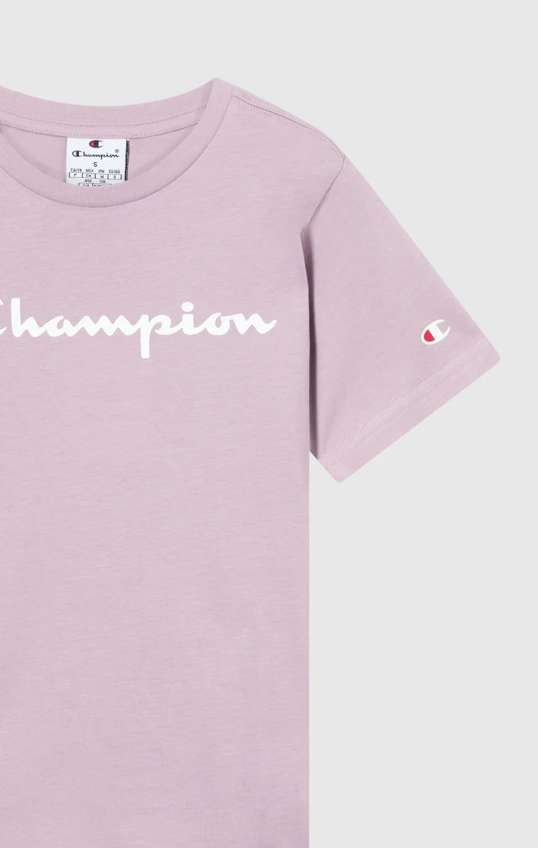 This Boys’ short-sleeve t-shirt in lightweight cotton jersey is perfect for everyday wear. The script Champion logo on the chest adds an iconic and authentic touch to the look. The standard fit ensures comfort and freedom of movement for every activity.@@@Fabric: Lightweight cotton jersey, 150 g/m² |Composition: 100% Cotton |Fit: Standard Fit: versatile and comfortable fit with standard widths and lengths. Close to the body, with simple lines that do not cling to the figure. Regular shoulder cut.