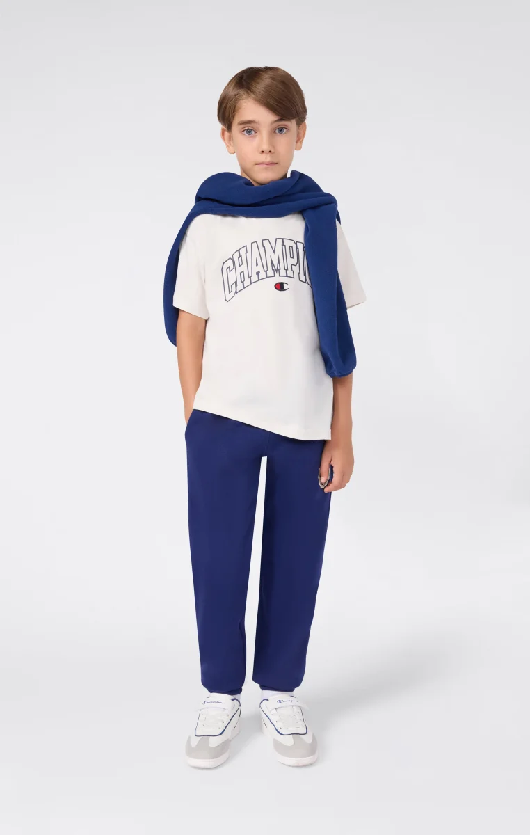 A Boys’ tee inspired by American sports heritage, with a vintage-look college print on the front. Made from lightweight cotton jersey, it’s perfect for laid-back, retro-style outfits. The relaxed fit makes it ideal for everyday wear.@@@Fabric: Lightweight cotton jersey, 150 g/m² |Composition: 100% Cotton |College-style front print |Ribbed crewneck |Fit: Relax Fit: soft and comfortable fit, slightly loose at the chest, dropped shoulder, regular length.