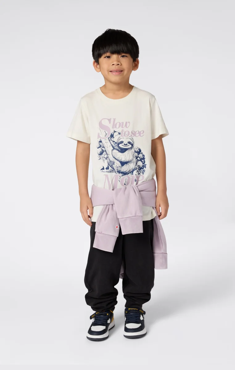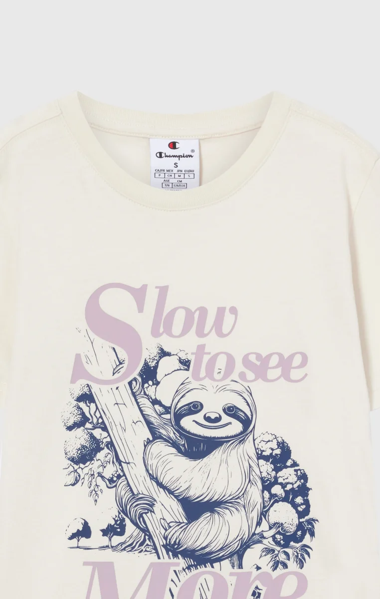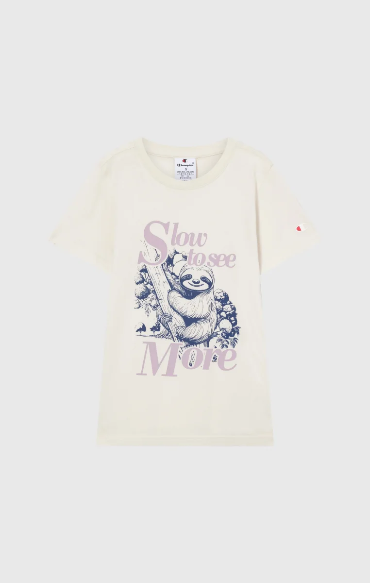 Impactful graphic print meets washed effect in this lightweight cotton t-shirt. Designed to stand out naturally, thanks to a special treatment that gives the fabric a worn and authentic look. Ideal for everyday wear with Champion quality that won’t go unnoticed.@@@Fabric: Lightweight cotton jersey 170 g/m² |Composition: 100% Cotton |Washed effect finish |Graphic print on front and/or back |Fit: Standard Fit – versatile and comfortable with standard widths and lengths. Close to the body with simple lines that don’t cling. Regular shoulder cut.
