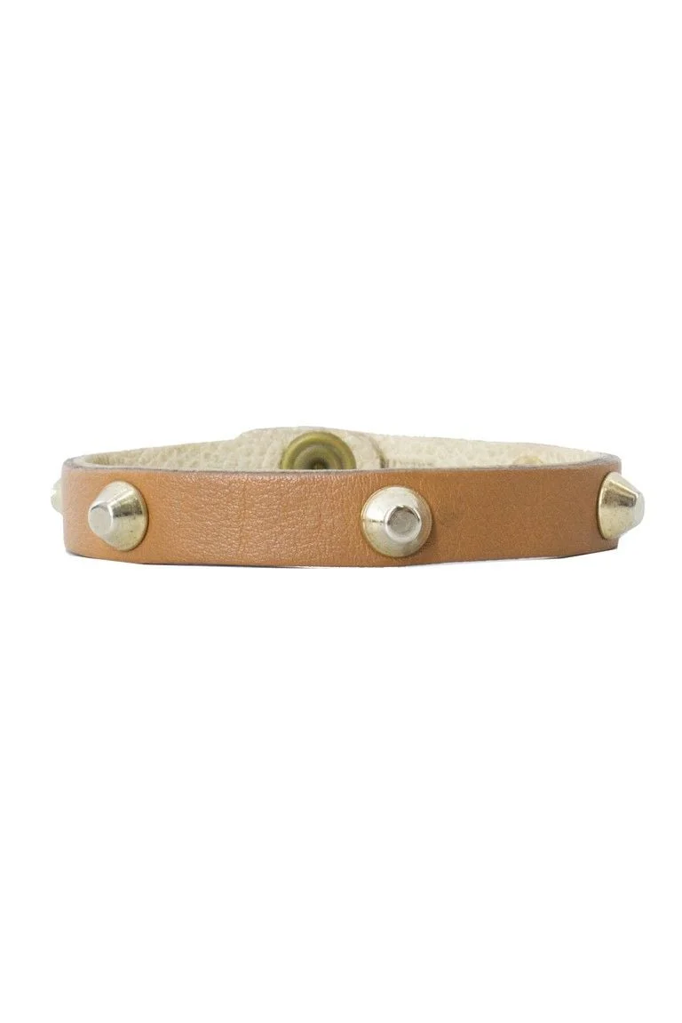 Bracciale da donna sottile tinta unita in pelle con borchie oro chiusura con clips regolabile