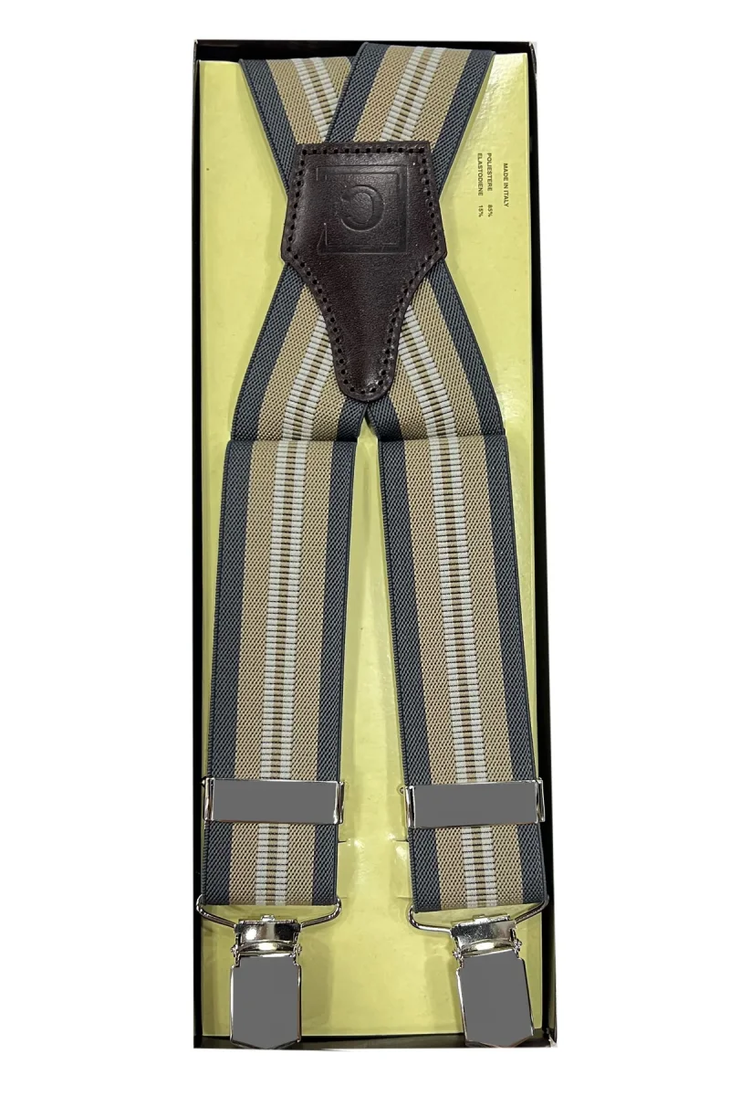 BRETELLE DA UOMO BEIGE FANTASIA ELASTICIZZATE 3,5 CM REGOLABILI CON CHIUSURA PINZE ARGENTO