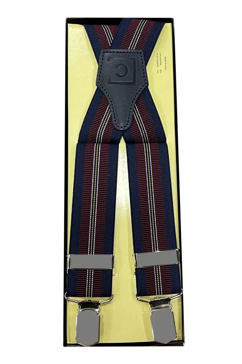BRETELLE DA UOMO BLU RIGA BORDEAUX ELASTICIZZATE 3,5 CM REGOLABILI CON CHIUSURA PINZE ARGENTO