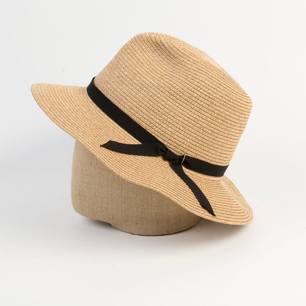 Originale Copricapo di design a tesa larga realizzato da CA4LA in morbida paglia di colore beige con nastro in viscosa di finitura di colore nero con finale fiocco di lato. Regolazione grazie al nastrino interno. Avvolgibile.
