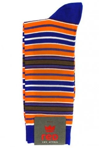 Calzini uomo corti, altezza polpaccio, fantasia righe multicolor.
