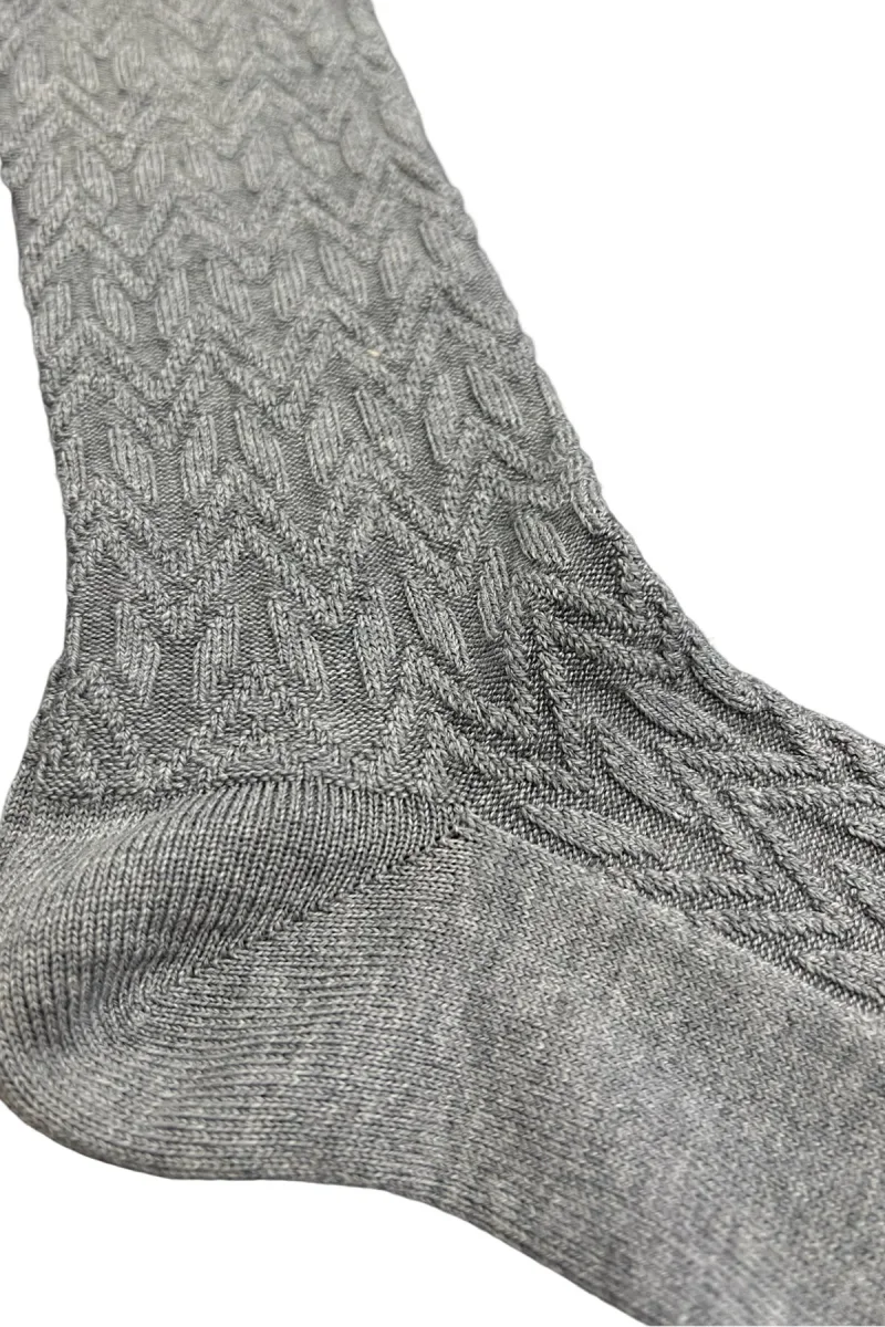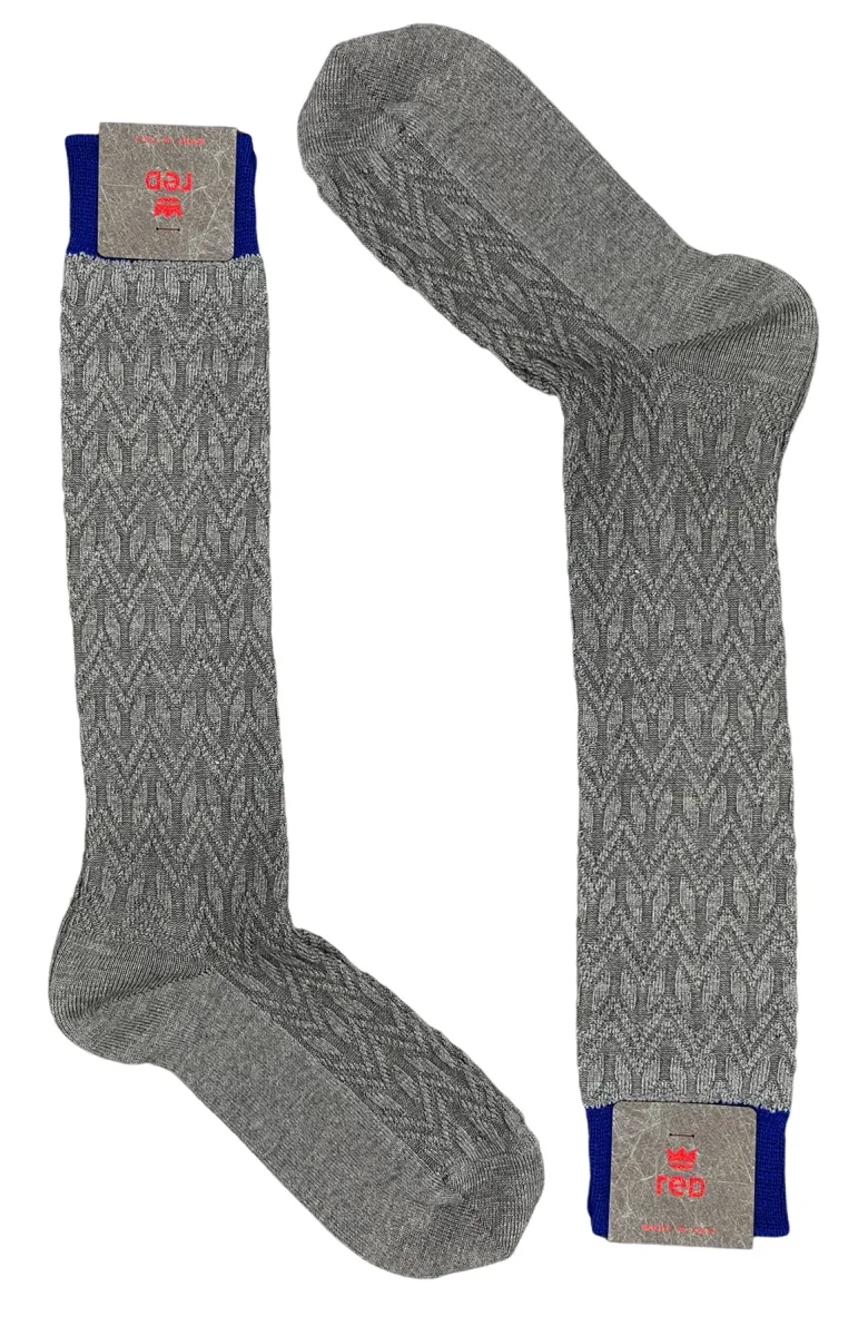 CALZINI UOMO LUNGHI GRIGIO CHIARO in lana FANTASIA GEOMETRICA A RILIEVO CON ELASTICO royal blu MADE IN ITALY