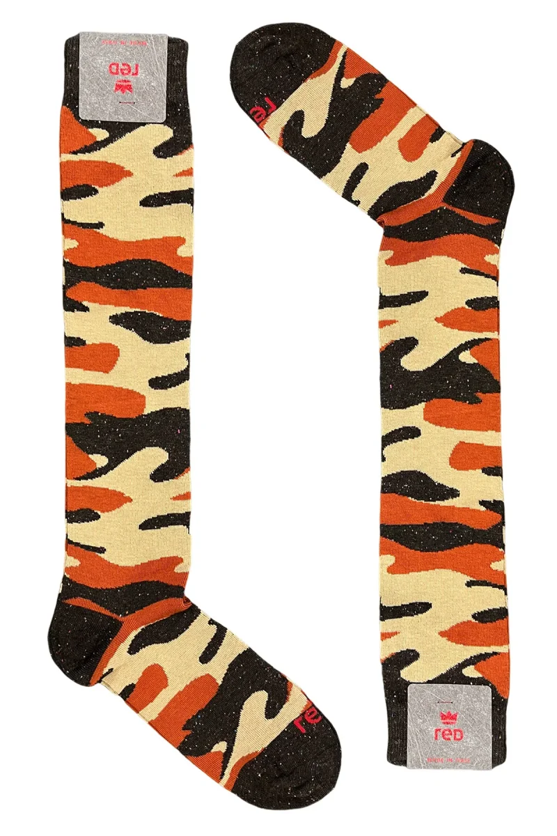 Calzini uomo lunghi in cotone e seta fantasia camouflage multicolor made in italy