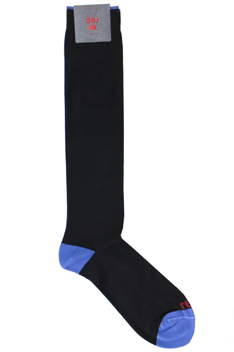 I Calzini uomo nero tinta unita con bordino bluette invernali lunghezza ginocchio made in italy della linea RED sono ormai per i nostri clienti sinonimo di garanzia e qualita. Questo modello, viene scelto da una tipologia di persone che amano vestire bene e nello stesso tempo scelgono la comodita. Infatti grazie alle caratteristiche del tessuto permette a chi le indossa di scegliere la sua taglia perfetta e non preoccuparsi delle limitazioni dei movimenti nonostante la sua calzata.