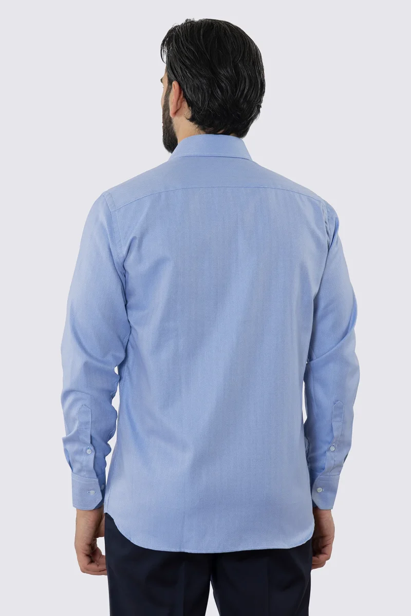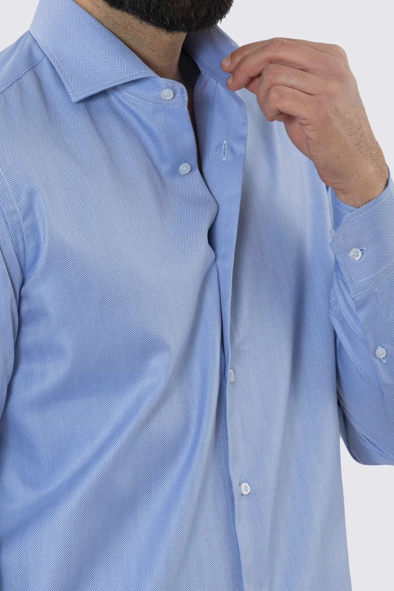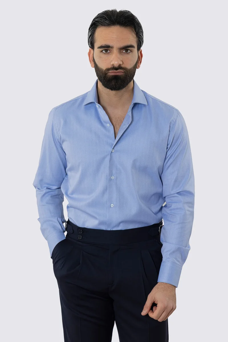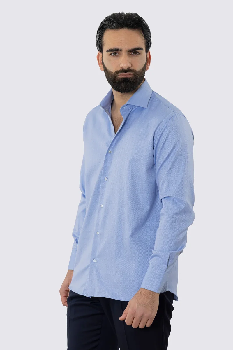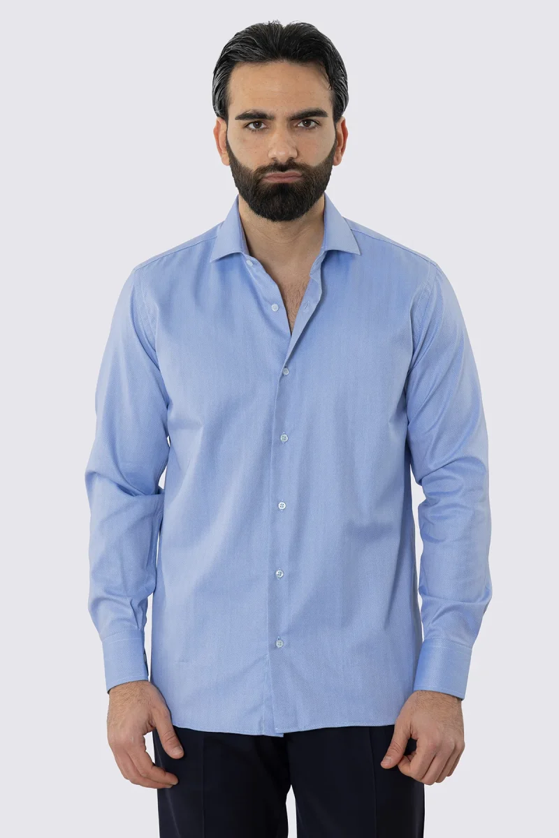 CAMICIA AZZURRA SPIGATA REGULAR FIT 100% COTONE COLLO SEMI FRANCESE POLSO SMUSSATO MILETA TESSUTI