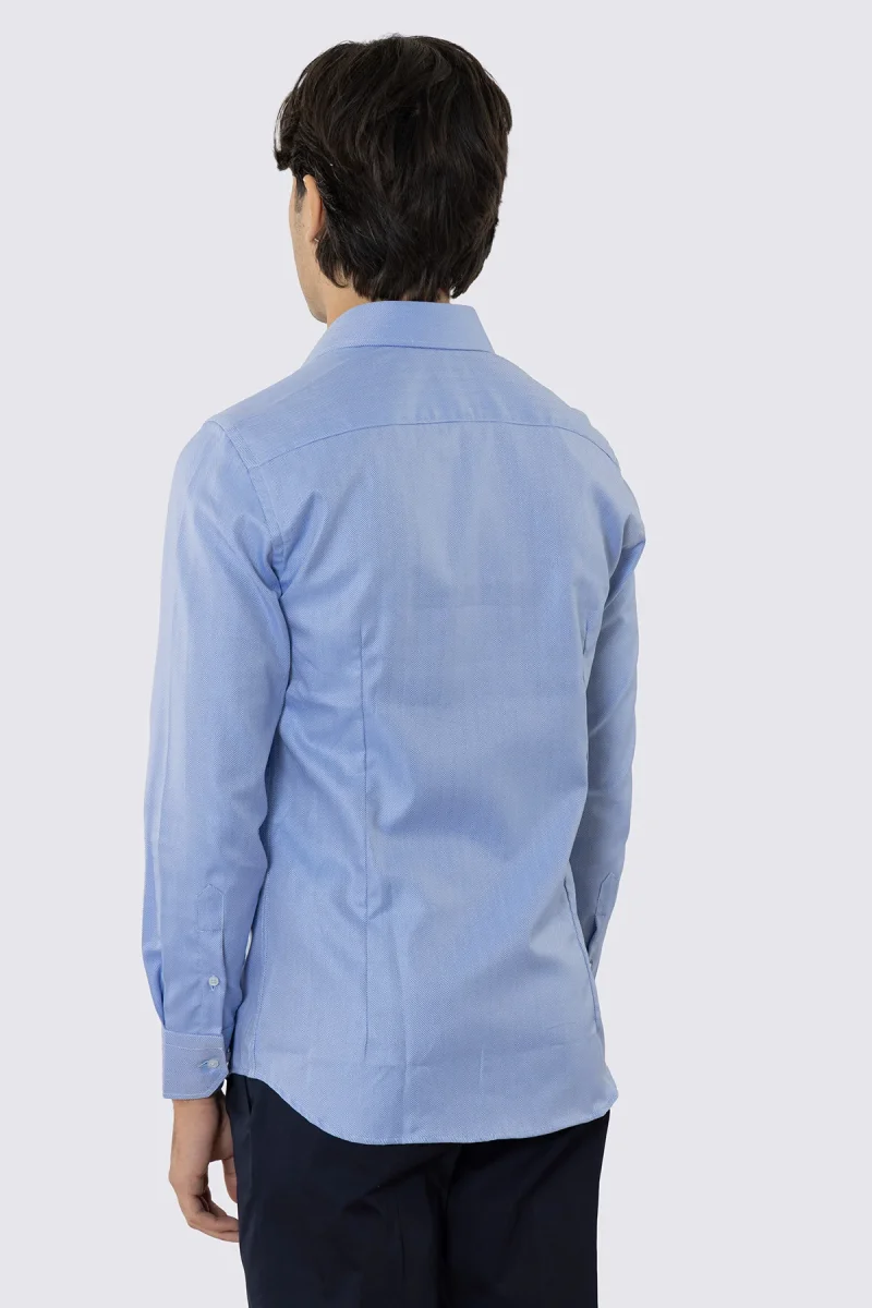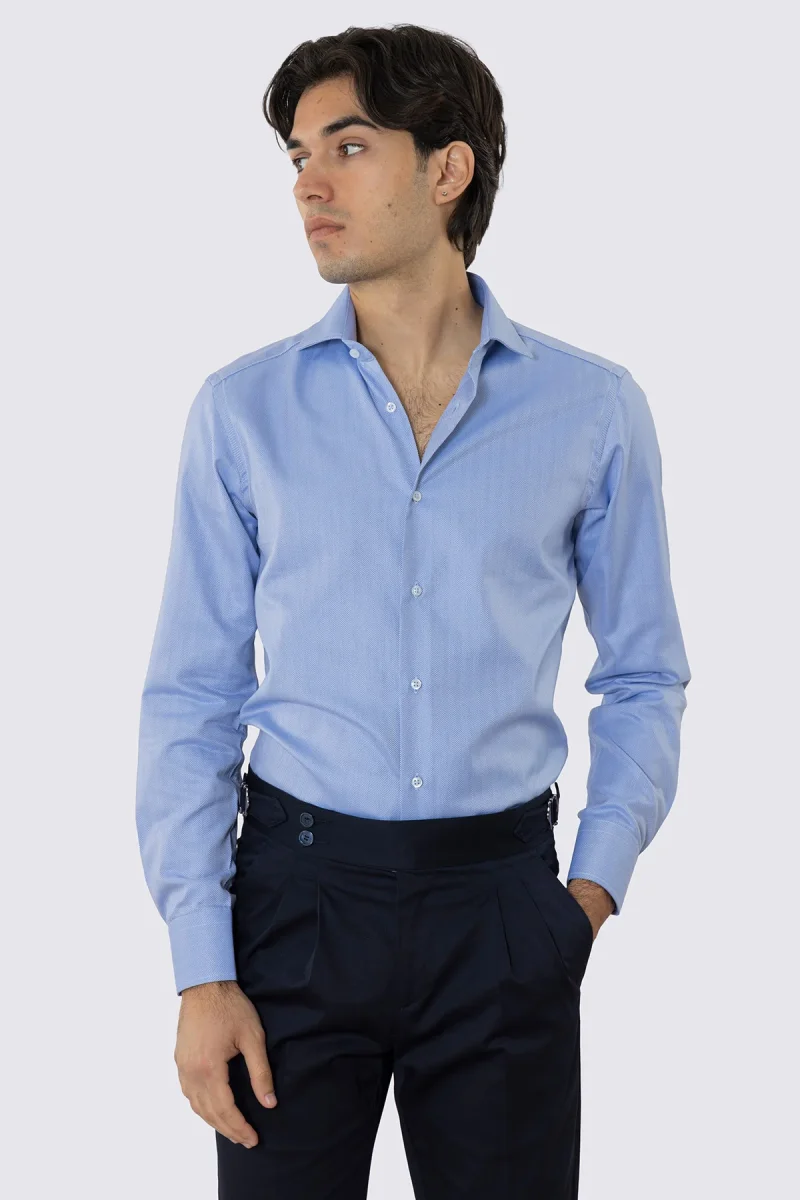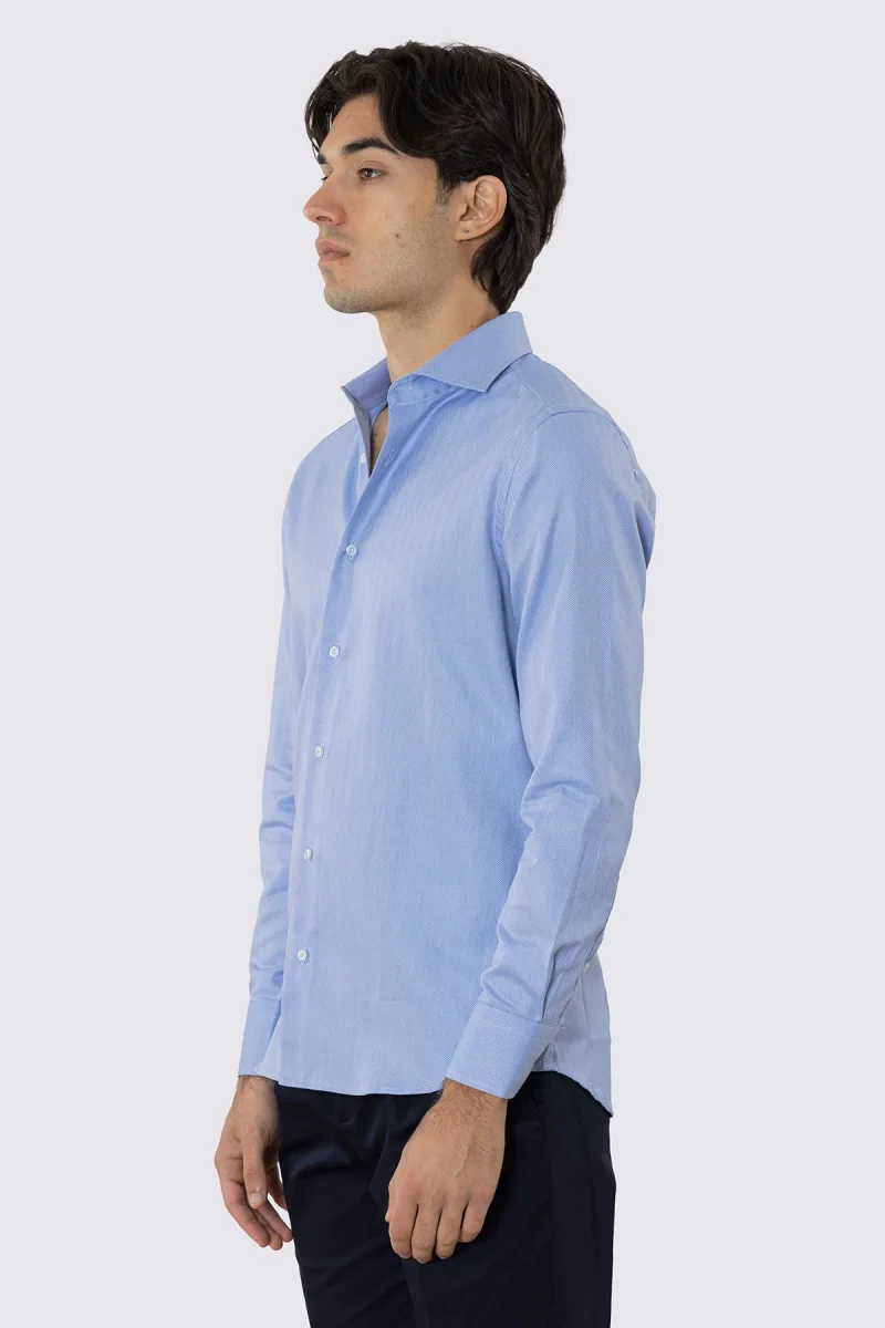 CAMICIA AZZURRA SPIGATA SLIM FIT 100% COTONE COLLO SEMI FRANCESE POLSO SMUSSATO MILETA TESSUTI