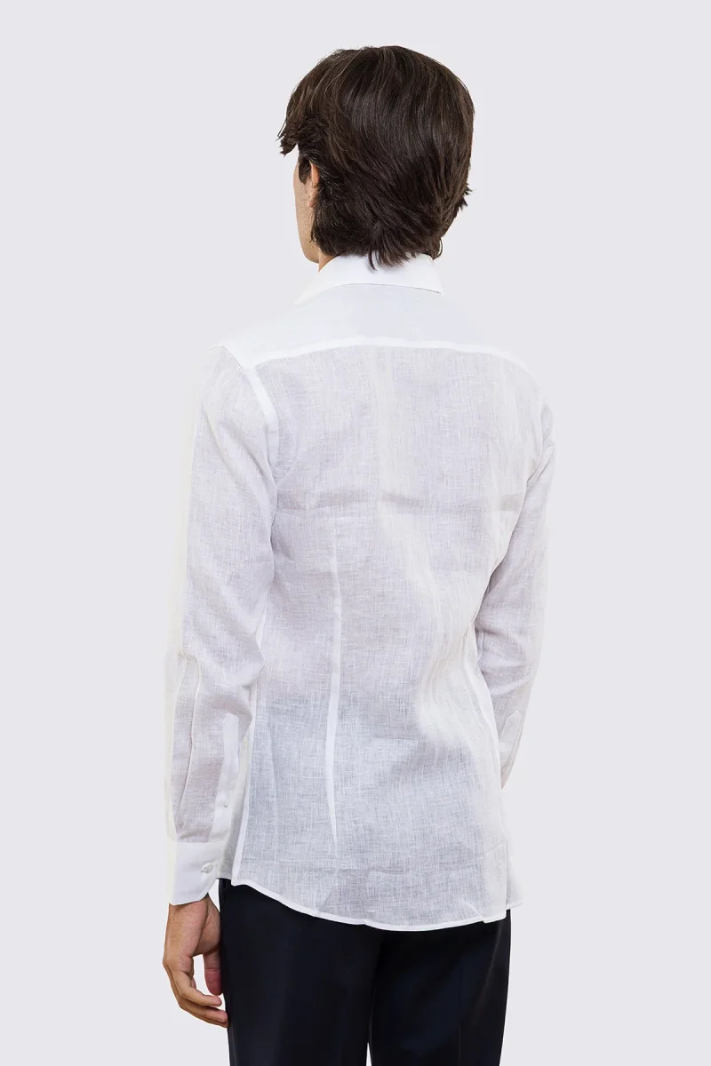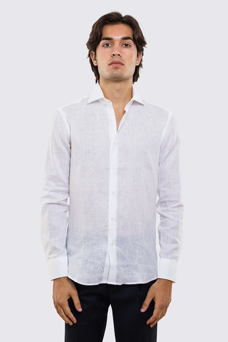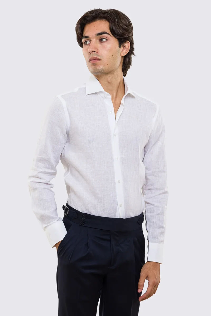 Camicia Bianca in Lino 100% made in italy da uomo collo semi francese morbido slim fit effetto melange mileta tessuti