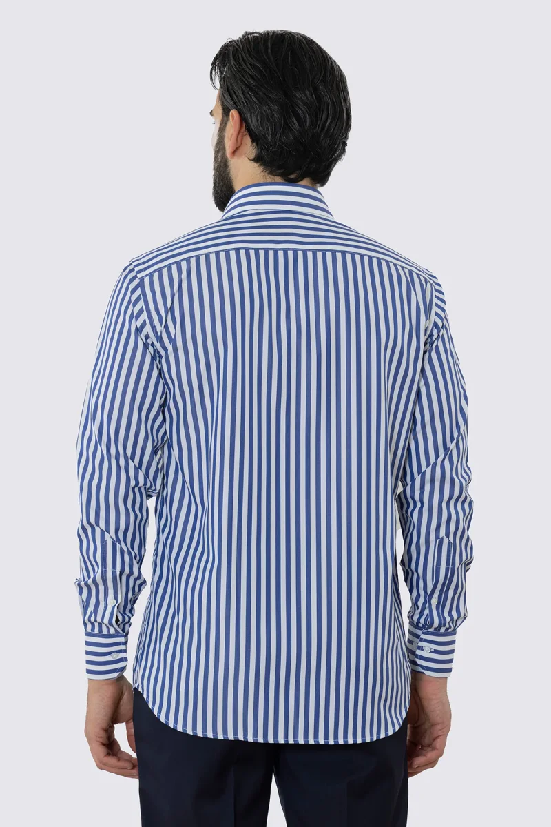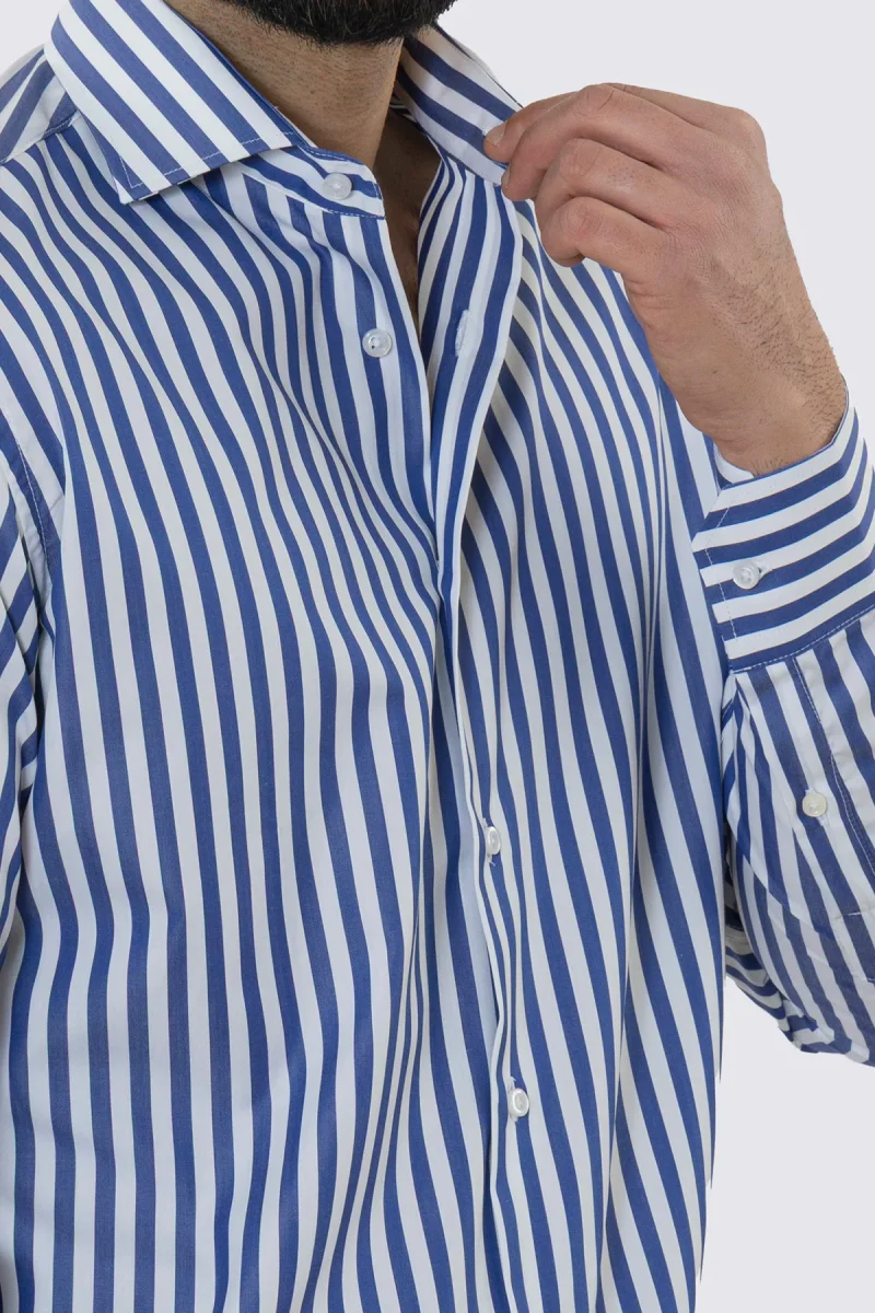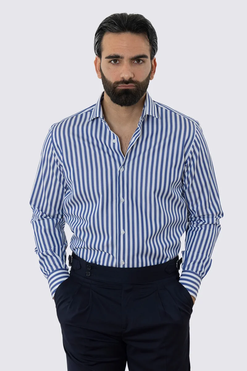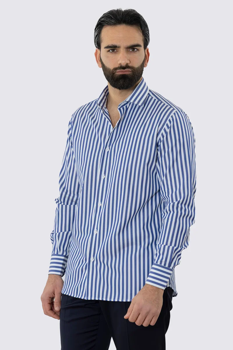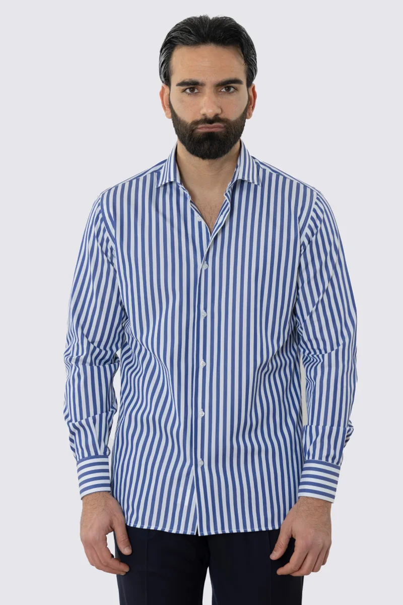 CAMICIA BIANCA RIGA LARGA BLU REGULAR FIT 100% COTONE COLLO SEMI FRANCESE POLSO SMUSSATO MILETA TESSUTI