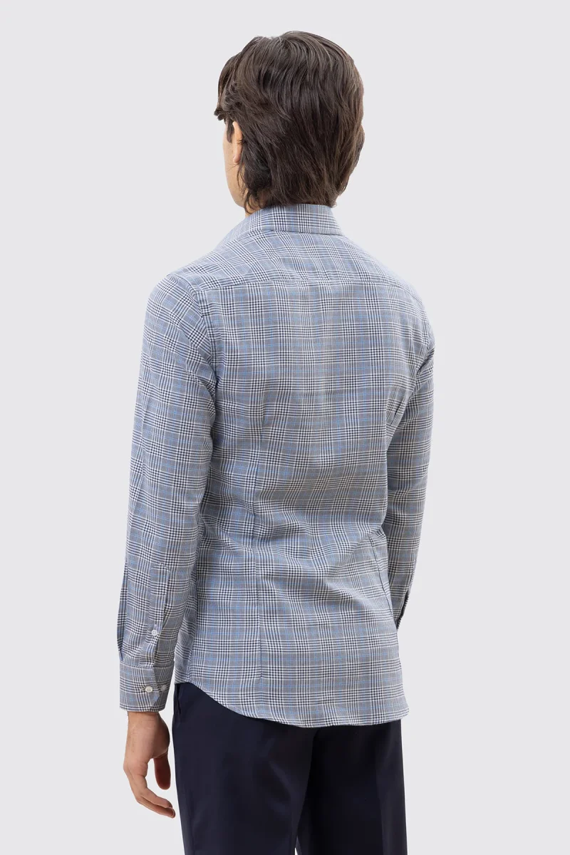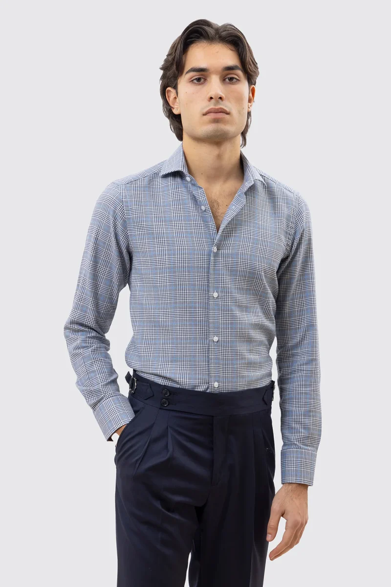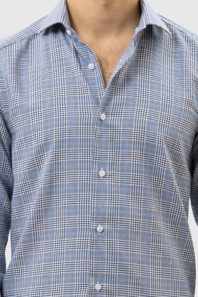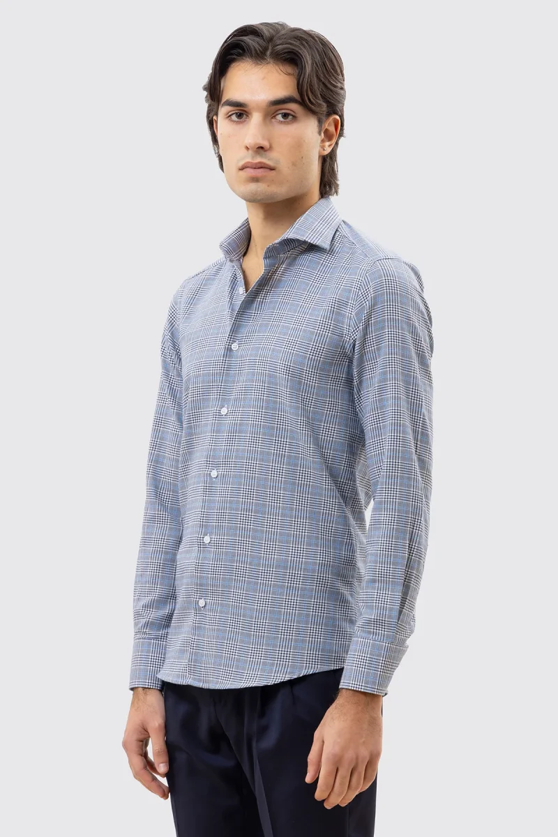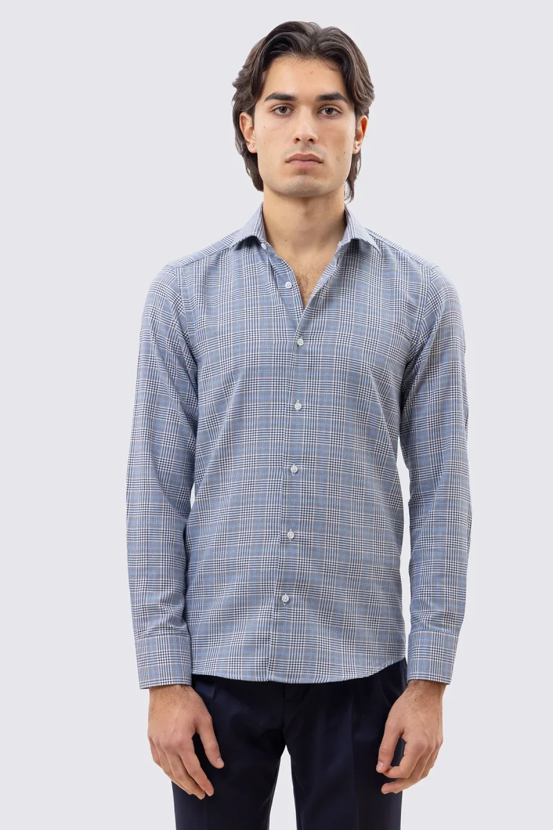 CAMICIA BLU FANTANTASIA GALLES SLIM FIT UOMO 100% COTONE COLLO SEMI FRANCESE POLSO SMUSSATO