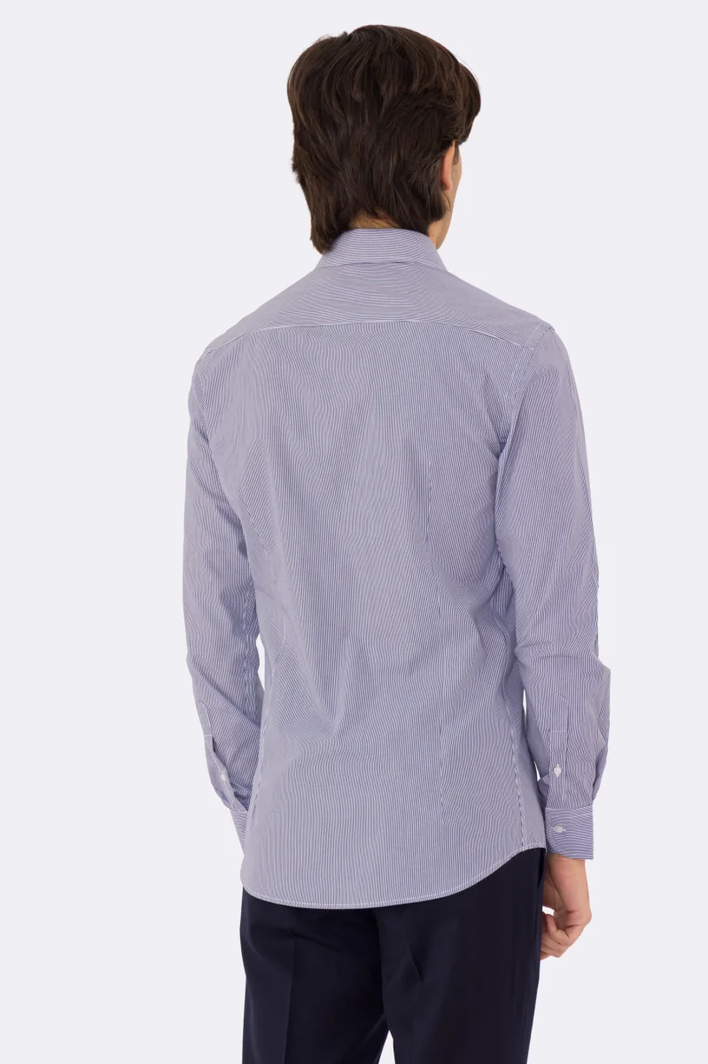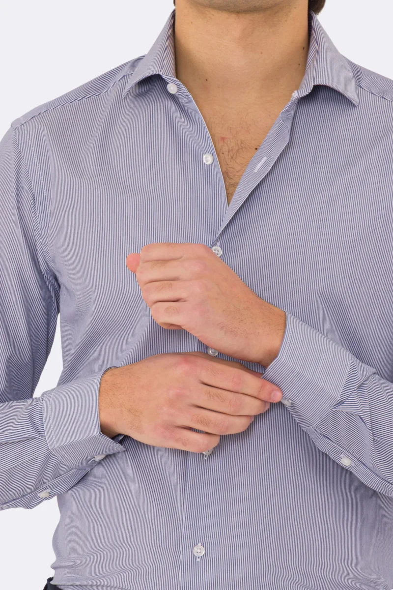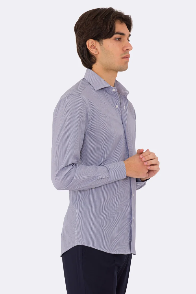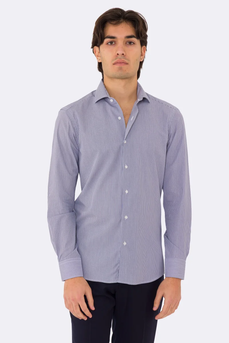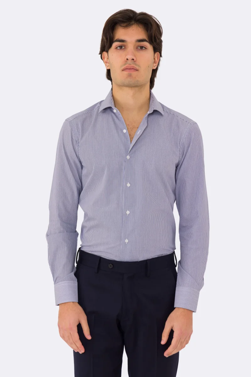 Camicia blu navy mille righe slim Fit uomo 100% cotone popeline collo semi francese Tessuti Twill