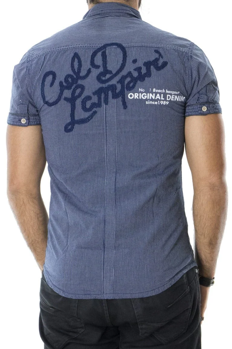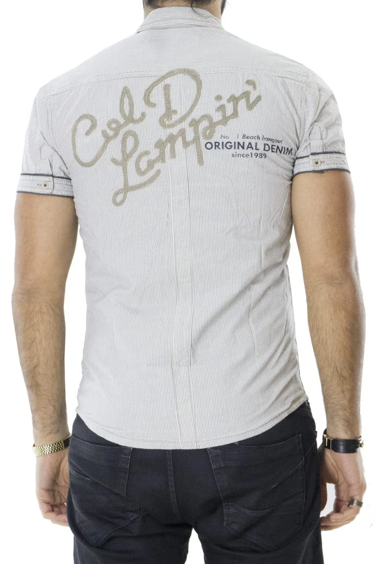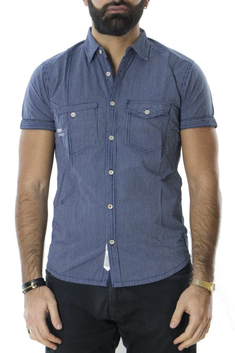 Camicia da uomo casual fantasia riga mezze maniche in cotone elasticizzato collo italiano piccolo