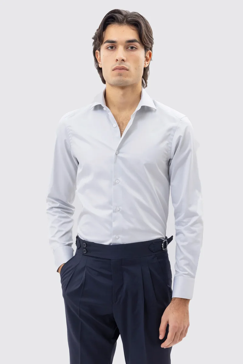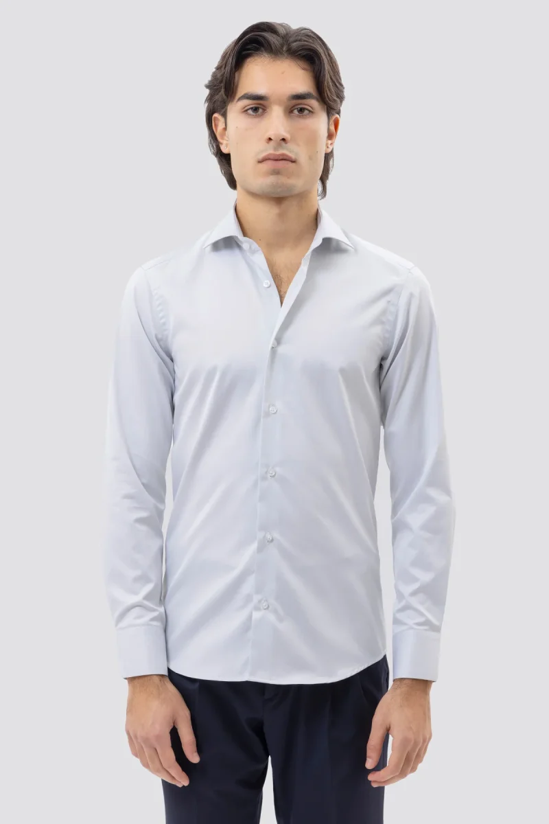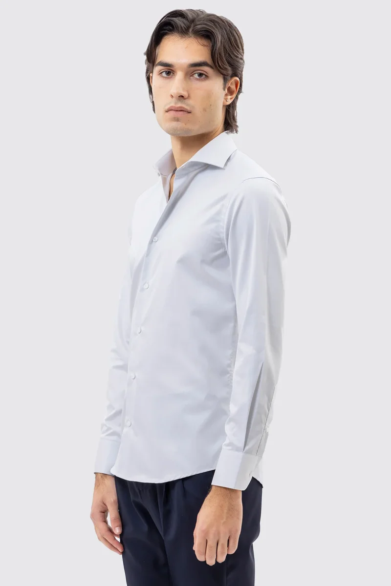 CAMICIA GRIGIO PERLA SLIM FIT 100% COTONE NO IRON TINTA UNITA COLLO SEMI FRANCESE POLSO SMUSSATO MILETA TESSUTI