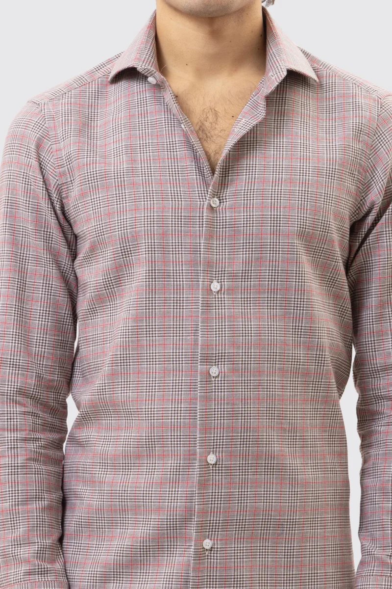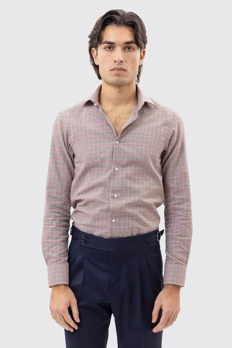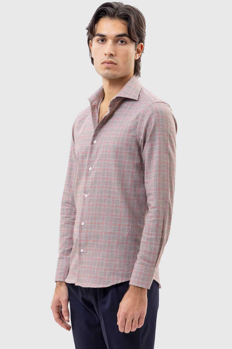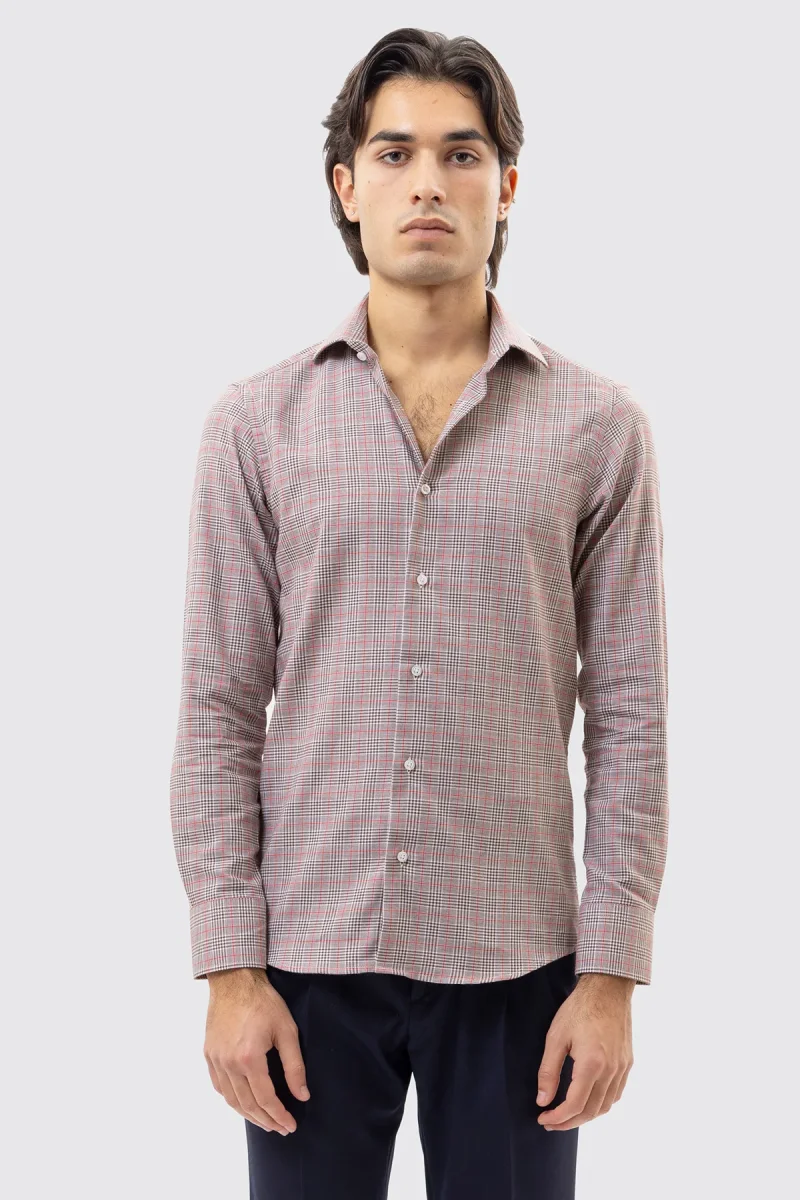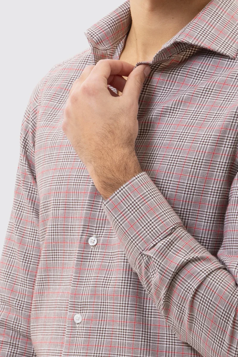 CAMICIA MARRONE FANTANTASIA GALLES SLIM FIT UOMO 100% COTONE COLLO SEMI FRANCESE POLSO SMUSSATO