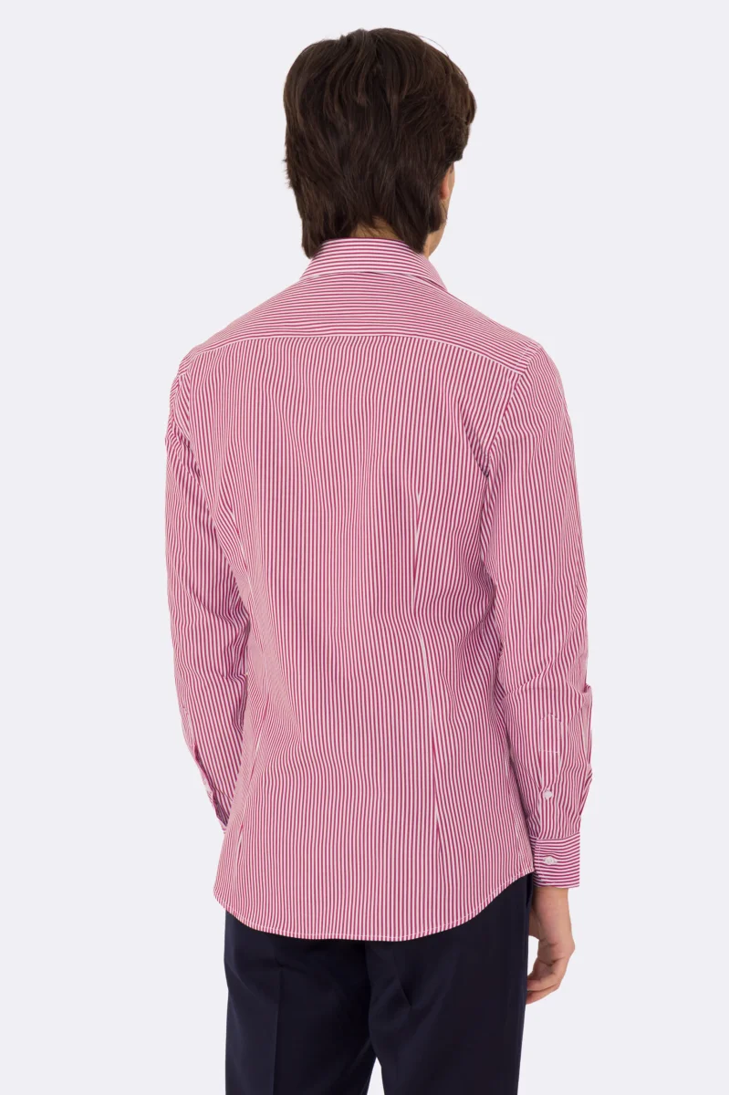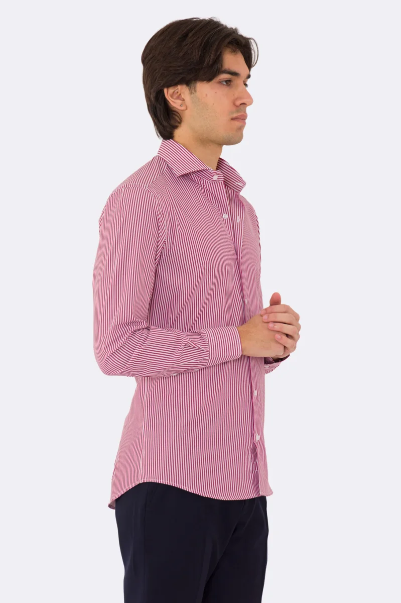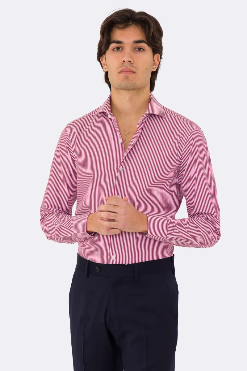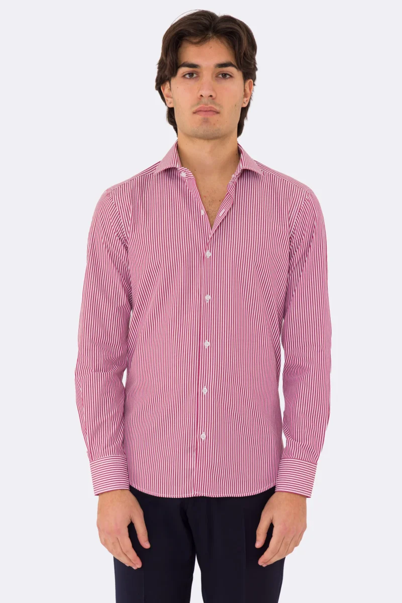 Camicia Uomo verde a righe slim Fit 100% cotone collo semi francese mileta Tessuti