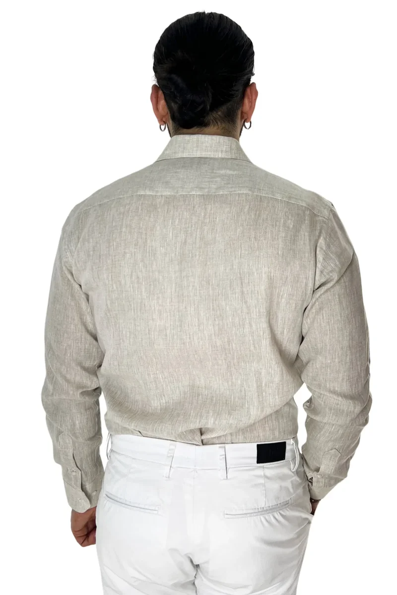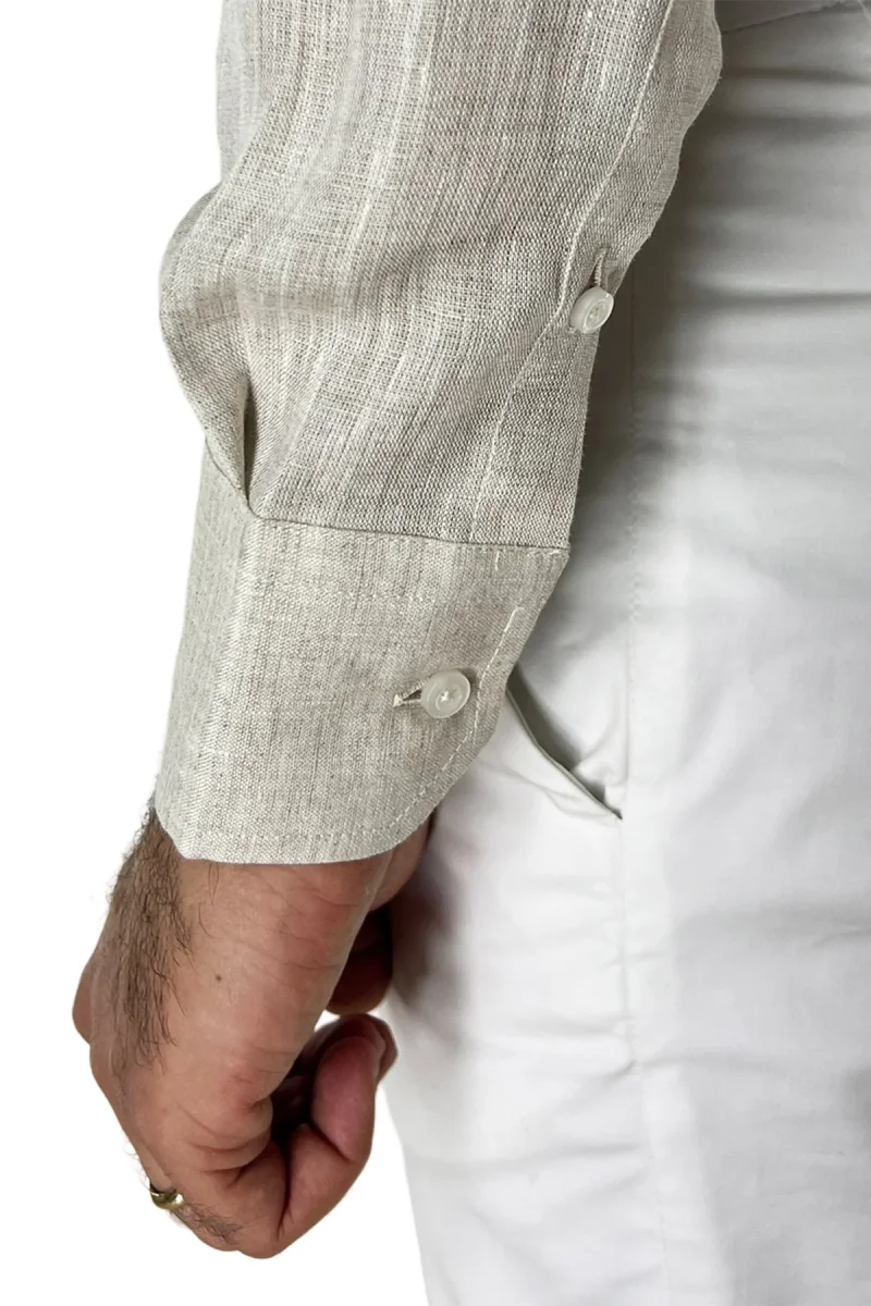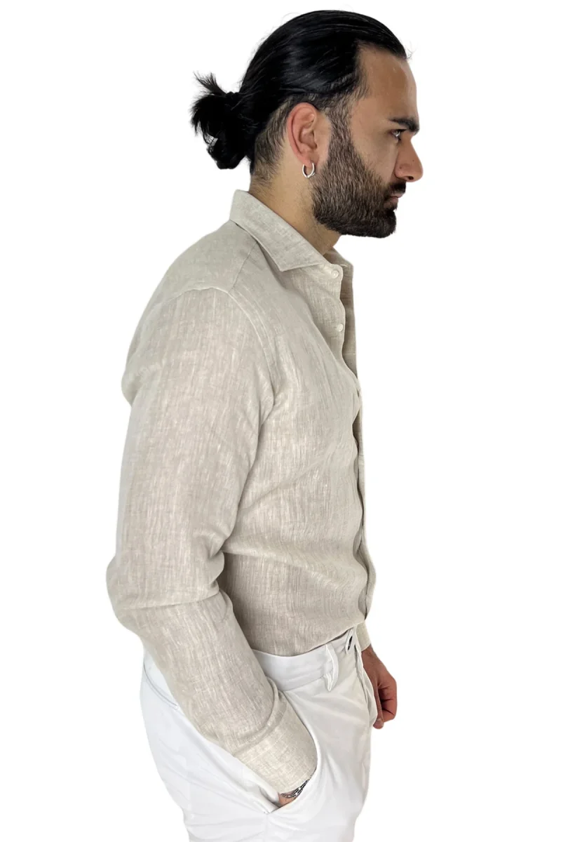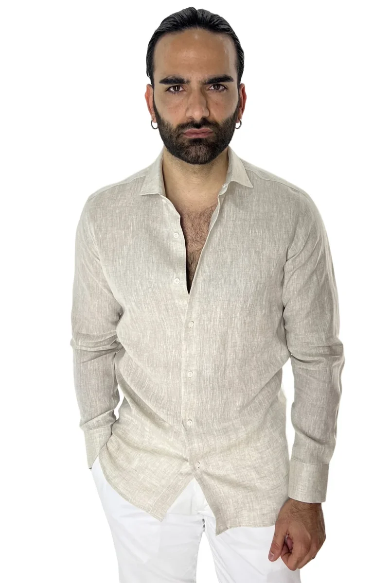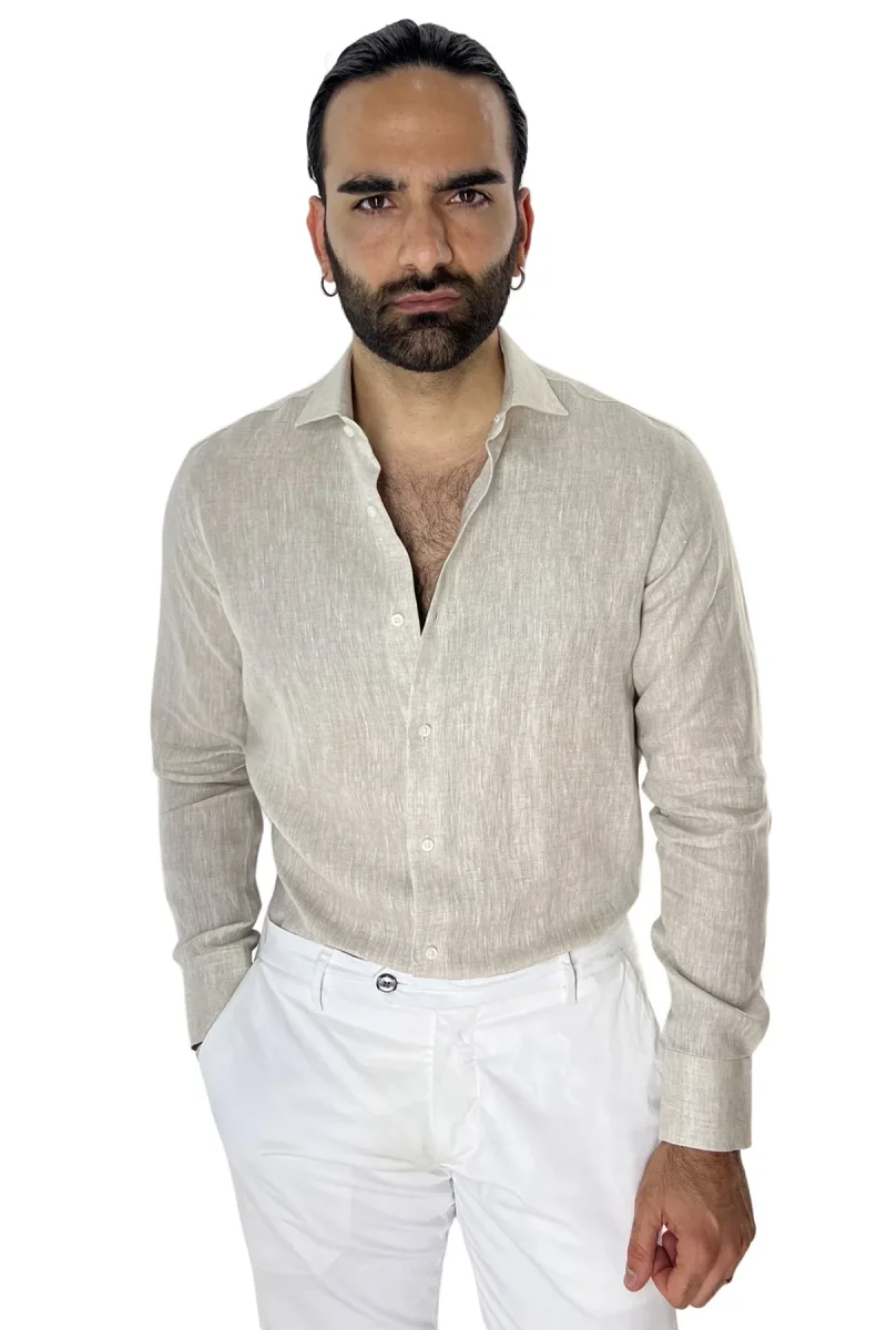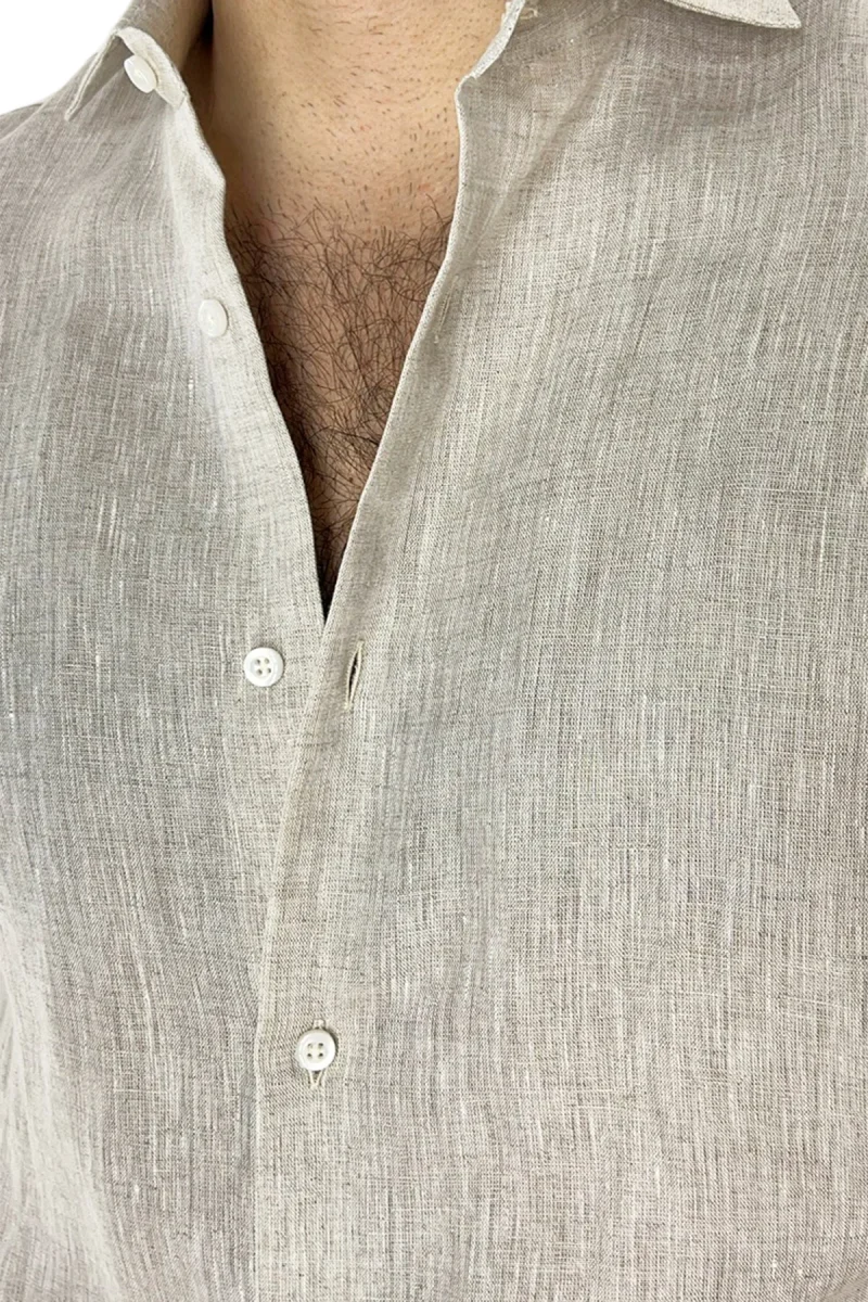 Camicia Uomo Beige in Lino 100% made in italy collo semi francese morbido regular fit