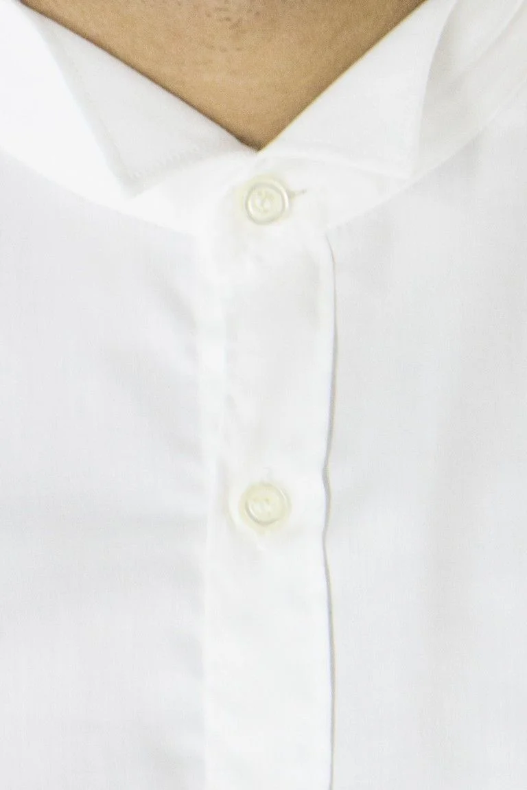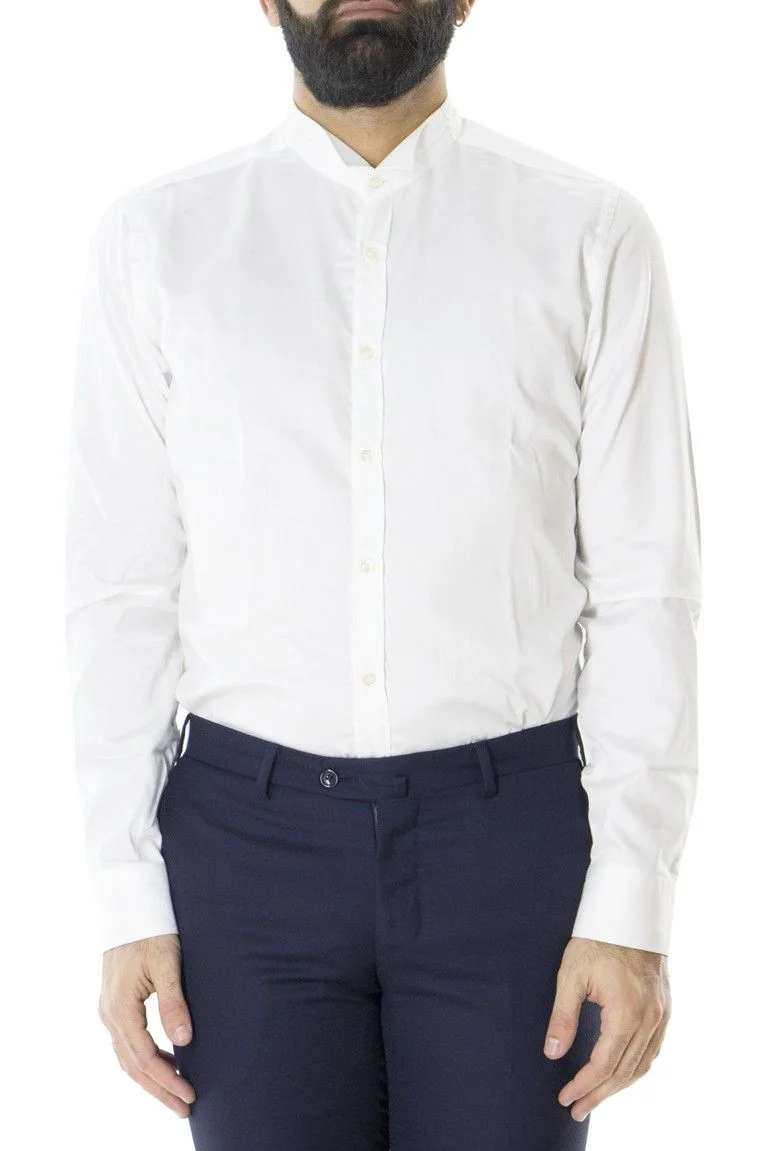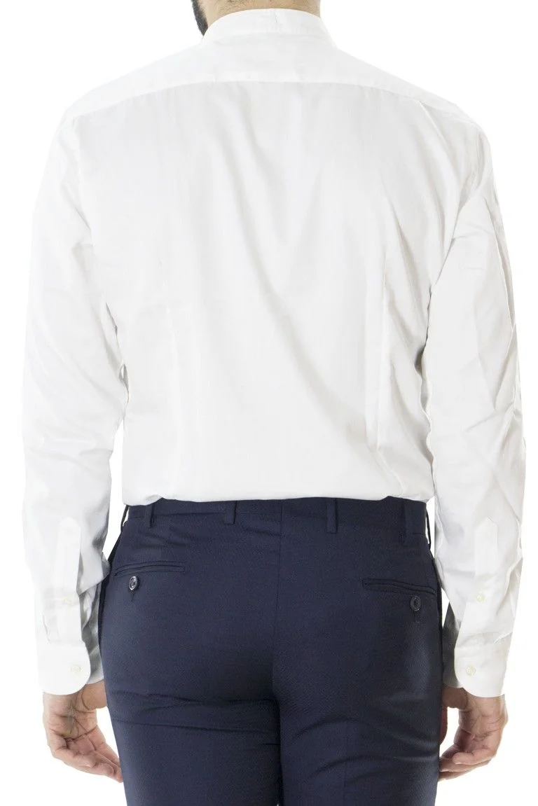 Camicia da uomo bianca tinta unita in cotone elasticizzato collo diplomatico vestibilita slim fit