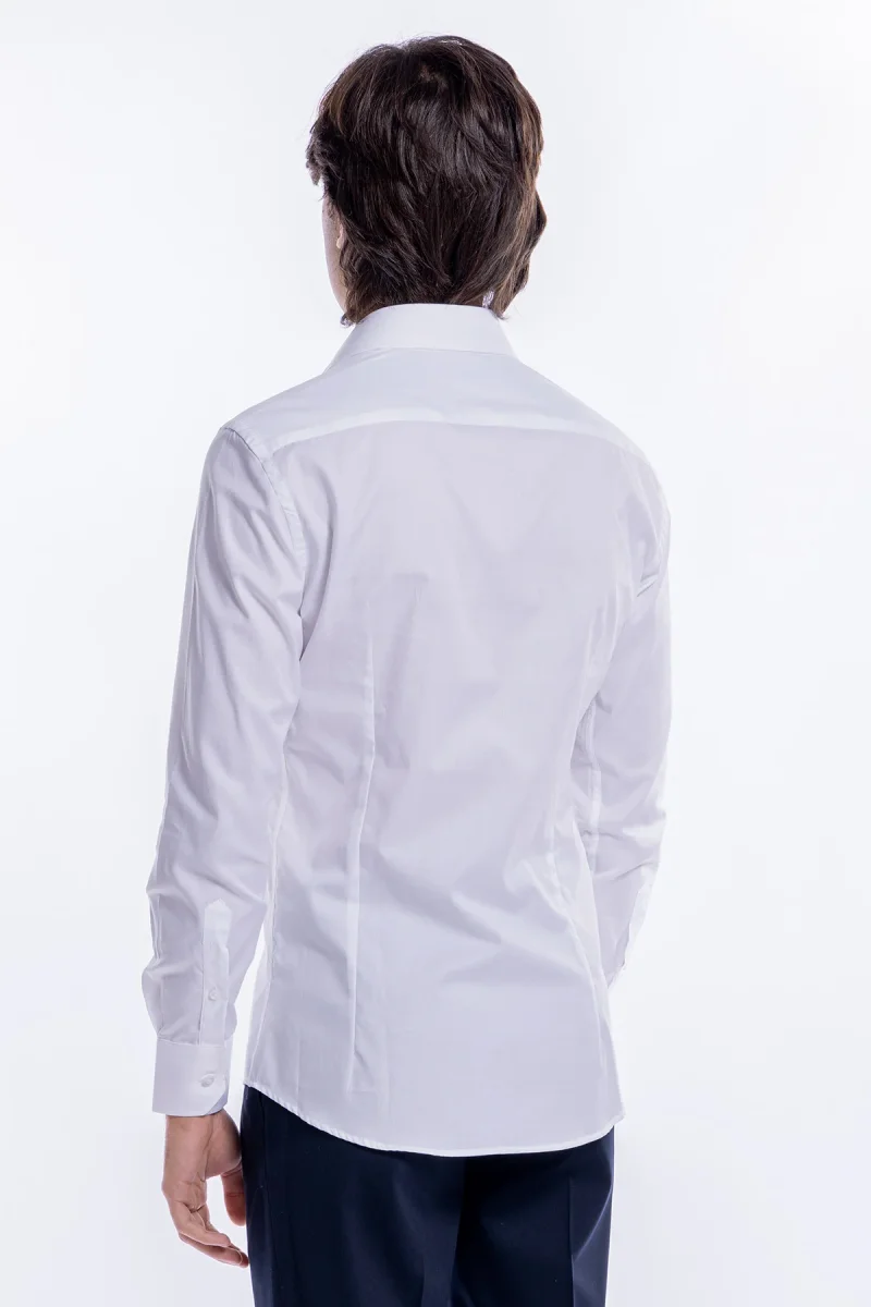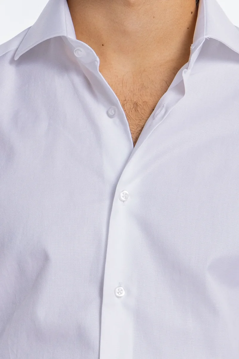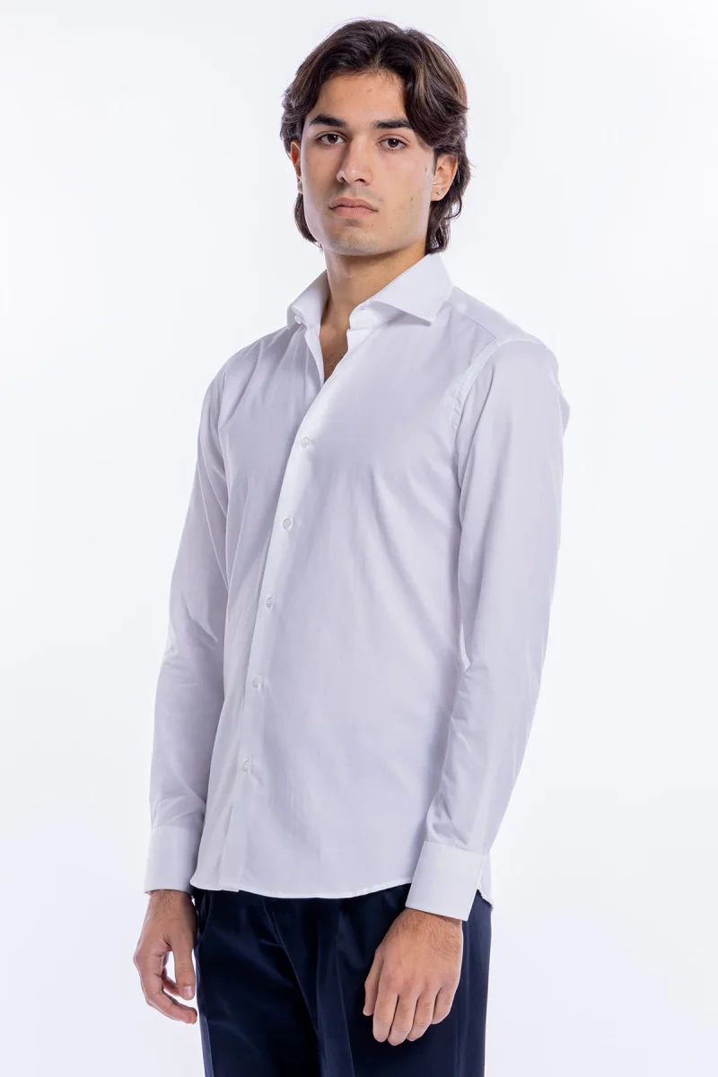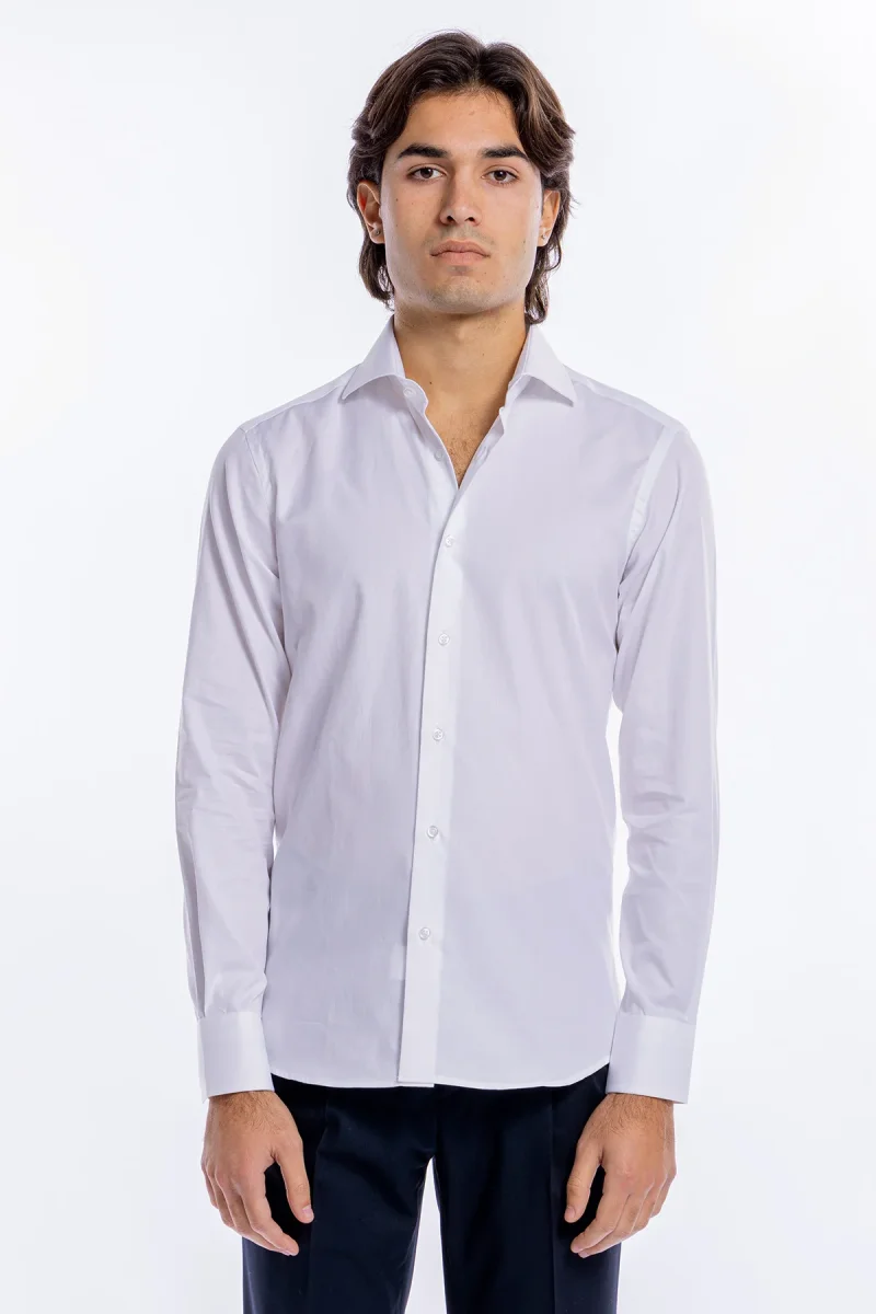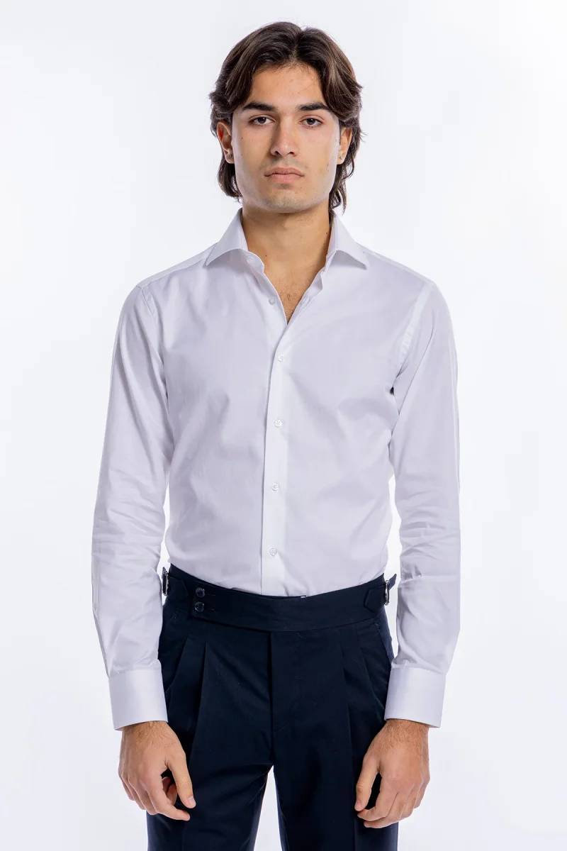 Camicia Uomo bianca nido d’ape slim Fit 100% cotone collo semi francese mileta Tessuti