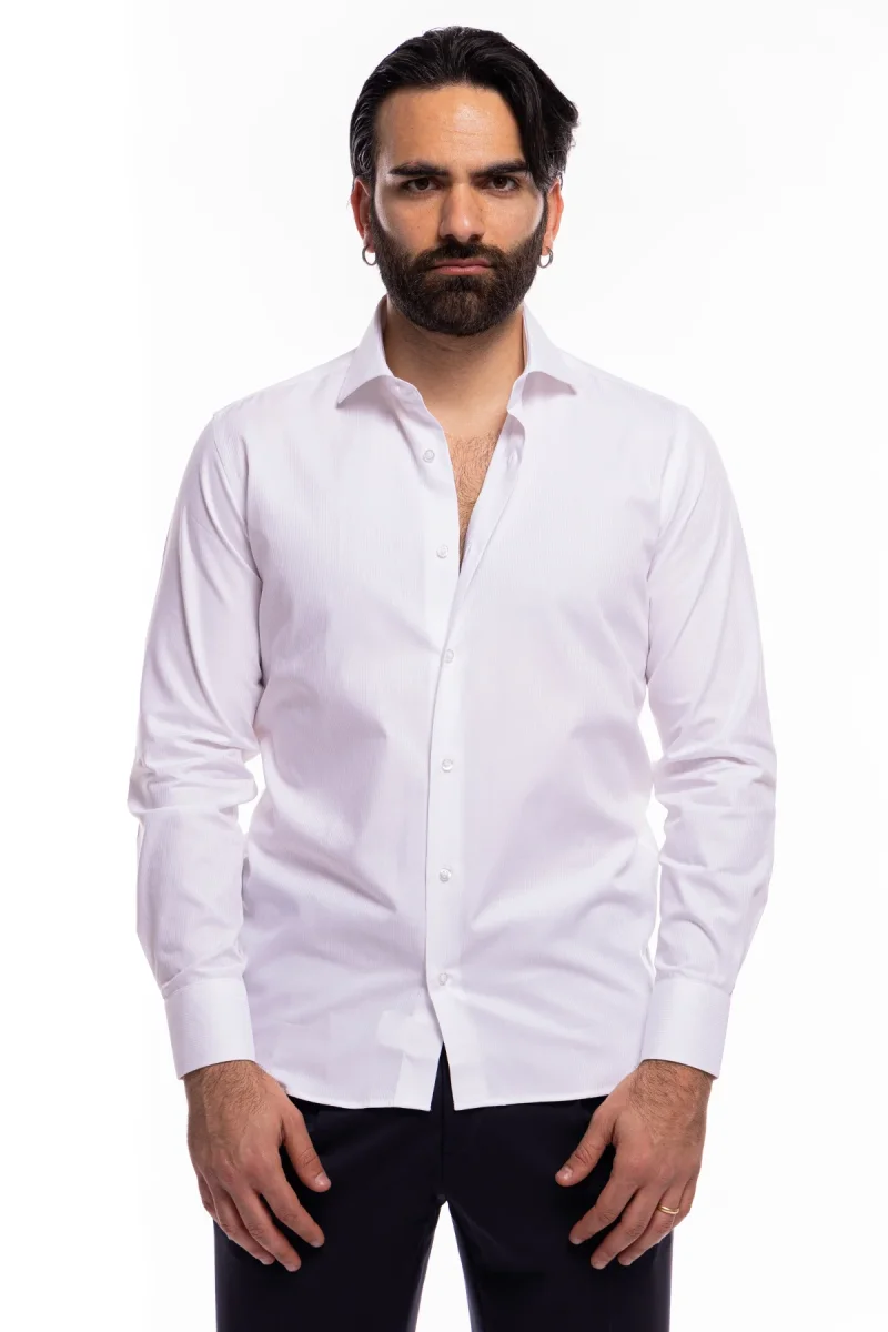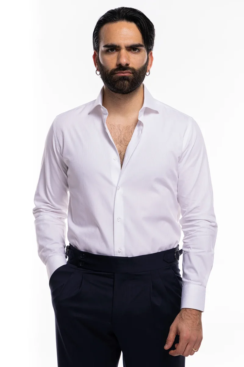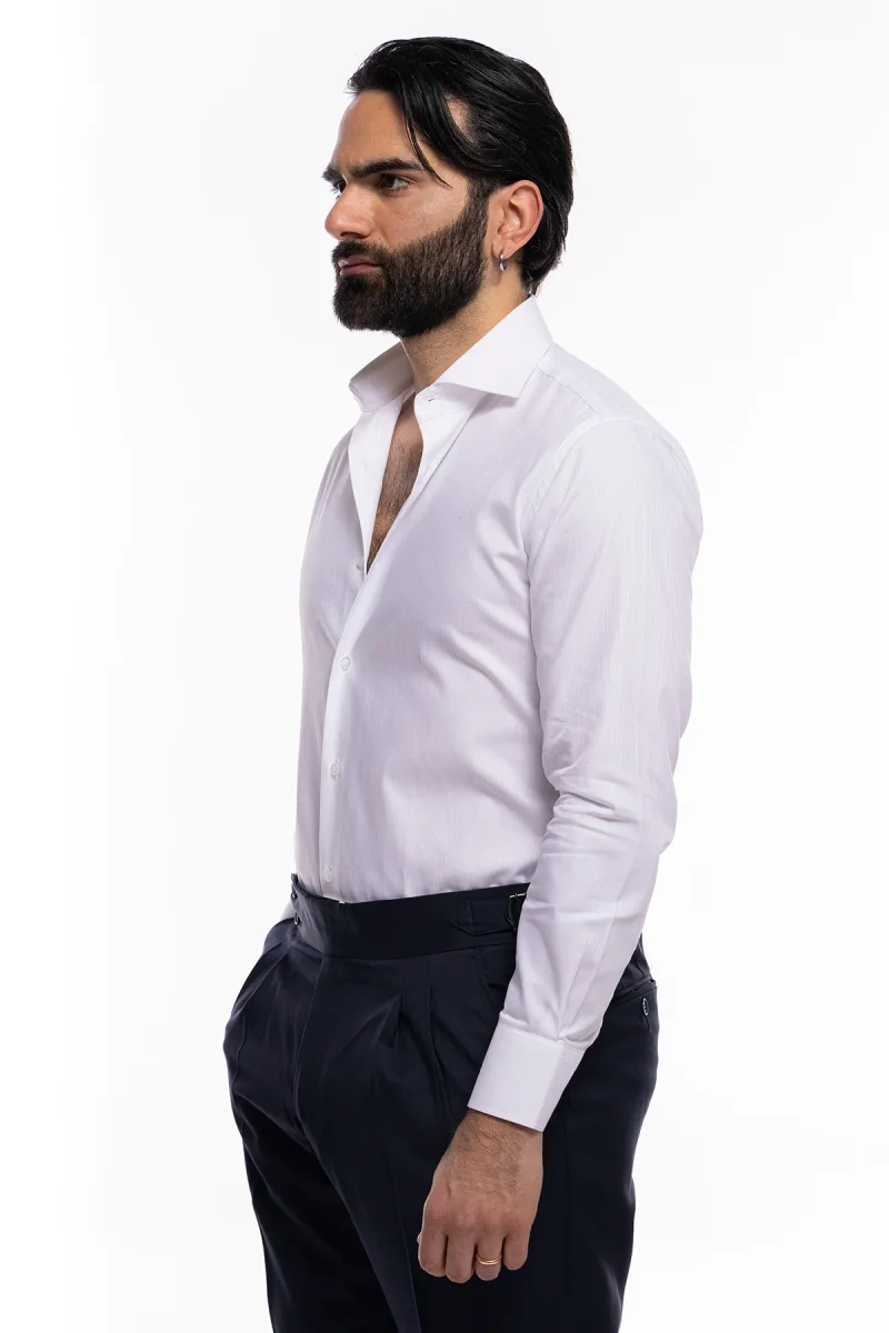 Camicia Uomo bianca slim Fit 100% cotone rigato tono su tono collo semi francese Monti Tessuti
