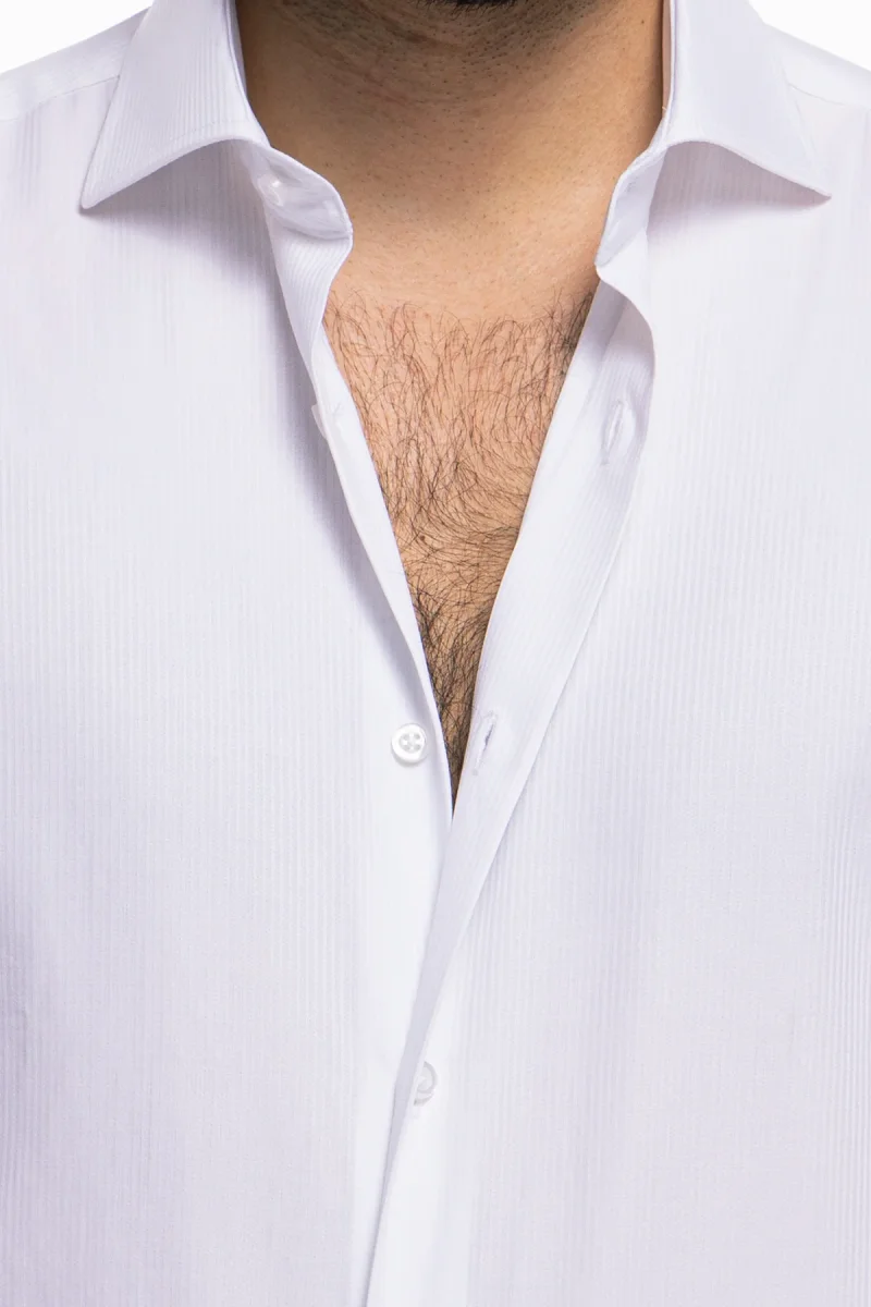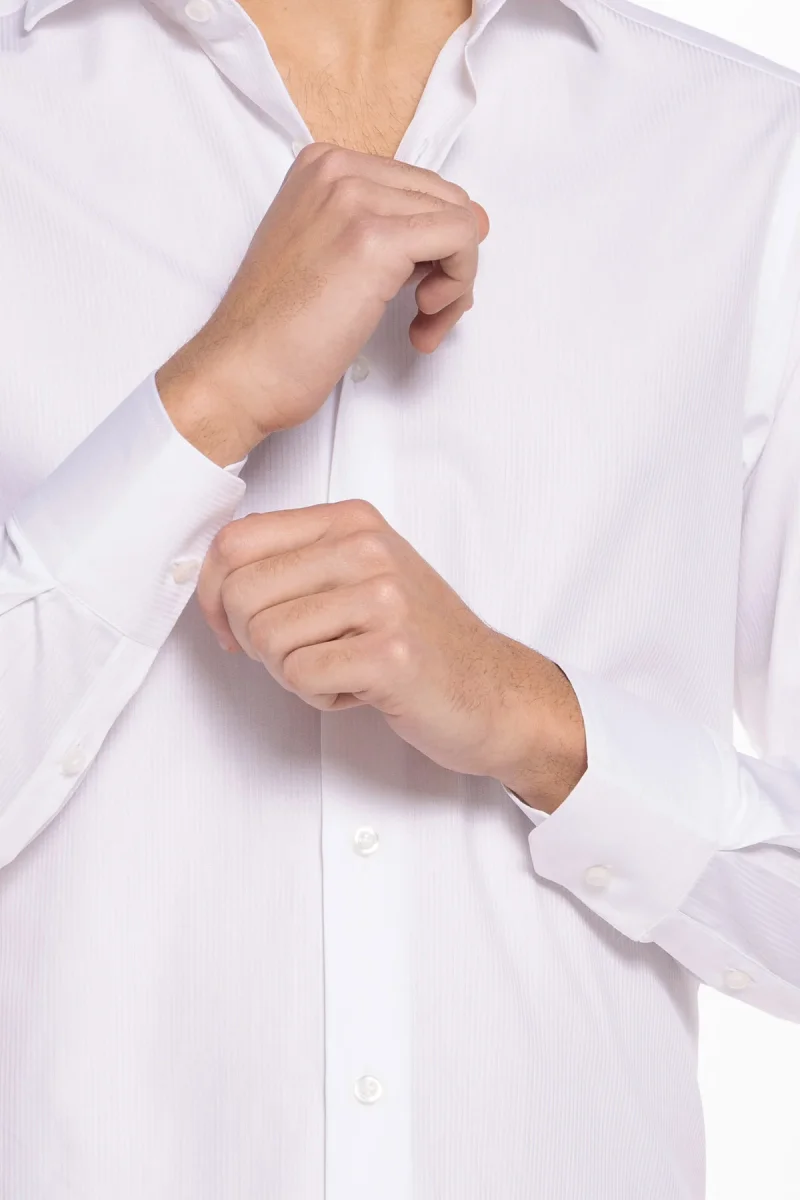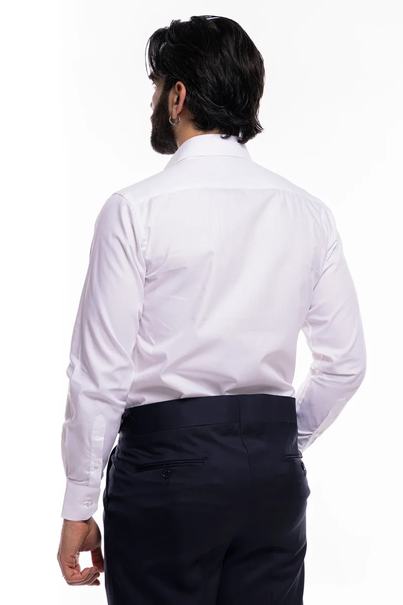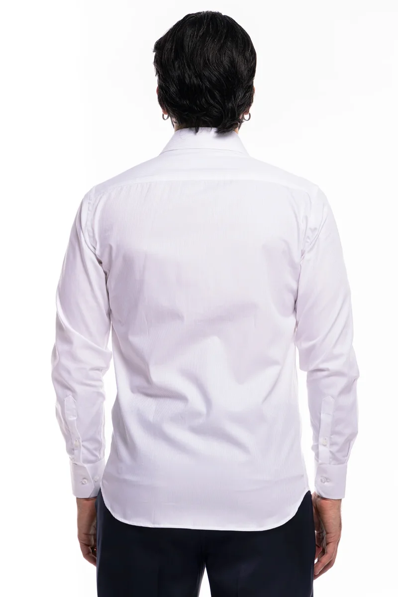 Camicia Uomo bianca slim Fit 100% cotone rigato tono su tono collo semi francese Monti Tessuti