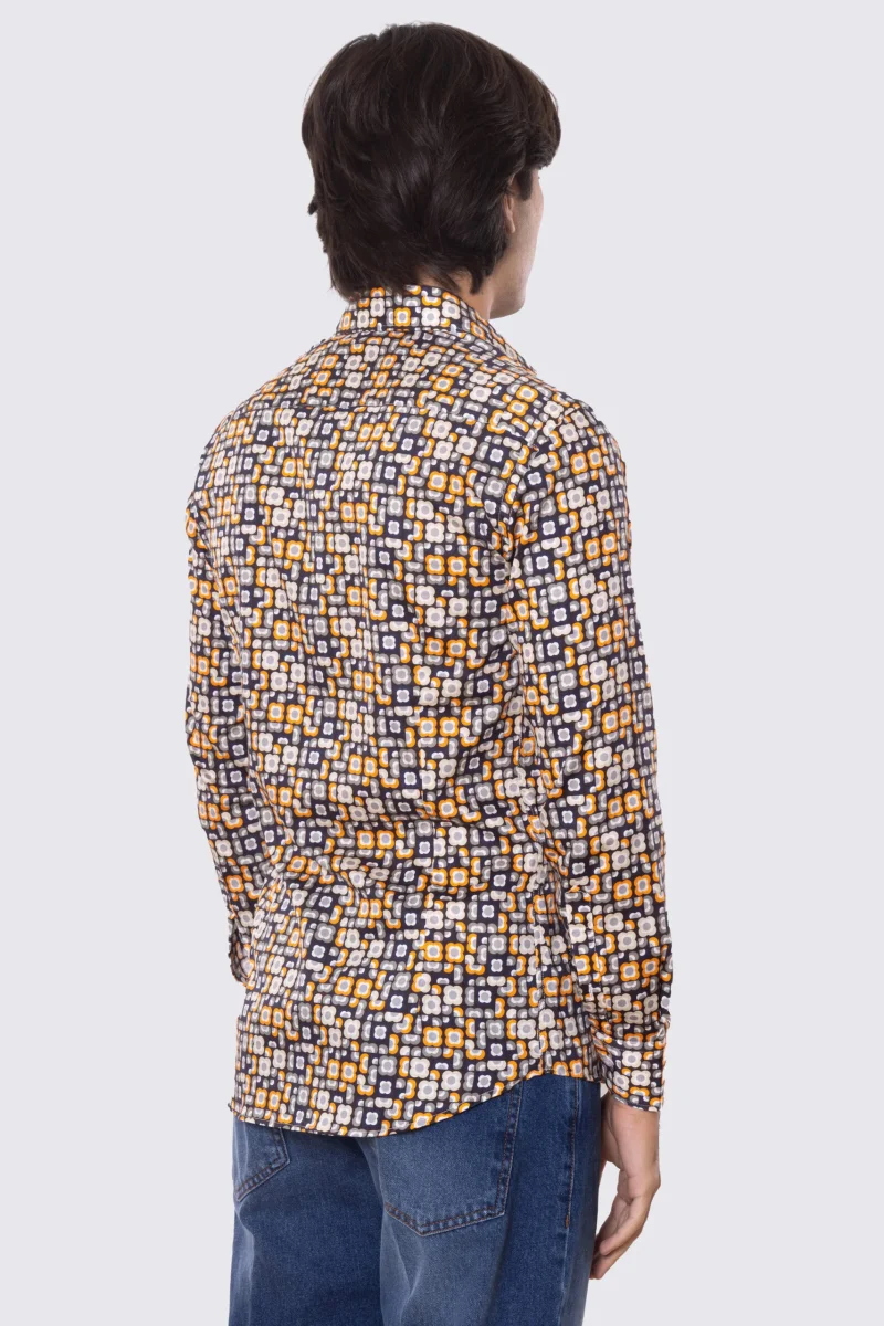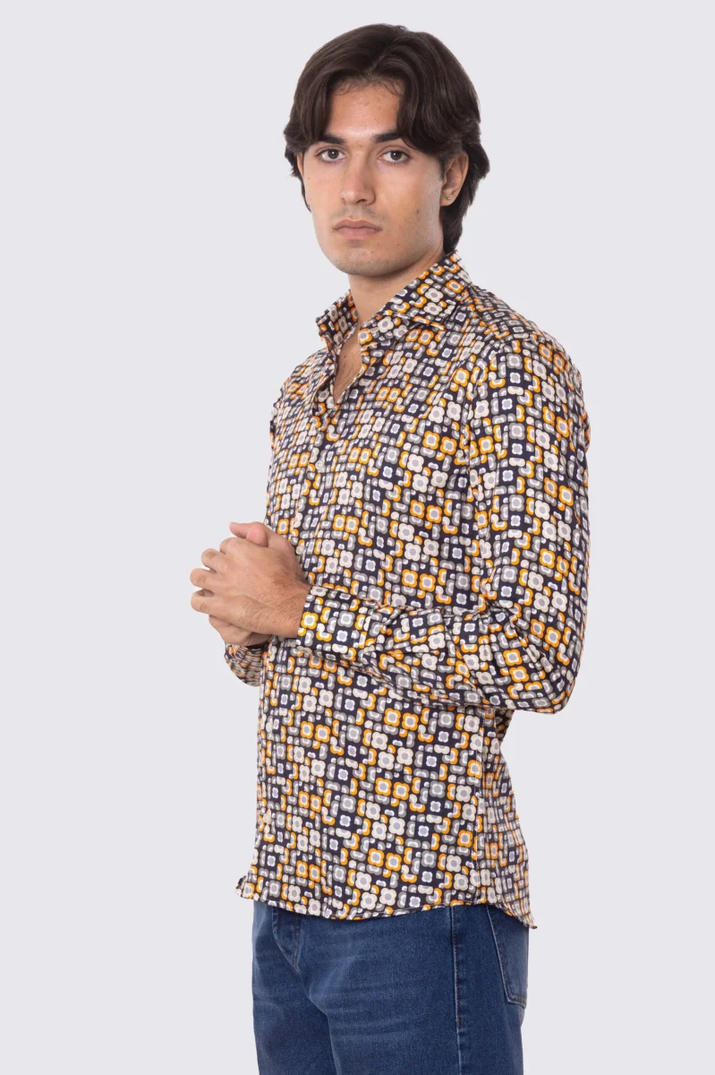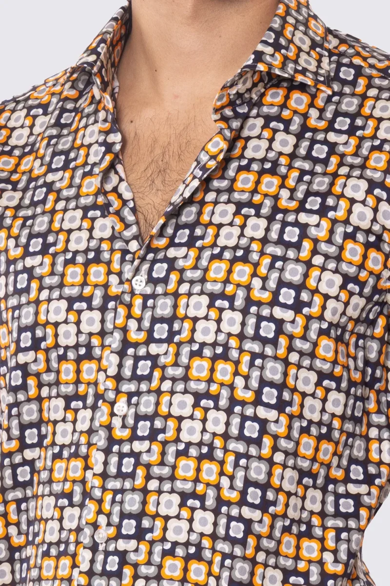 Camicia Uomo blu fantasia fiori slim fit in cotone 100% Collo semi francese sartoriale