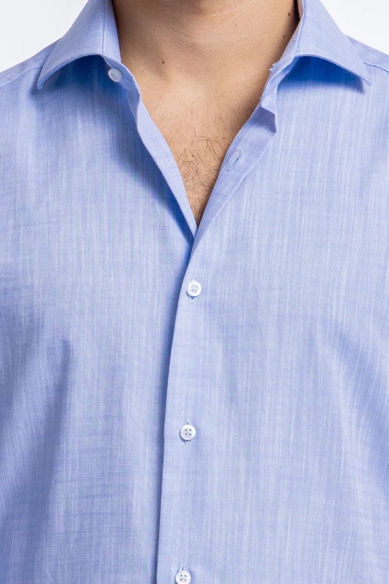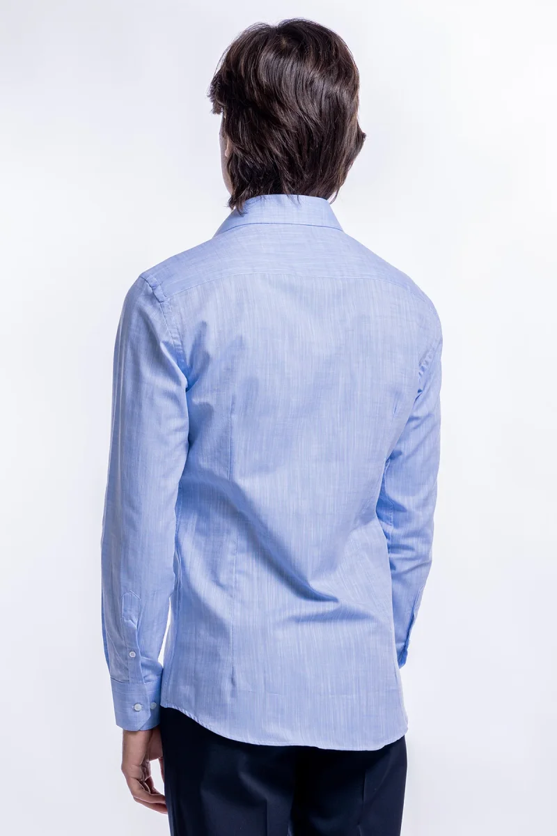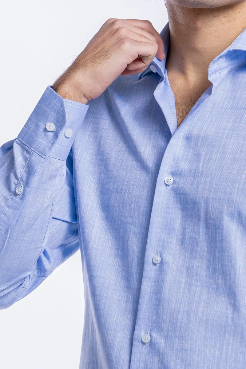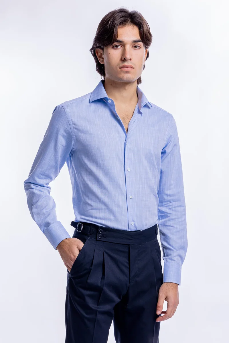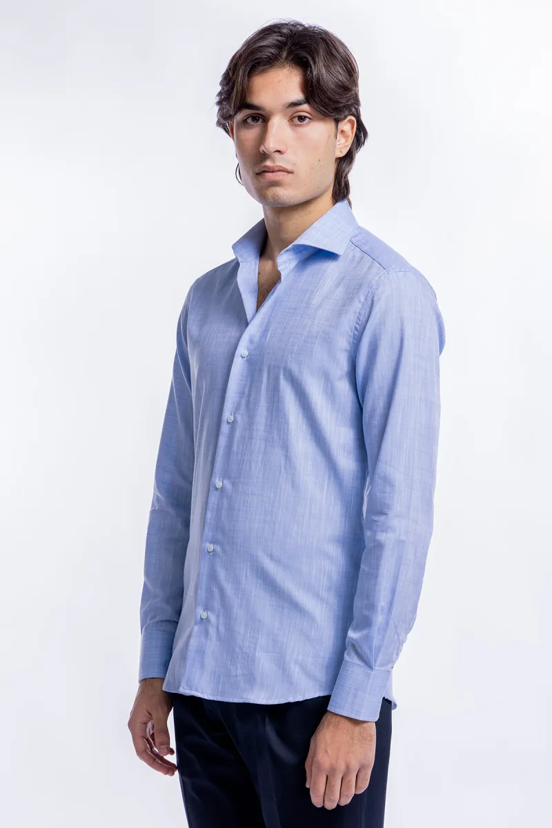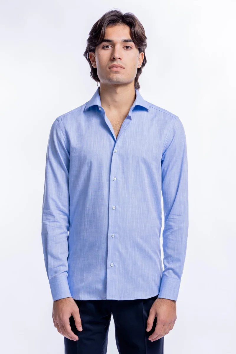 Camicia Uomo celeste melange slim Fit 100% cotone collo semi francese mileta Tessuti