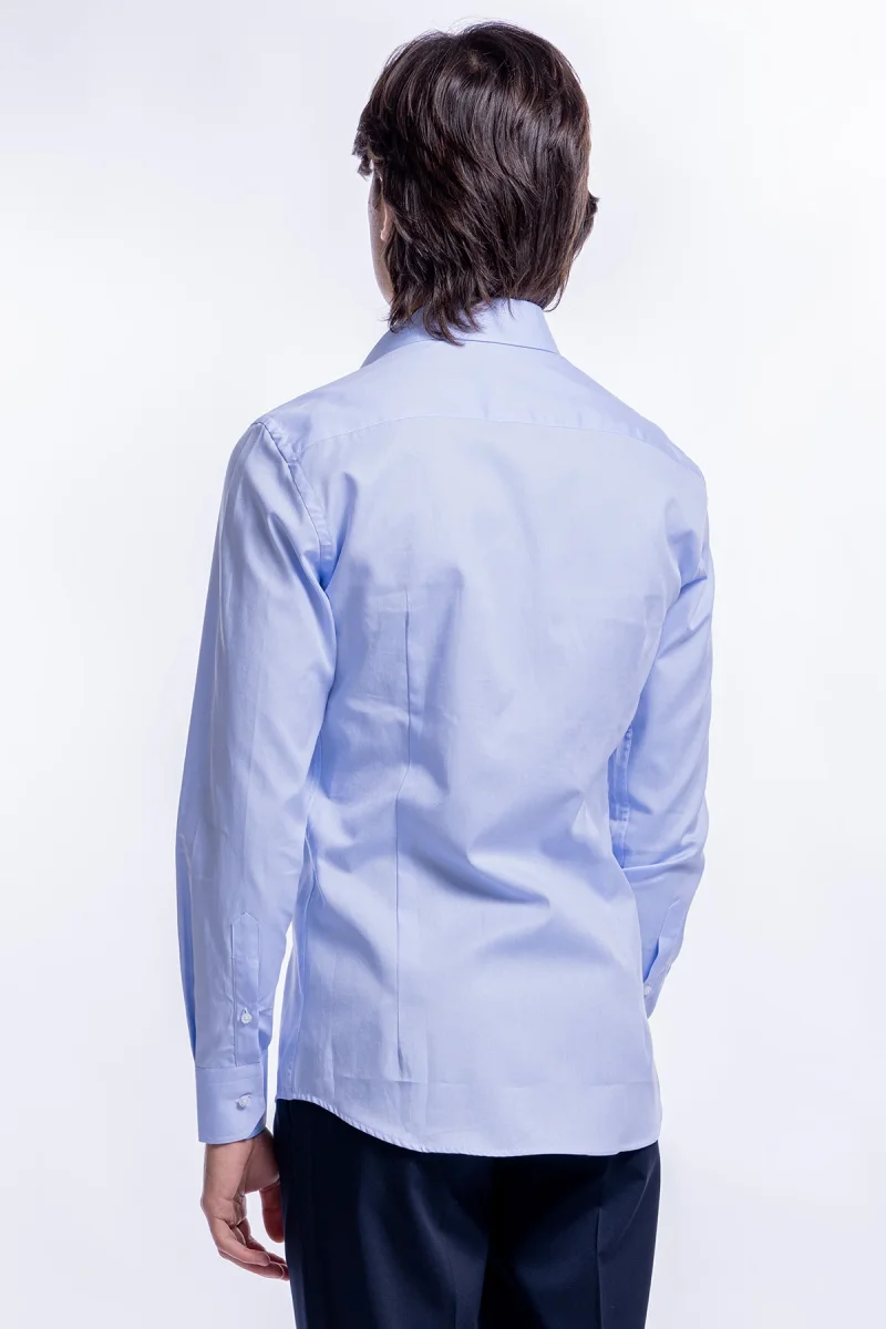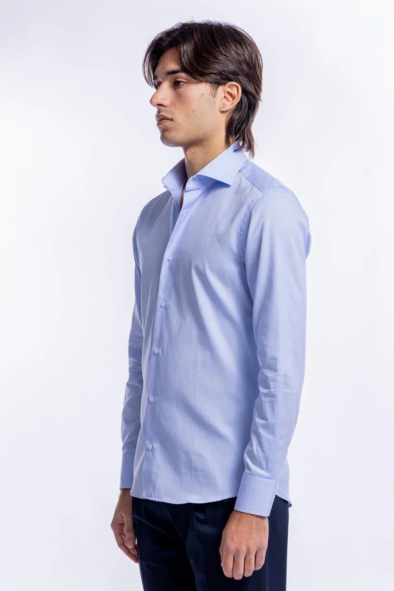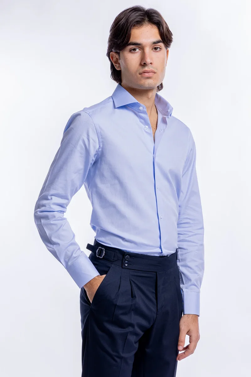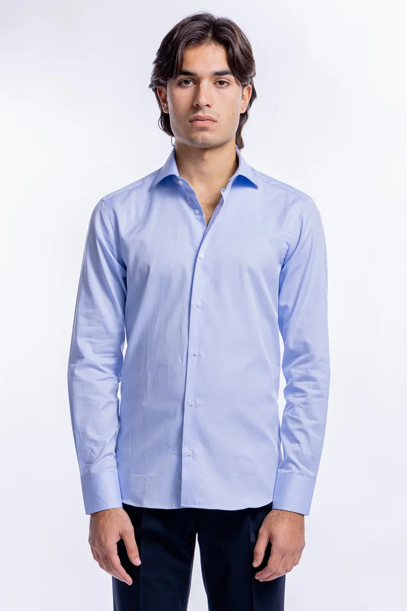 CAMICIA UOMO celeste NIDO D’APE SLIM FIT 100% COTONE COLLO SEMI FRANCESE MILETA TESSUTI