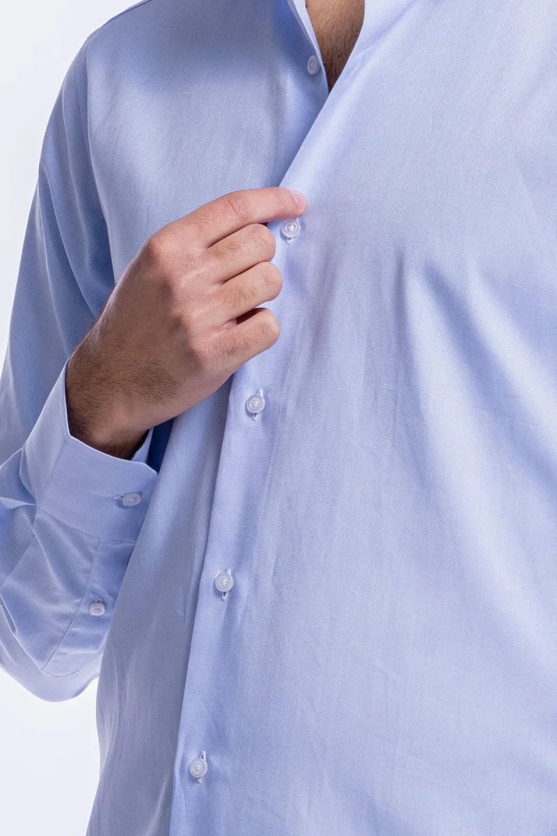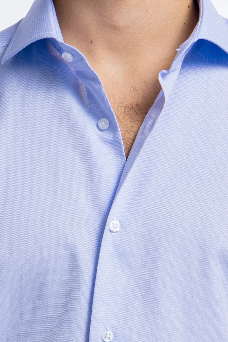 Camicia Uomo celeste nido d’ape slim Fit 100% cotone collo semi francese mileta Tessuti