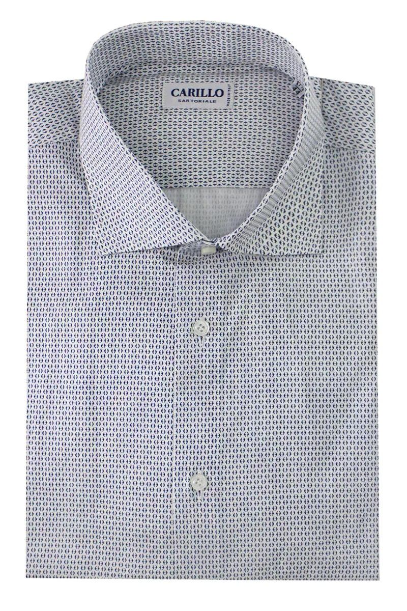 camicia uomo manica lunga con colletto semi francese 100% cotone e con fantasia frecce blu su fondo bianco