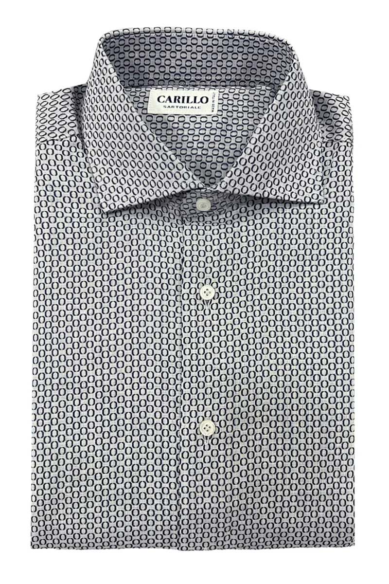 Camicia uomo in cotone fisso collo francese fantasia cerchi blu su fondo grigio maniche lunghe made in italy