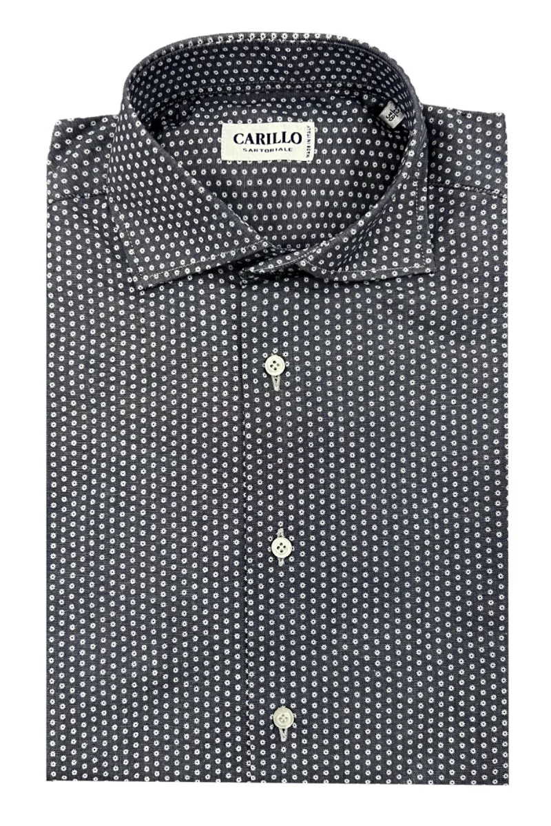 Camicia uomo cotone slim fit maniche lunghe collo francese fantasia fiori su base denim made in italy