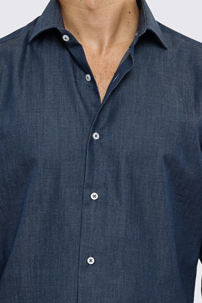 Camicia Uomo denim Regular fit 100% cotone Collo semi francese polso smussato bottoni bianchi effetto madreperla