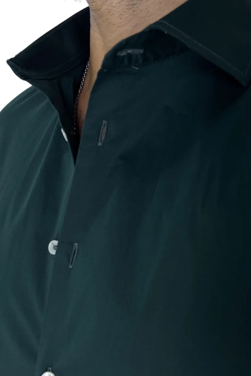DETTAGLI : Camicia Regular fit tinta unita,con collo francese, maniche lunghe e bottoni bianchi effetto perlato.