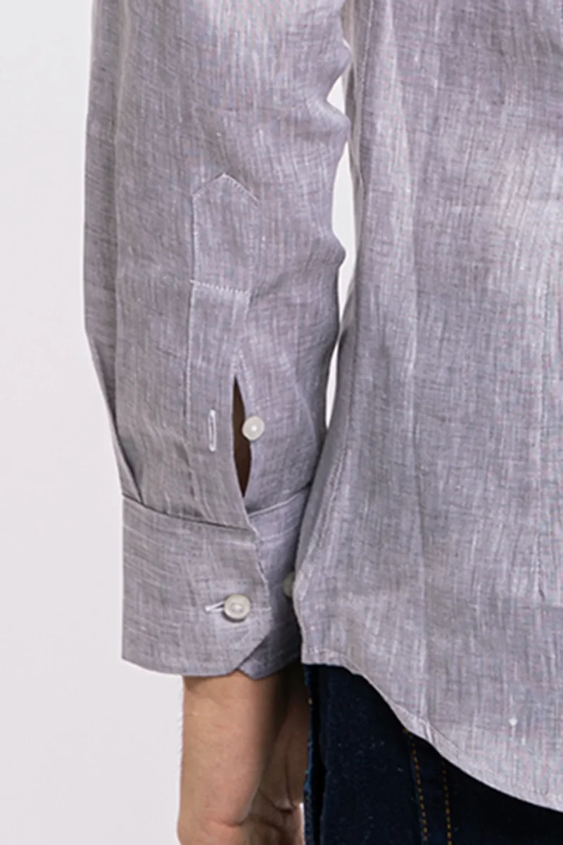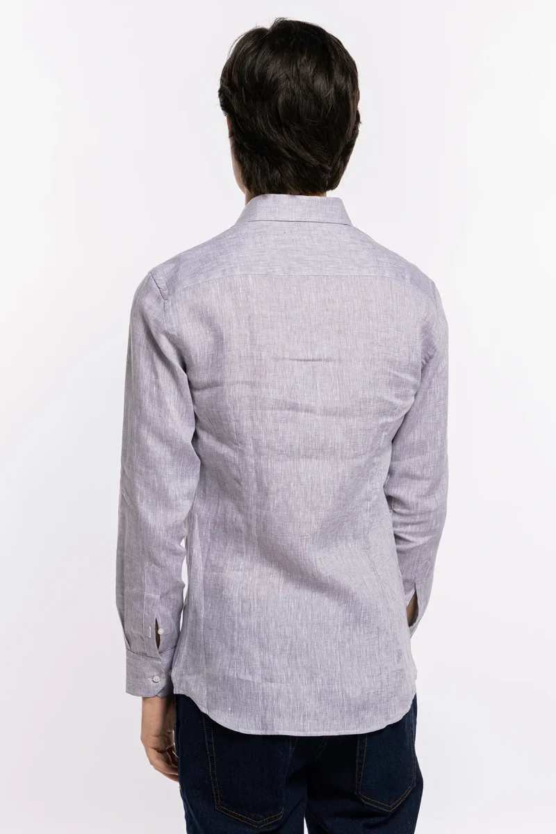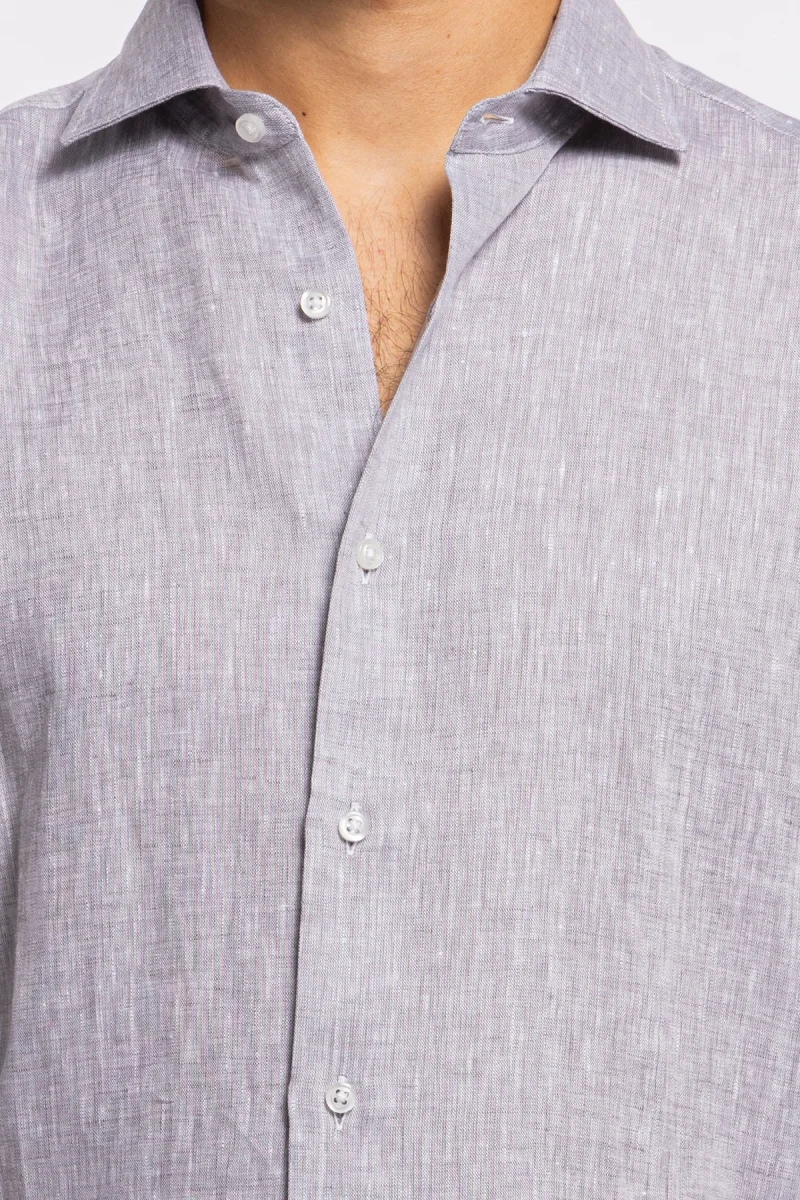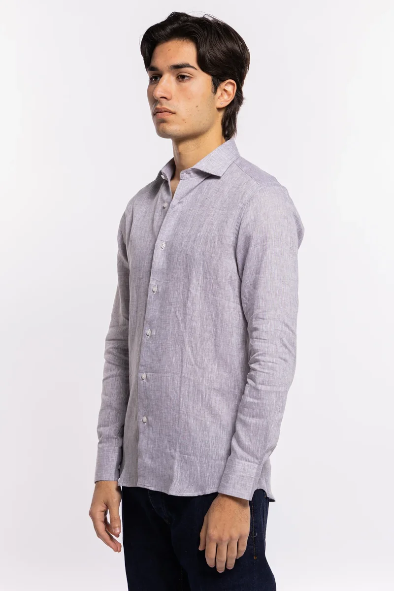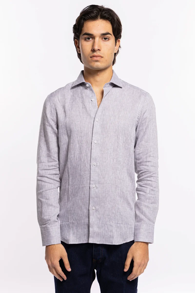Camicia Uomo grigia in Lino 100% made in italy collo semi francese morbido slim fit effetto melange