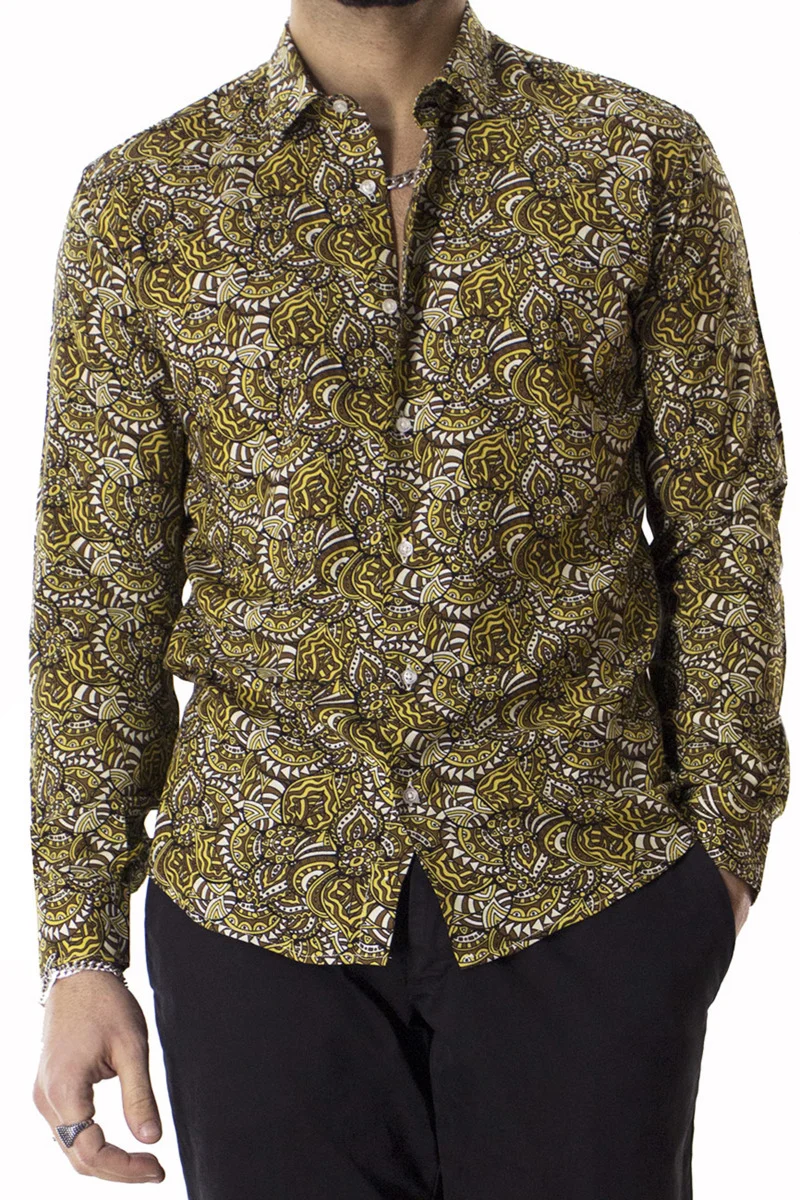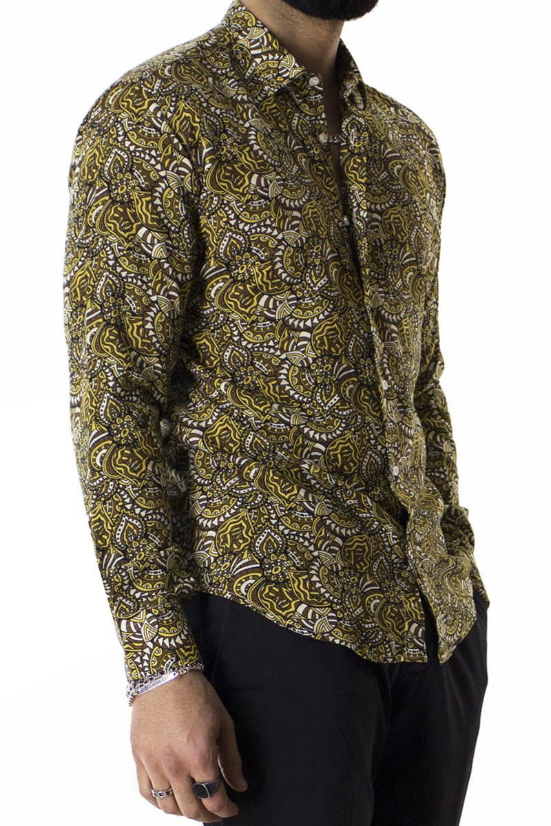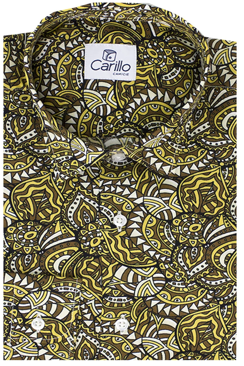 La Camicia Uomo In Viscosa Fantasia Egizia Marrone e gialla Con vestibilita comoda Taglio Regular , manica lunga in Viscosa di CARILLOCAMICIE e ormai per i nostri clienti sinonimo di garanzia e qualita. Questo modelloin particolare, viene scelto da una tipologia di persone che amano vestire benee nello stesso tempo scelgono la comodita. Infatti grazie alle caratteristiche deltessuto composto dal 100% Viscosa Effetto Seta permettono a chi le indossa di sceglierela sua misura perfetta e non preoccuparsi delle limitazioni dei movimenti.