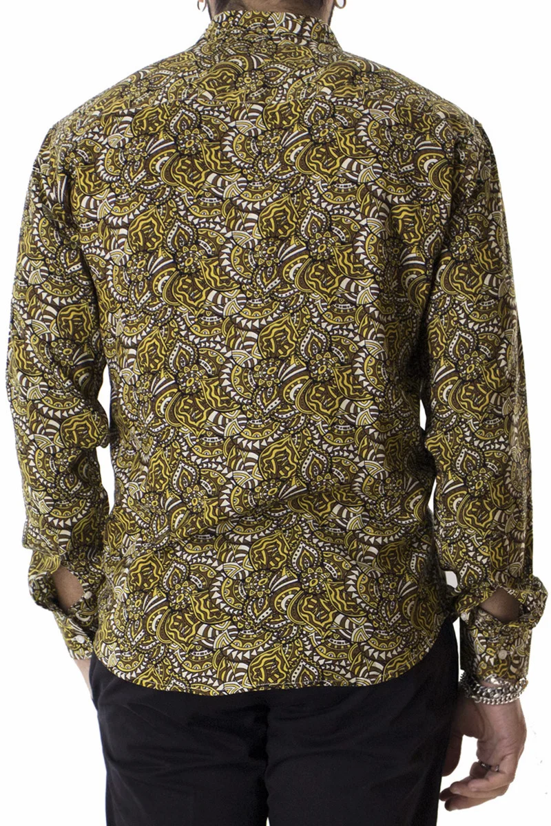 Camicia Uomo In Viscosa Fantasia Egizia Marrone e gialla