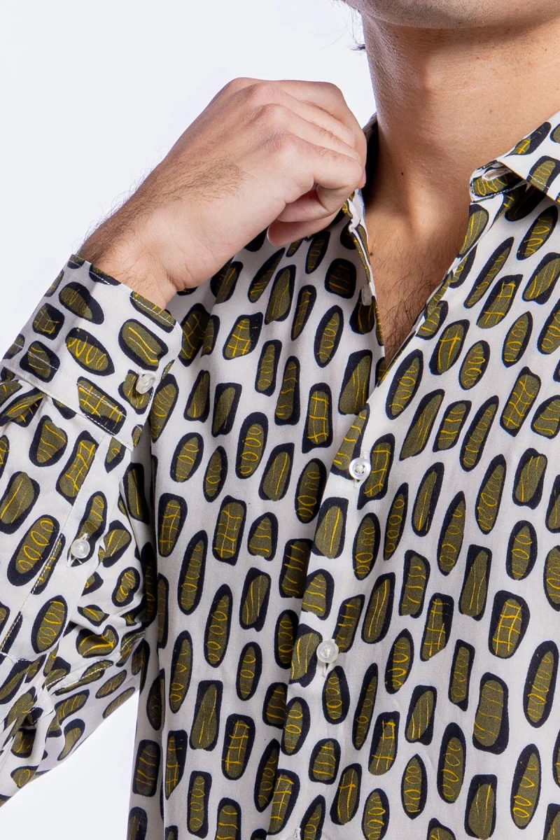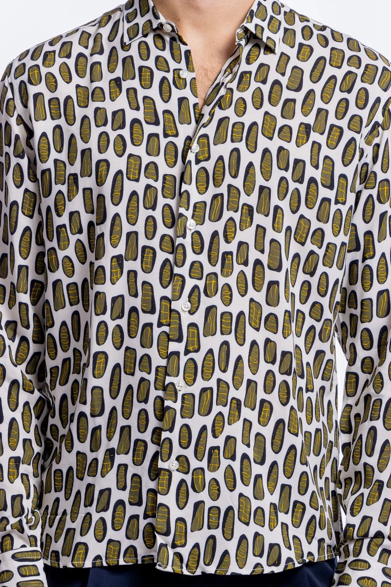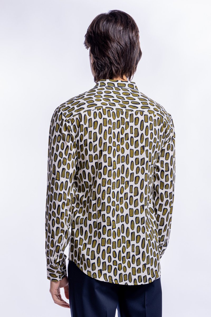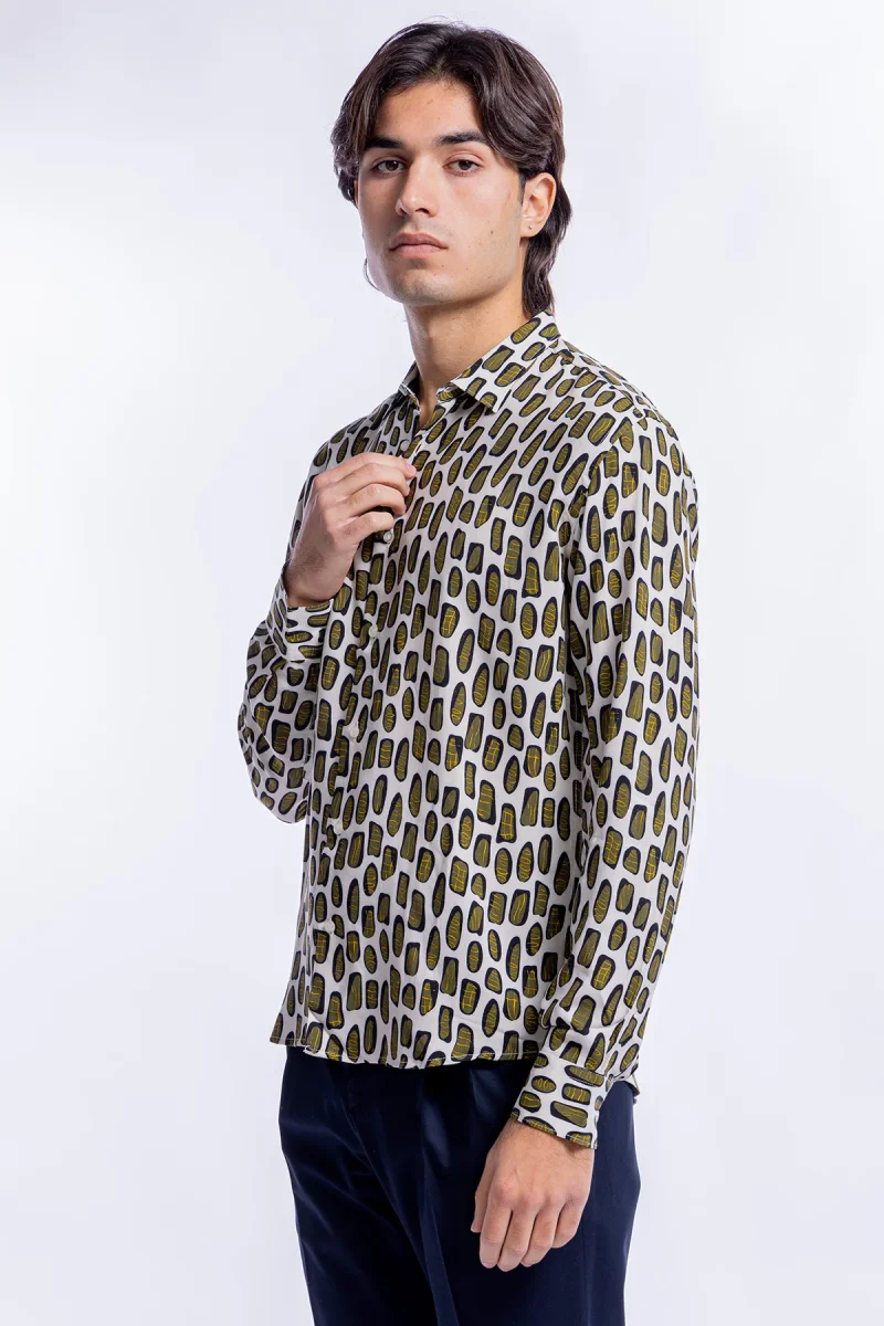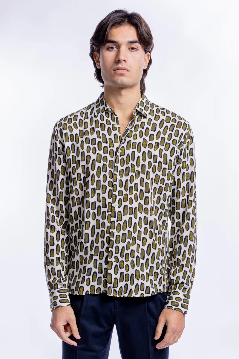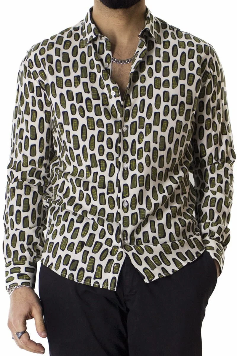 Camicia Uomo In Viscosa Fantasia Macchie Verdi