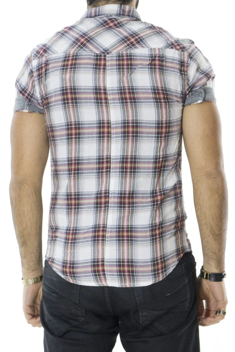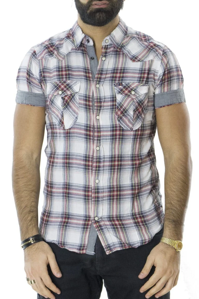 Camicia da uomo mezze maniche in cotone elasticizzato vestibilita slim fit fantasia quadri multicolor