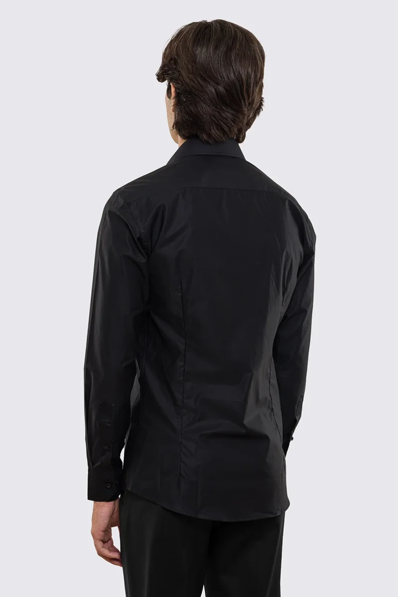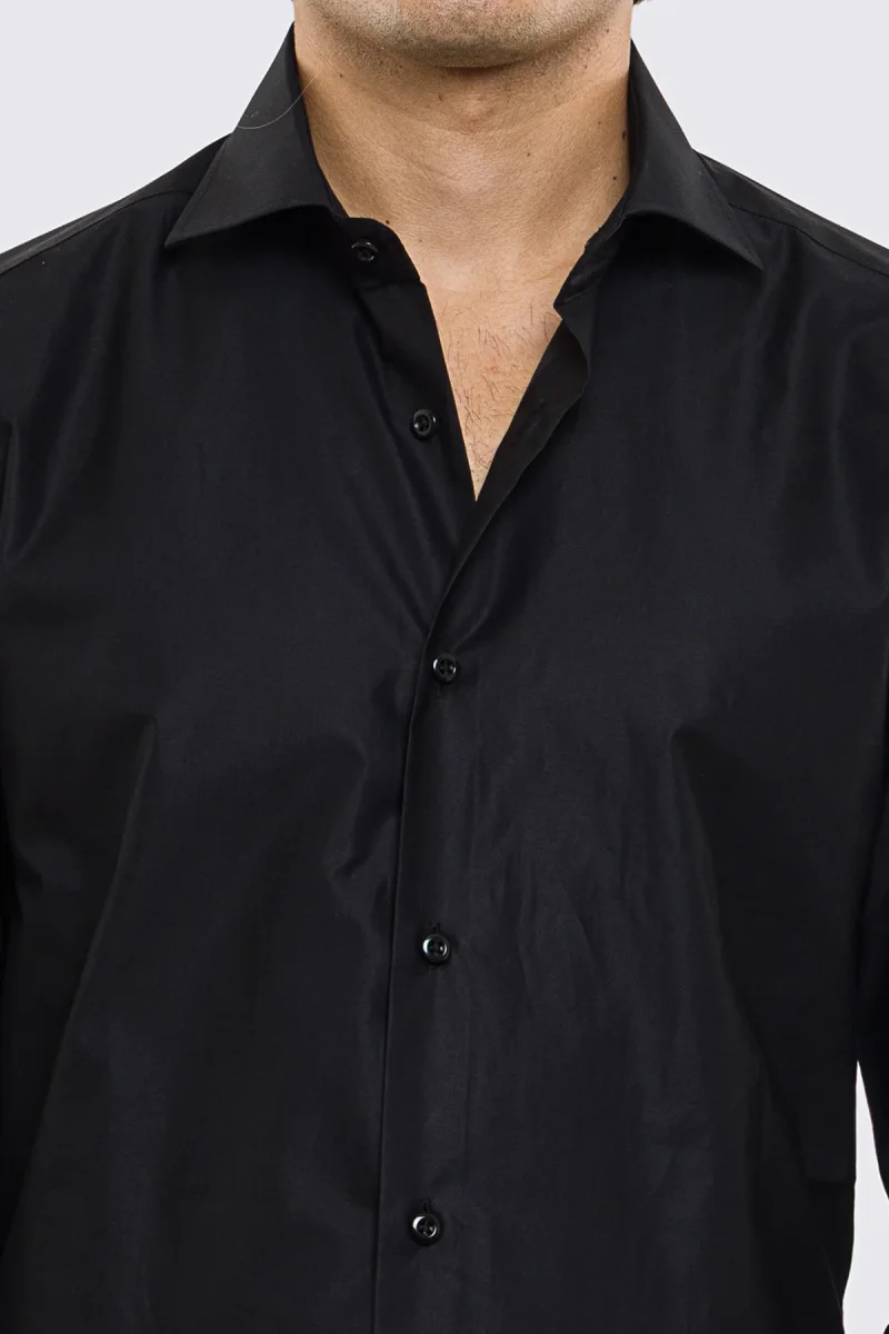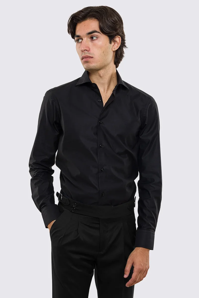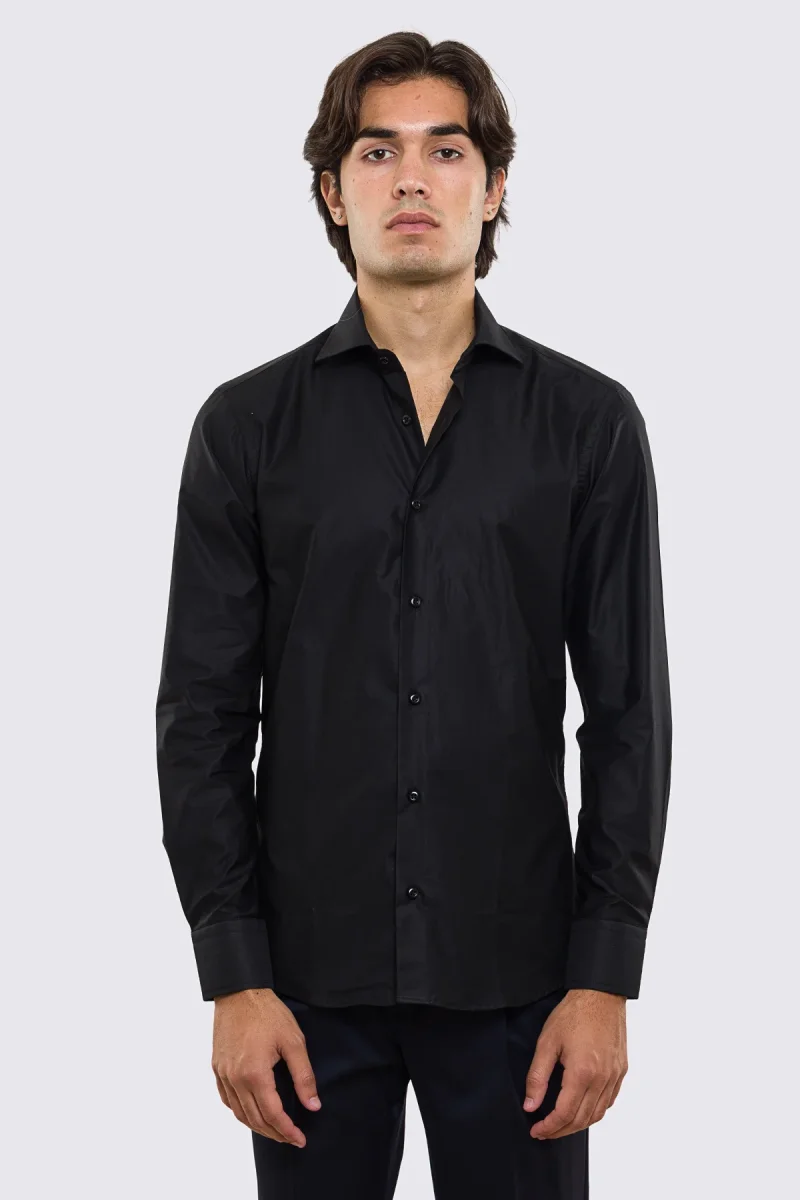 Camicia Uomo nera slim fit in cotone 100% Collo semi francese tinta unita sartoriale