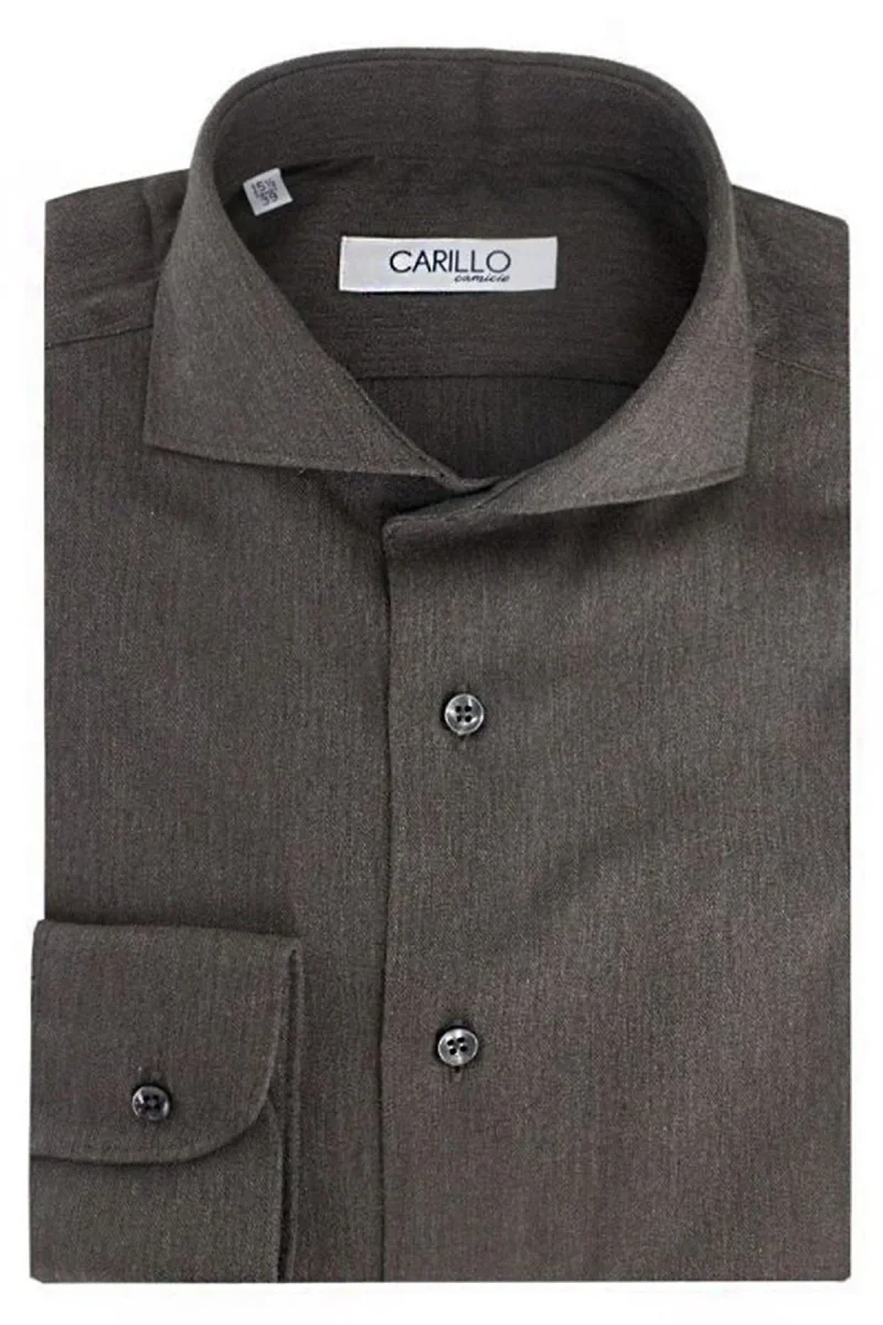 Camicia uomo con vestibilita regular 100% cotone collo francese tinta unita marrone effetto flanella con bottoni in tinta