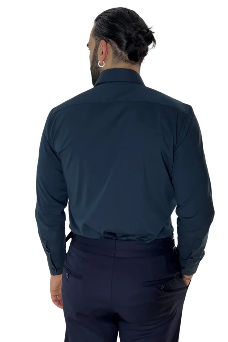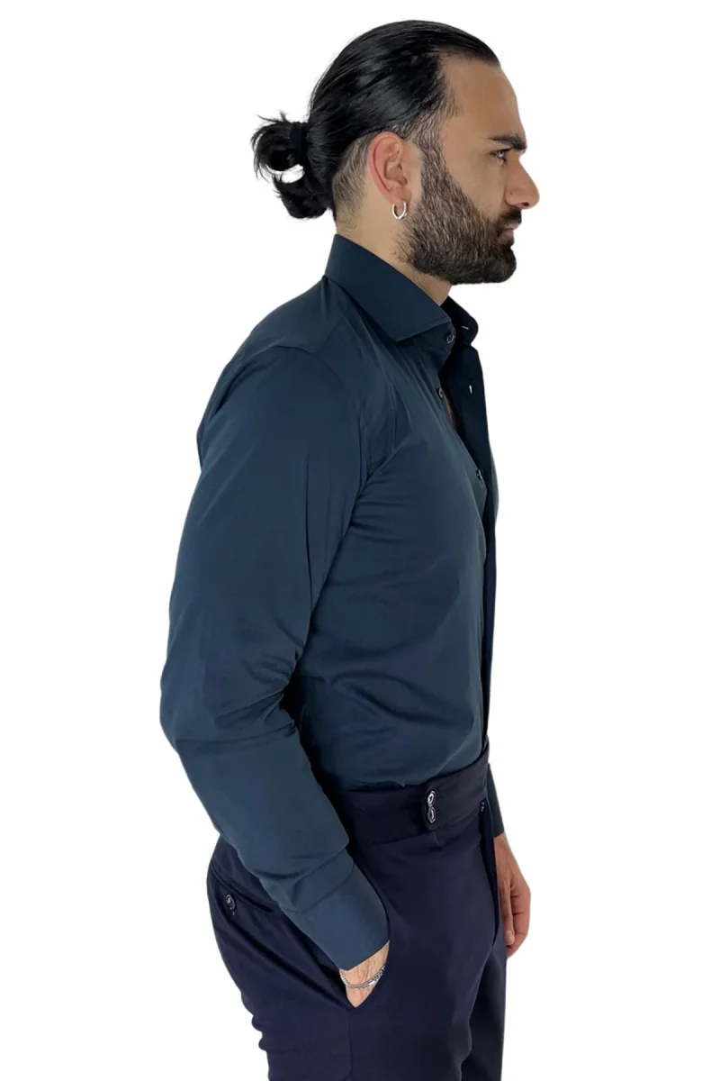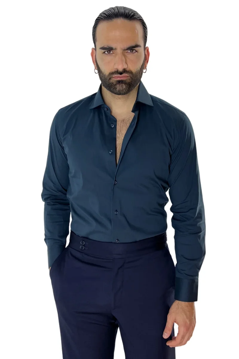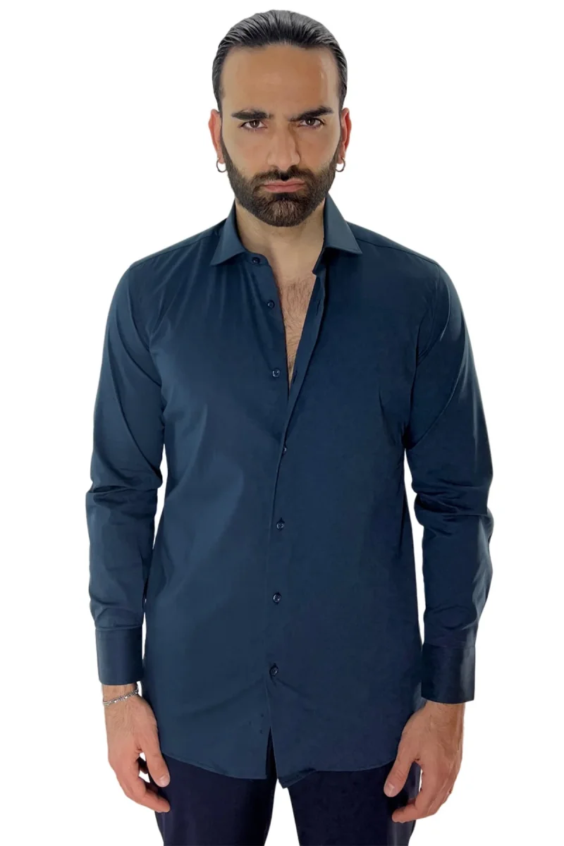 Camicia Uomo Regular fit cotone Elastico Collo semi francese tinta unita Casual ed elegante