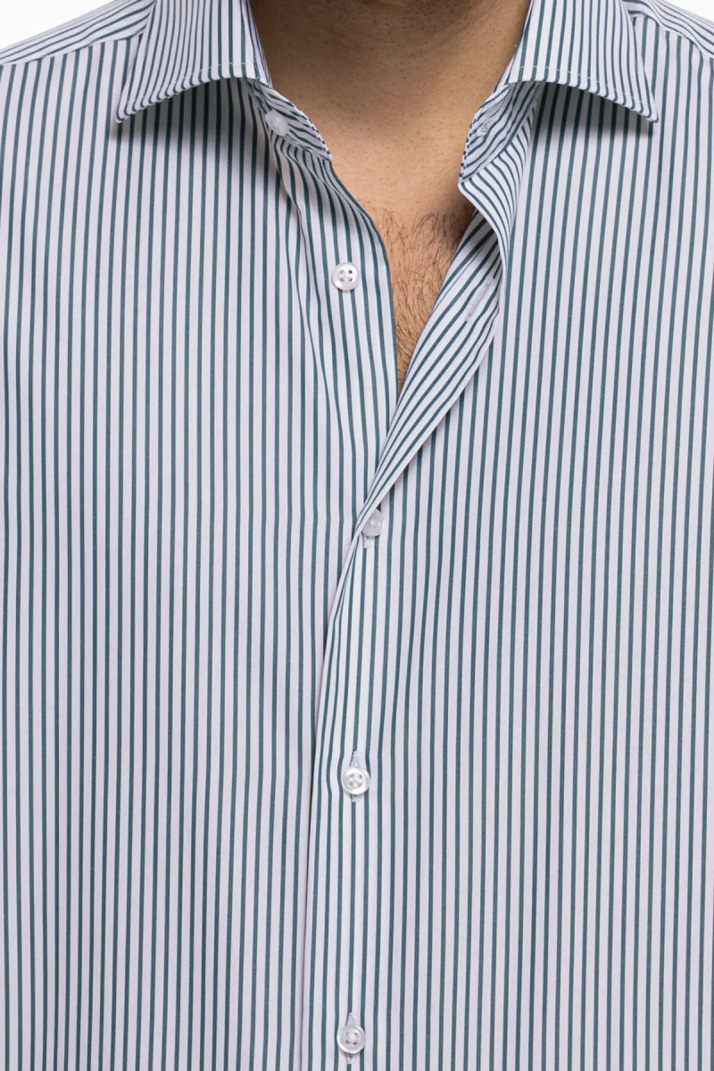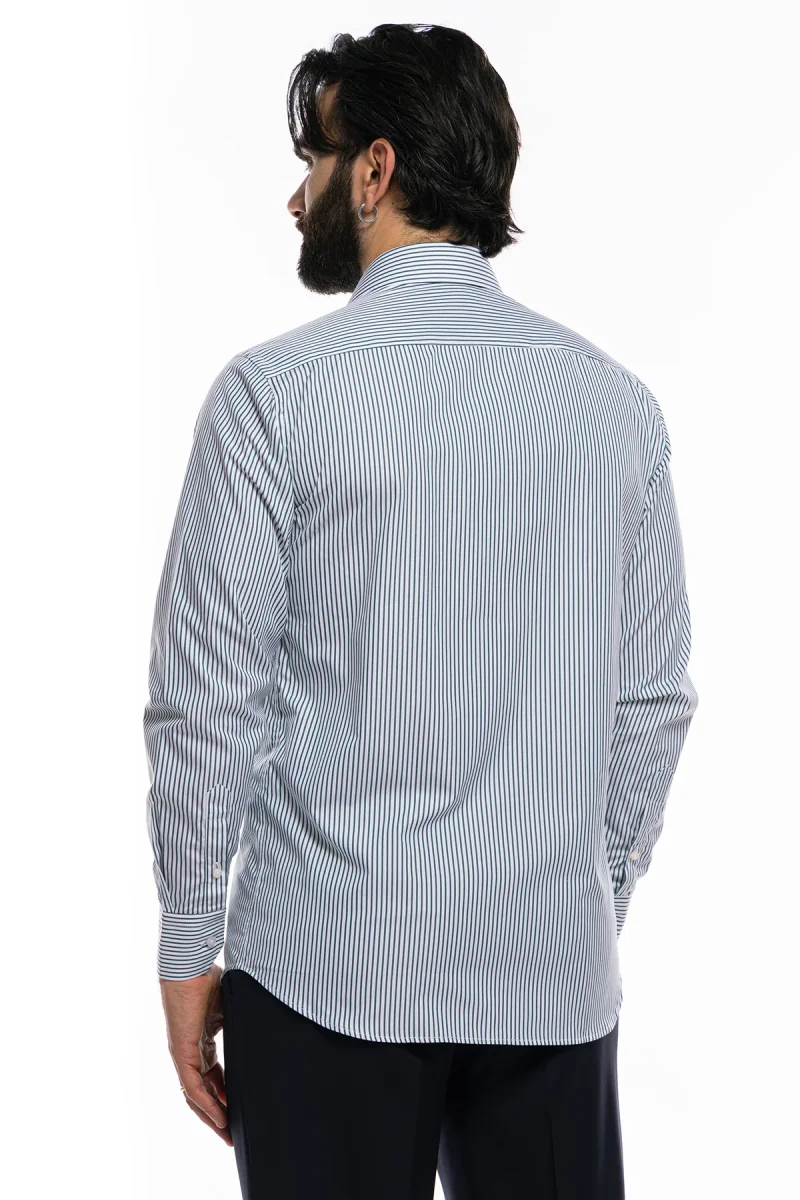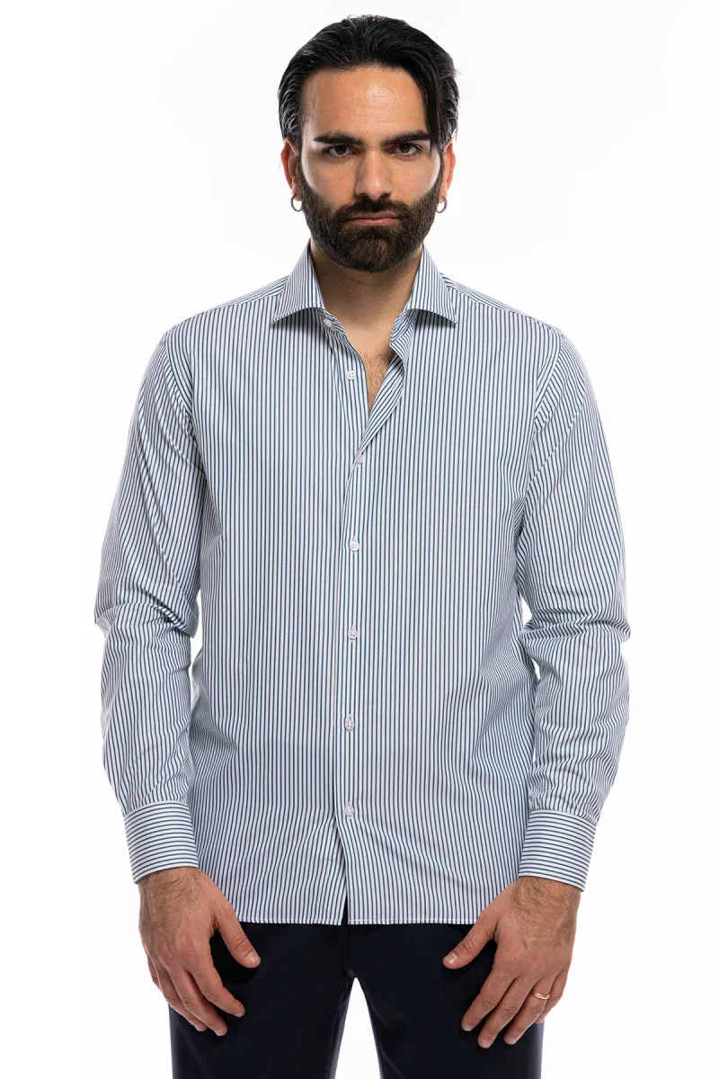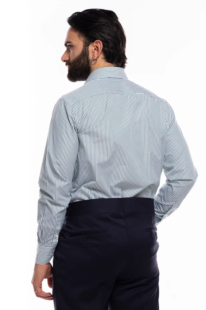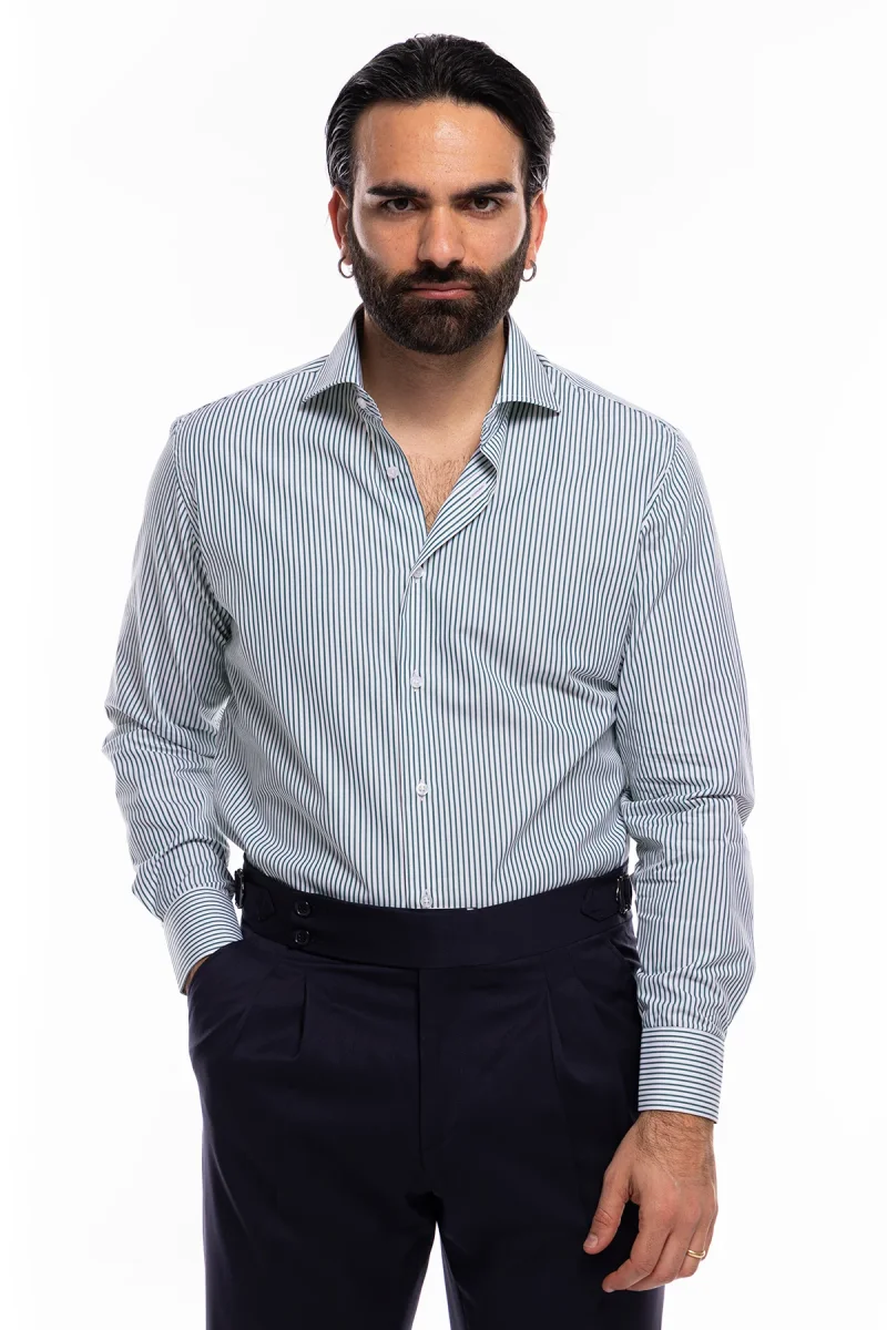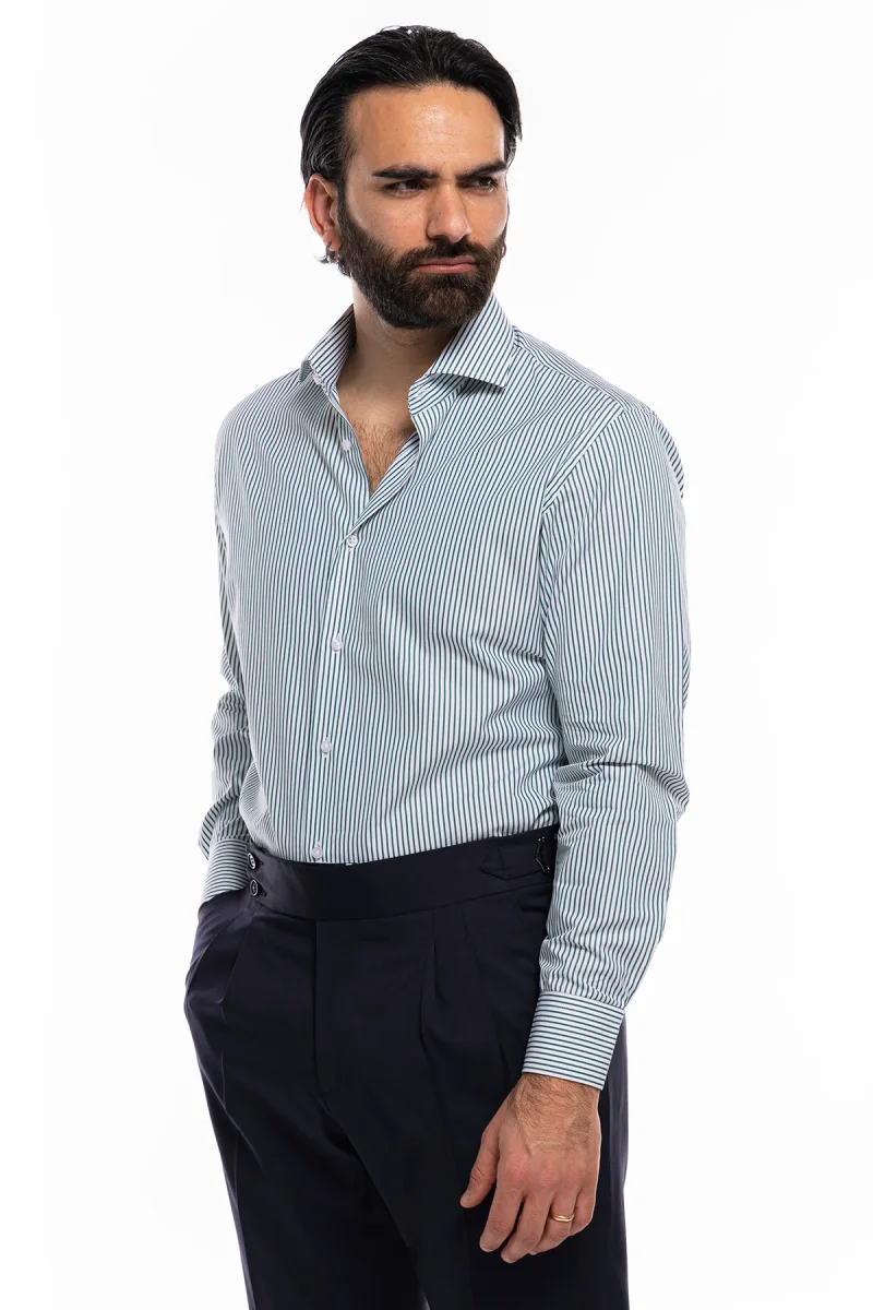 Camicia Uomo slim Fit riga verde stretta 100% cotone collo semi francese mileta Tessuti
