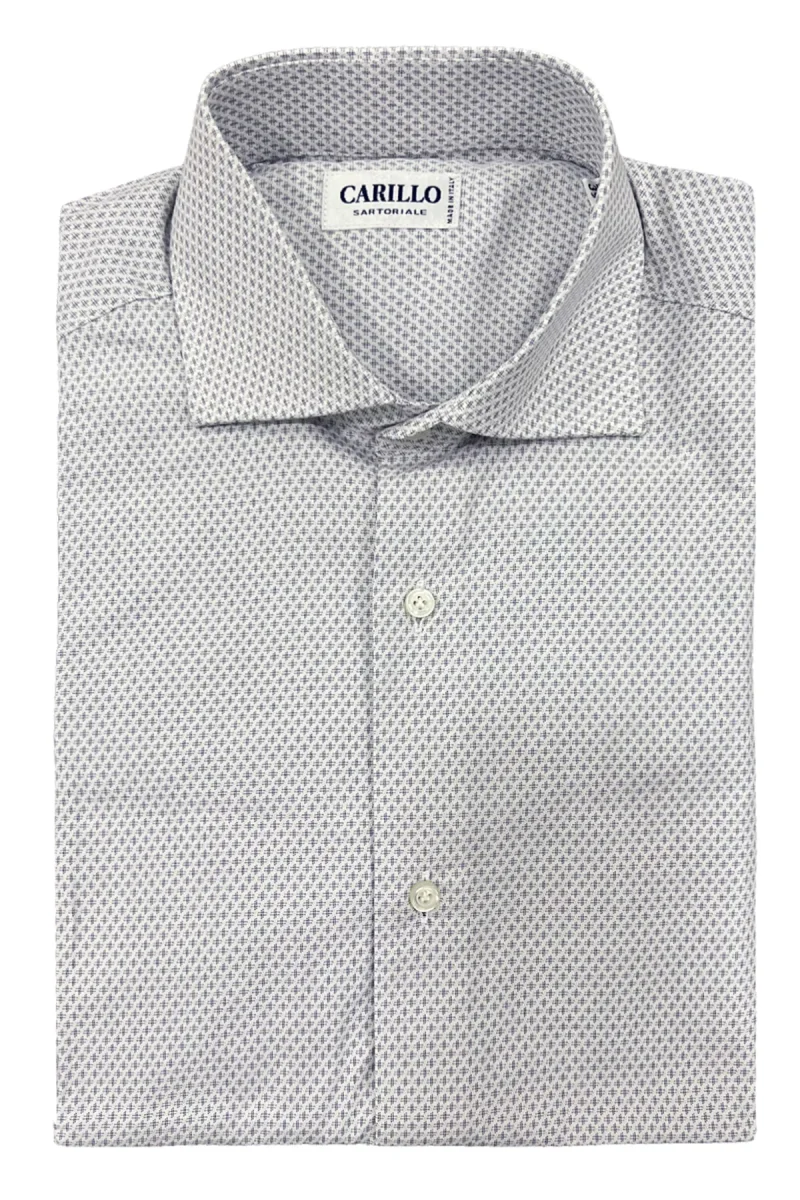 Camicia Uomo Vestibilita regular manica lunga in 100% cotone a fantasia croci blu su fondo bianco