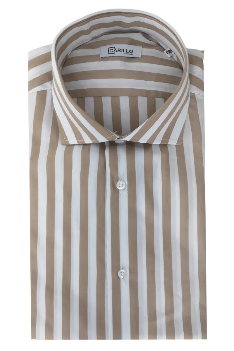 La Camicia Uomo Righe Larghe regular fit a manica lunga in cotone elasticizzato di CARILLO CAMICIE e ormai per i nostri clienti sinonimo di garanzia e qualita. Questo modello in particolare, viene scelto da una tipologia di persone che amano vestire bene e nello stesso tempo scelgono la comodita. Infatti grazie alle caratteristiche del tessuto composto dal 100% di Cotone, permettono a chi le indossa di scegliere la sua misura perfetta e non preoccuparsi delle limitazioni dei movimenti.