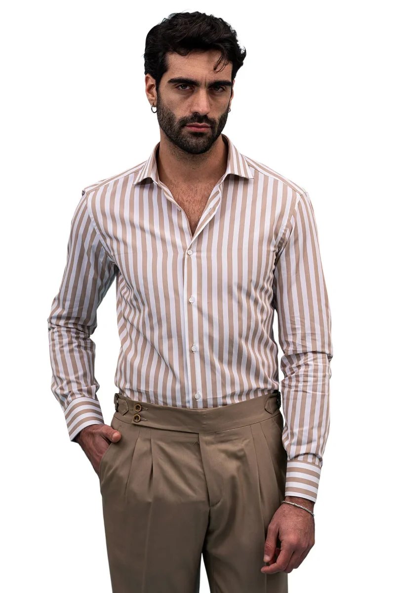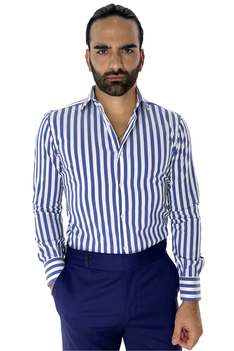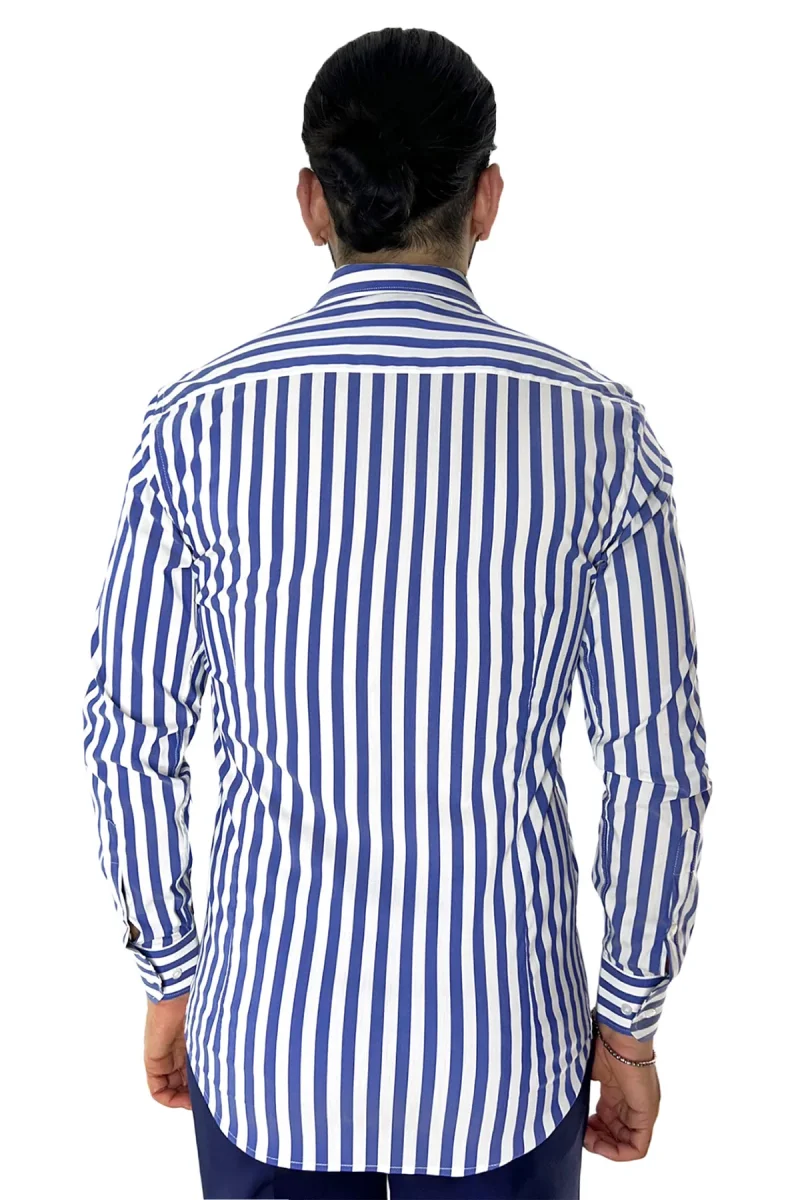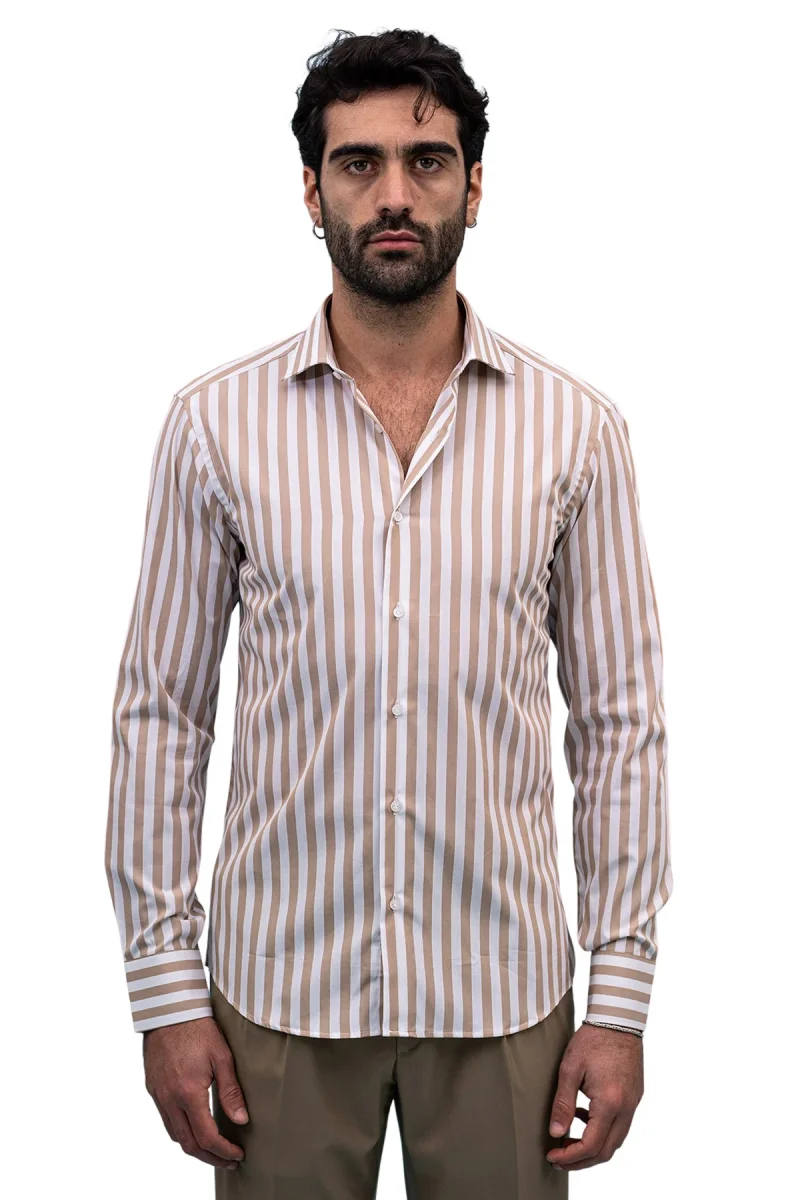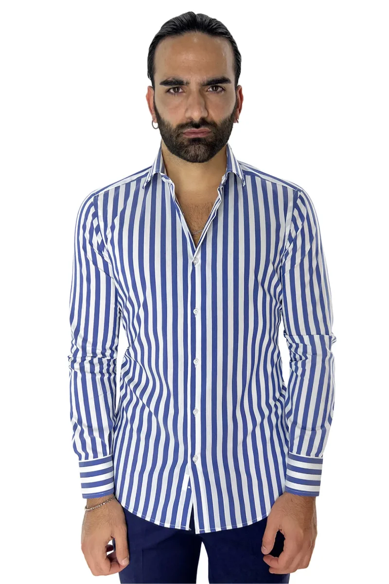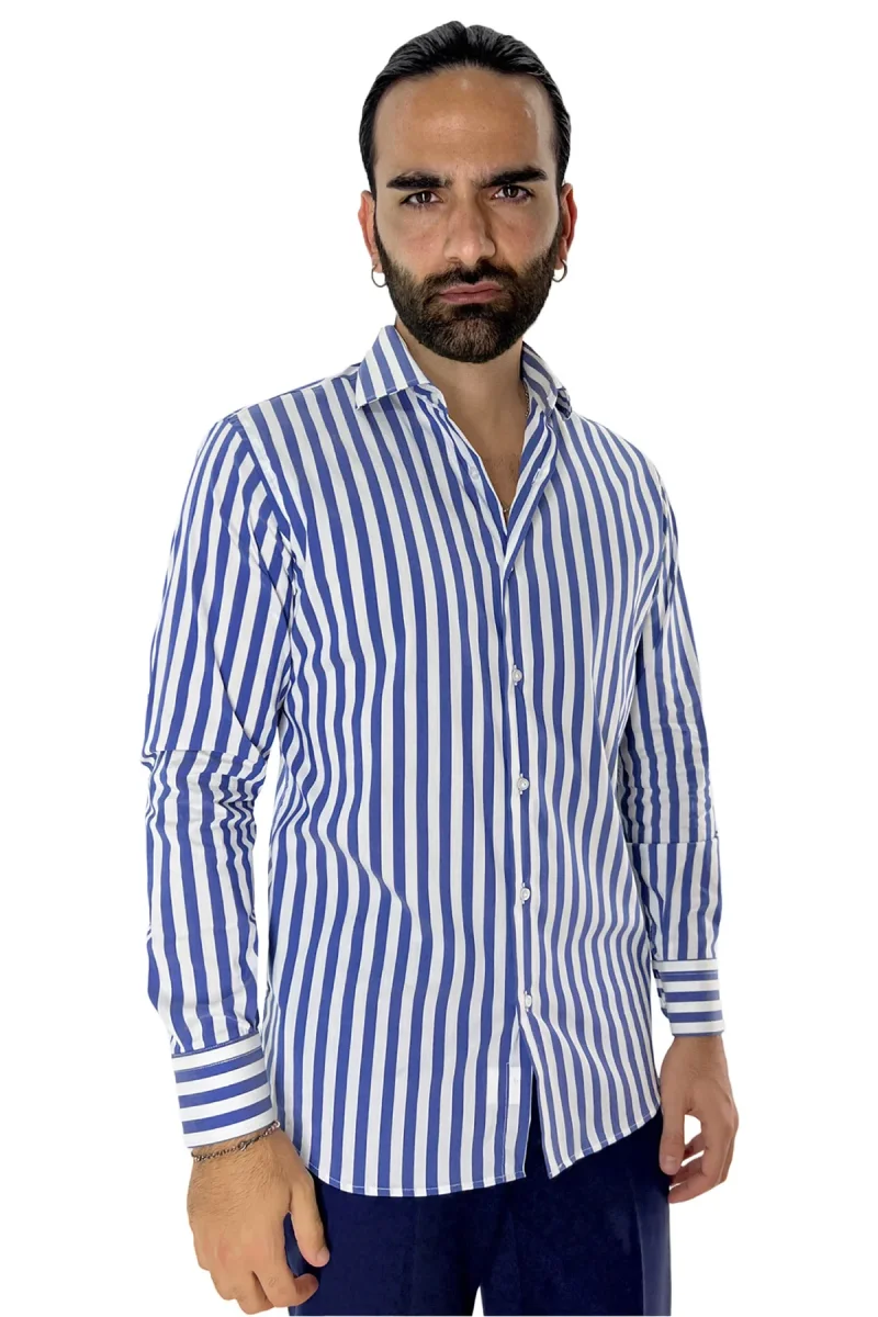 La Camicia Uomo Righe Larghe slim fit a manica lunga in cotone elasticizzato di CARILLO CAMICIE e ormai per i nostri clienti sinonimo di garanzia e qualita. Questo modello in particolare, viene scelto da una tipologia di persone che amano vestire bene e nello stesso tempo scelgono la comodita. Infattigrazie alle caratteristiche del tessuto In Cotone elastico , permettono a chi le indossa di scegliere la sua misura perfetta enon preoccuparsi delle limitazioni dei movimenti.
